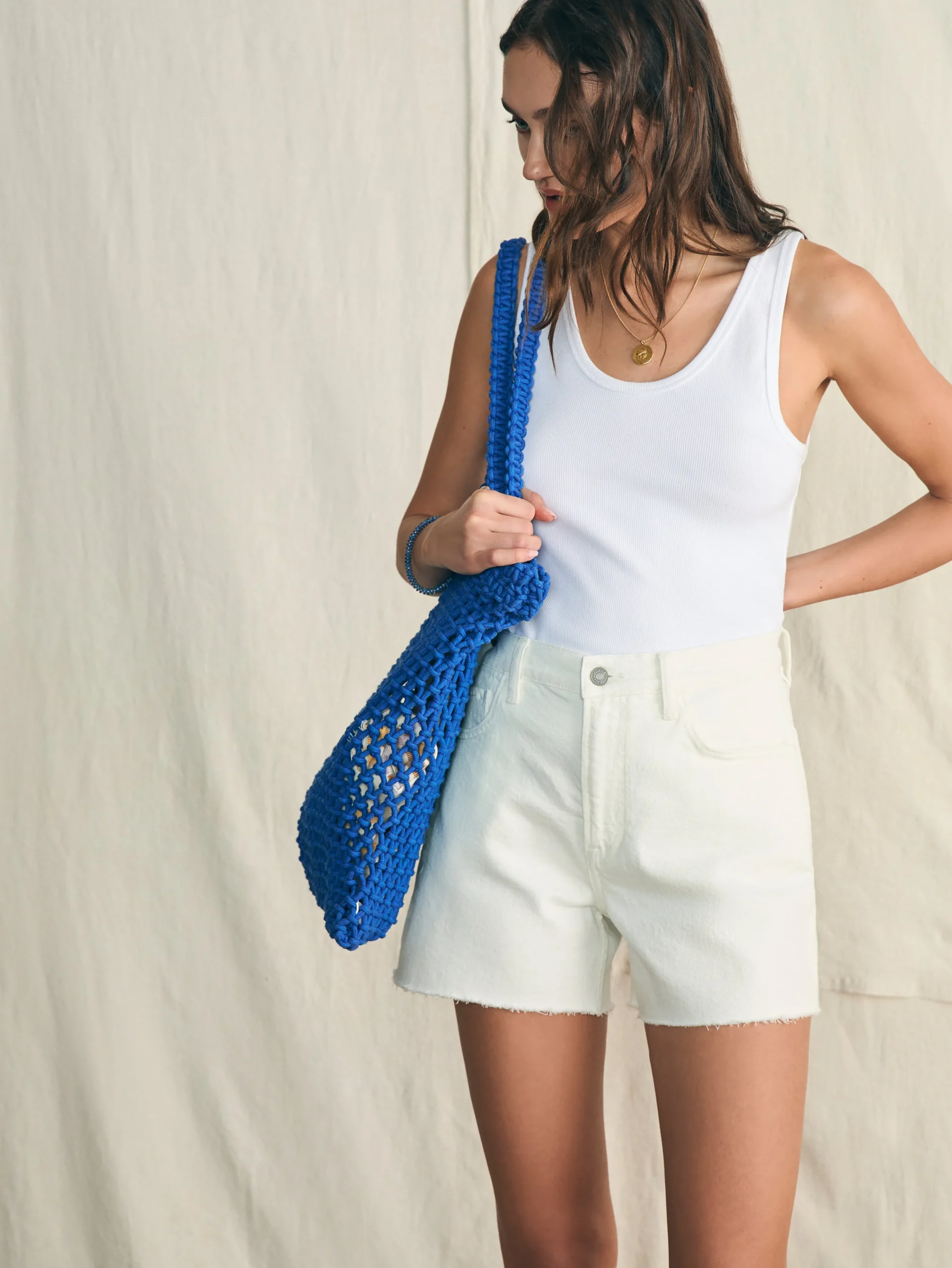 Featuring the worn-in look you love with just the right amount of stretch, our new denim shorts are the only pair you need for summer. With classic 5-pocket styling and a laid back vintage wash with frayed hem, it’s our newest essential for sunny days. Our organic cotton denim features an innovative, energy-efficient wash process that utilizes 80% less water than conventional denim wash methods.