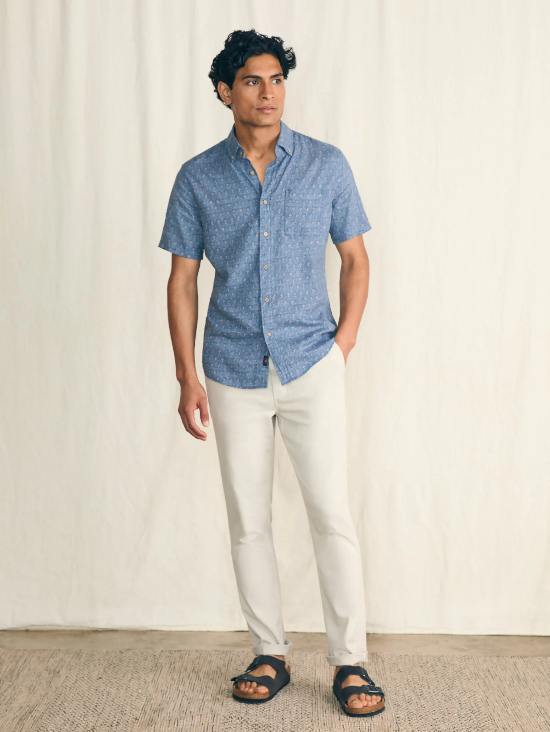 For sun-drenched days, we crafted this shirt from a super soft custom fabrication made primarily from linen. Lightweight with a bit of stretch, its unique hand feel gives our signature travel-inspired prints an added natural texture. Wear it whenever you’re seeking those effortless vacation vibes.