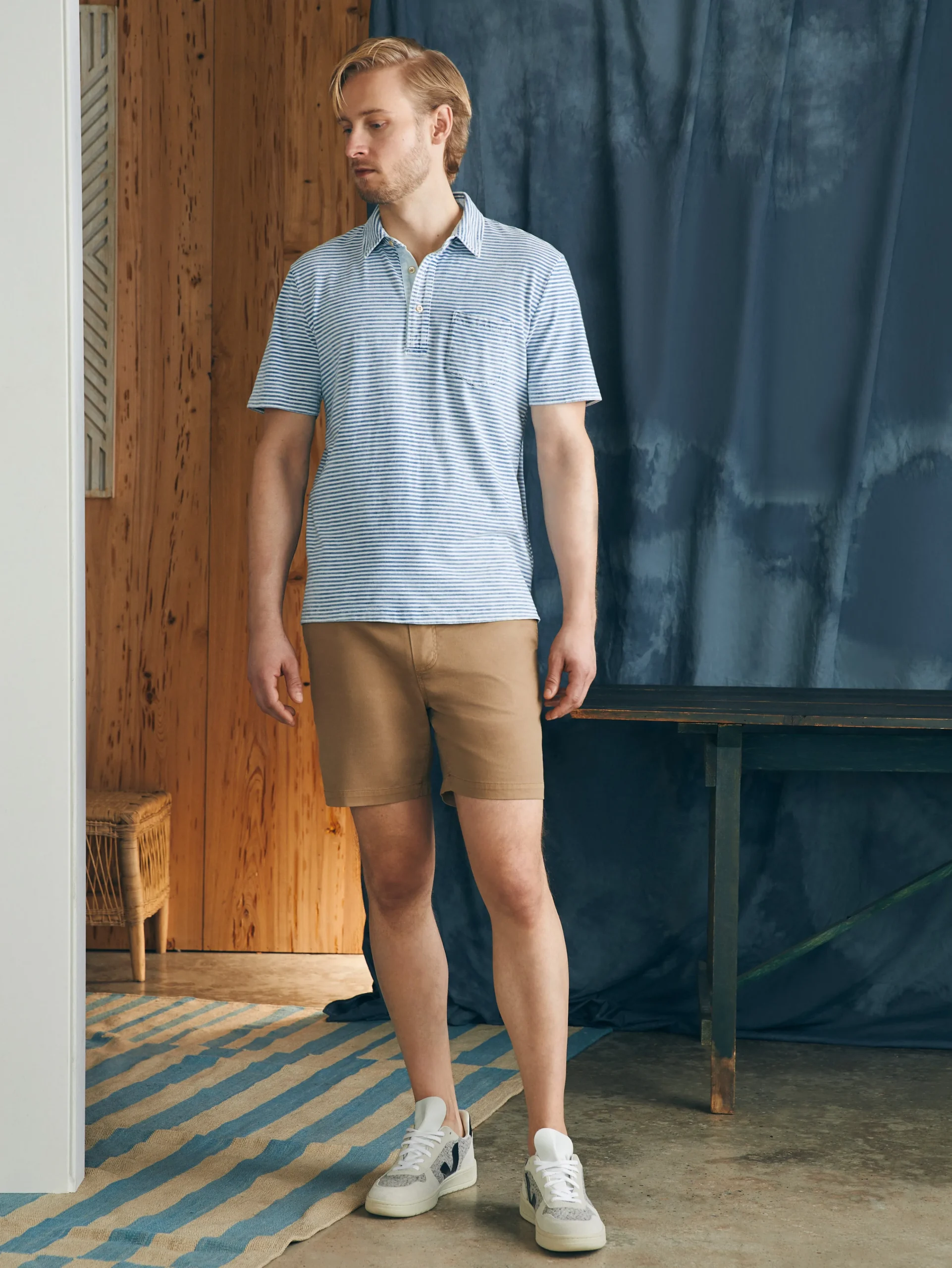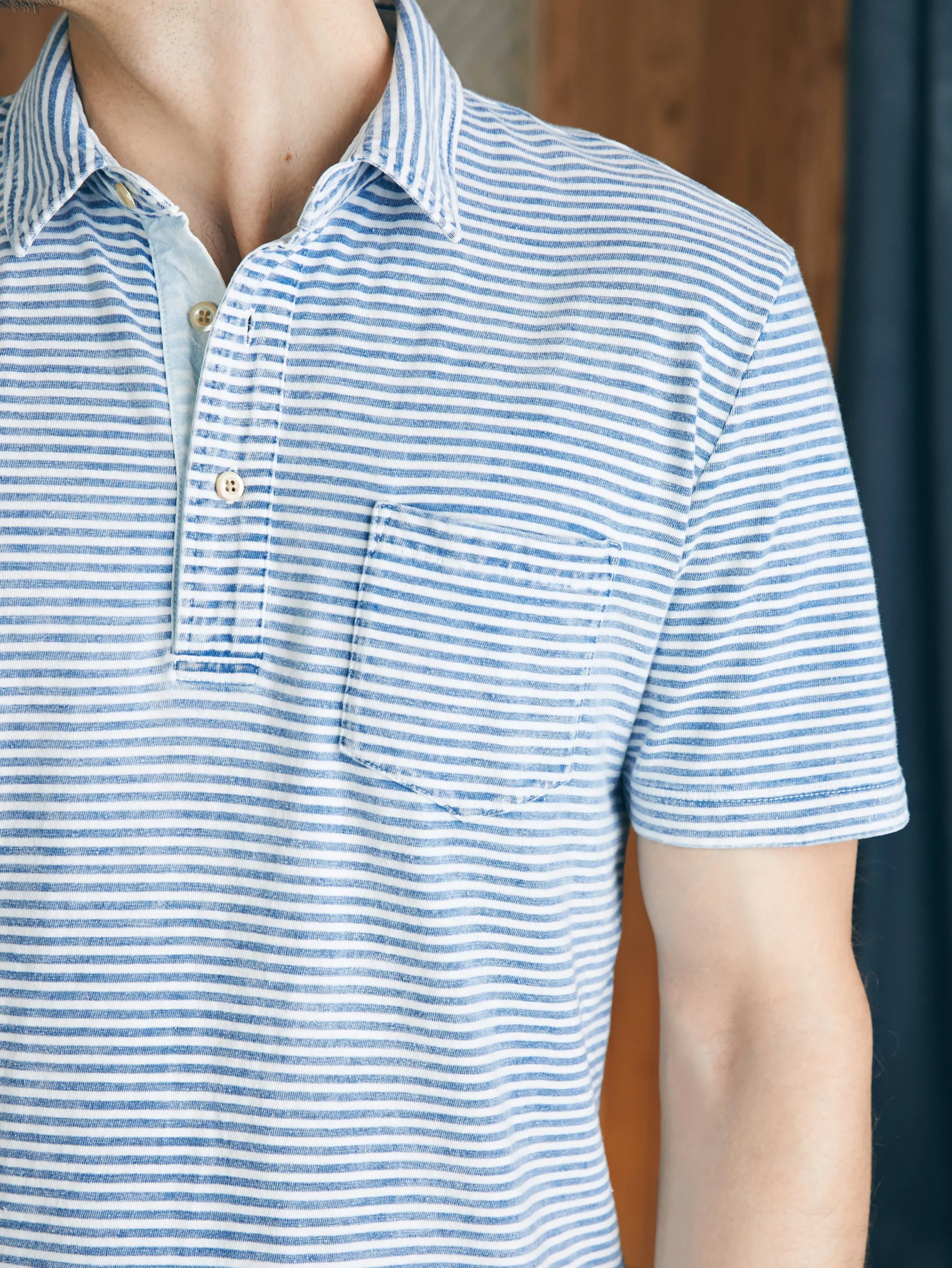 This 100% slub cotton polo is dyed with natural indigo, making each polo slightly unique with authentic highs and lows. Thoughtful design features like woven chambray detailing on the placket, interior collar, half moon and side vents add that extra-special something.