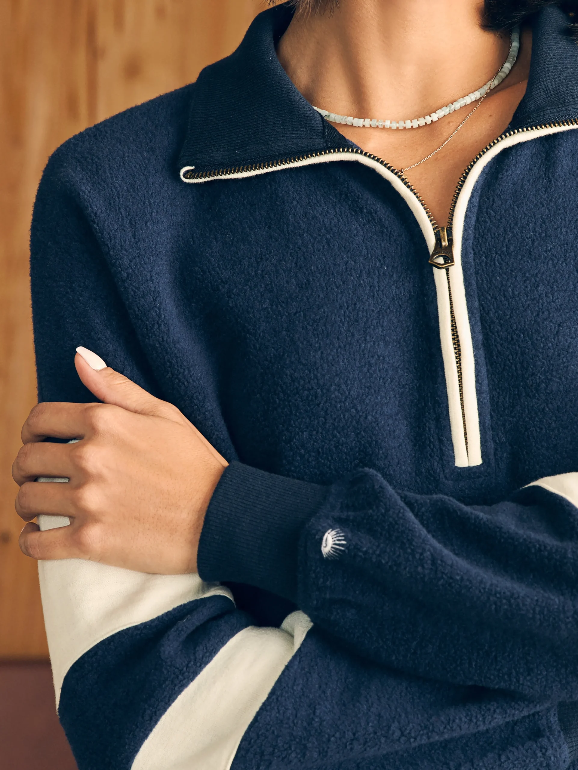 - Detail: Quarter zip pullover with texture mix colorblock detailing. Rib trim at neck and sleeve cuffs.