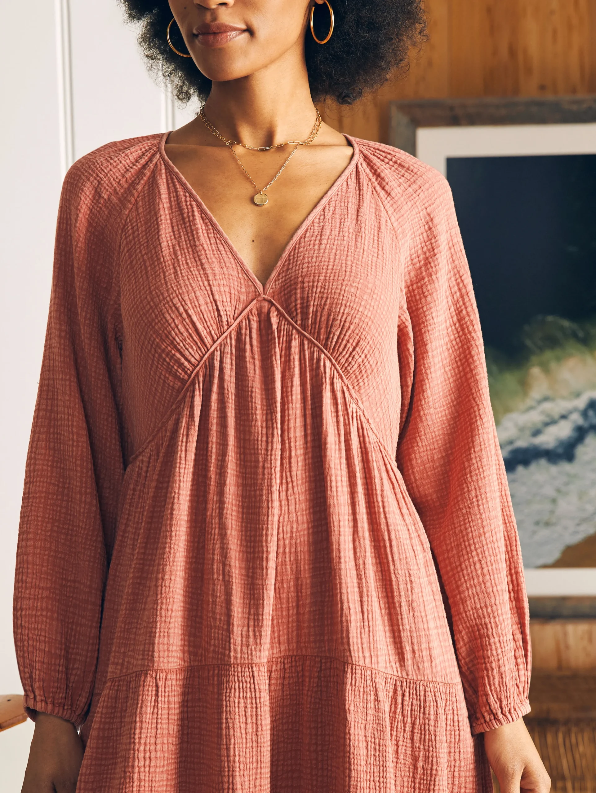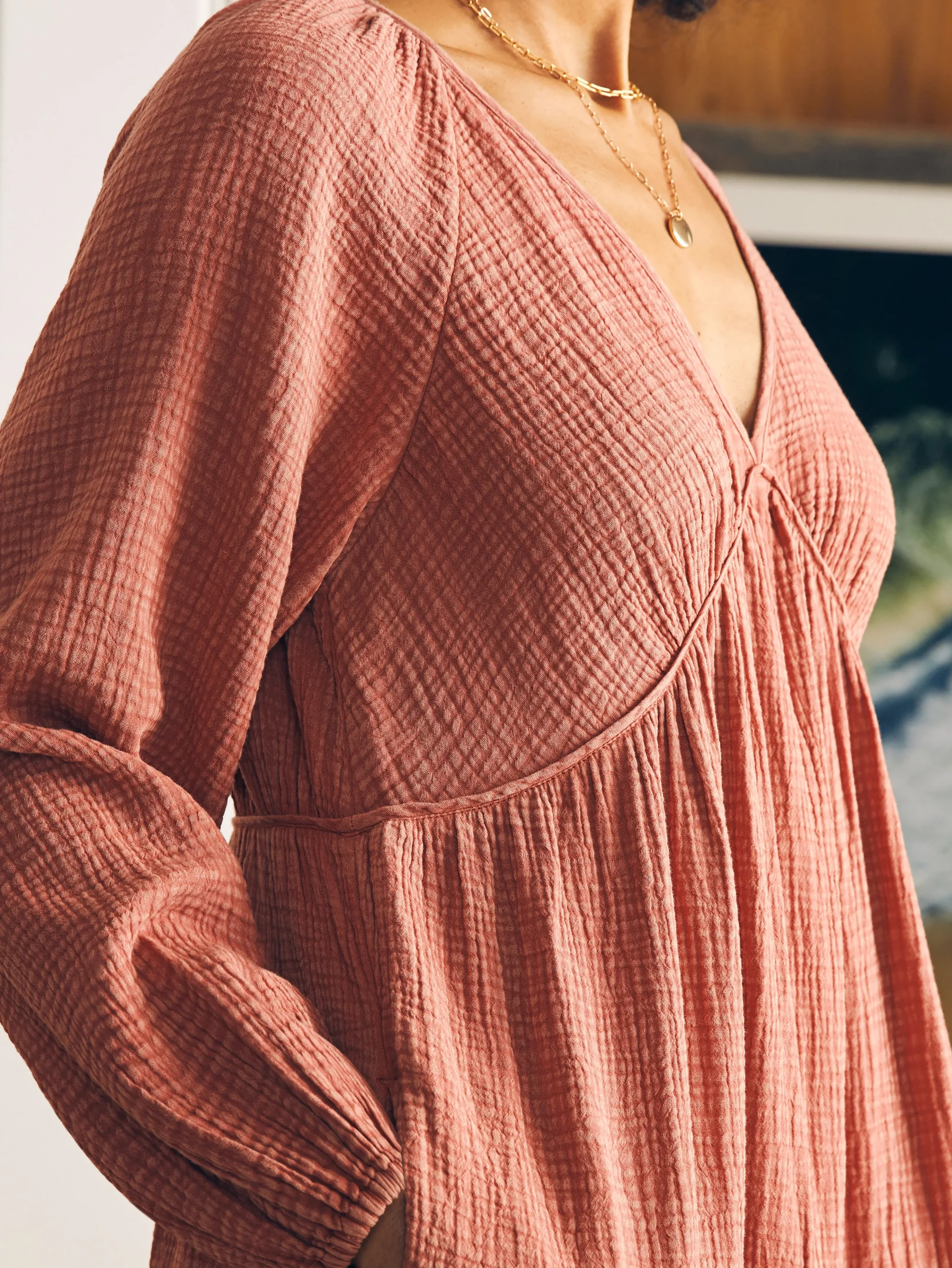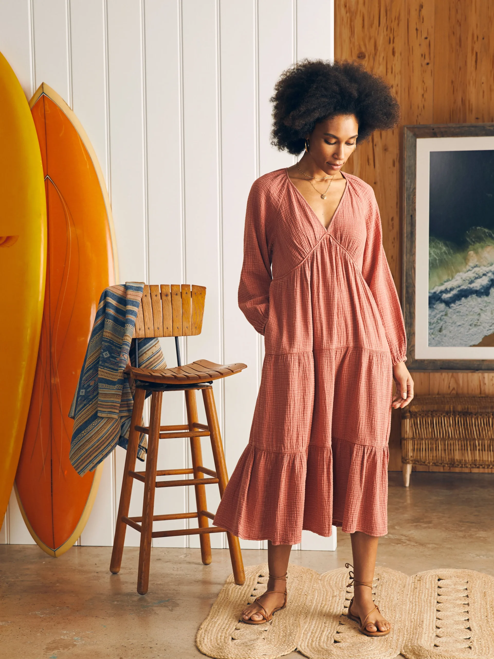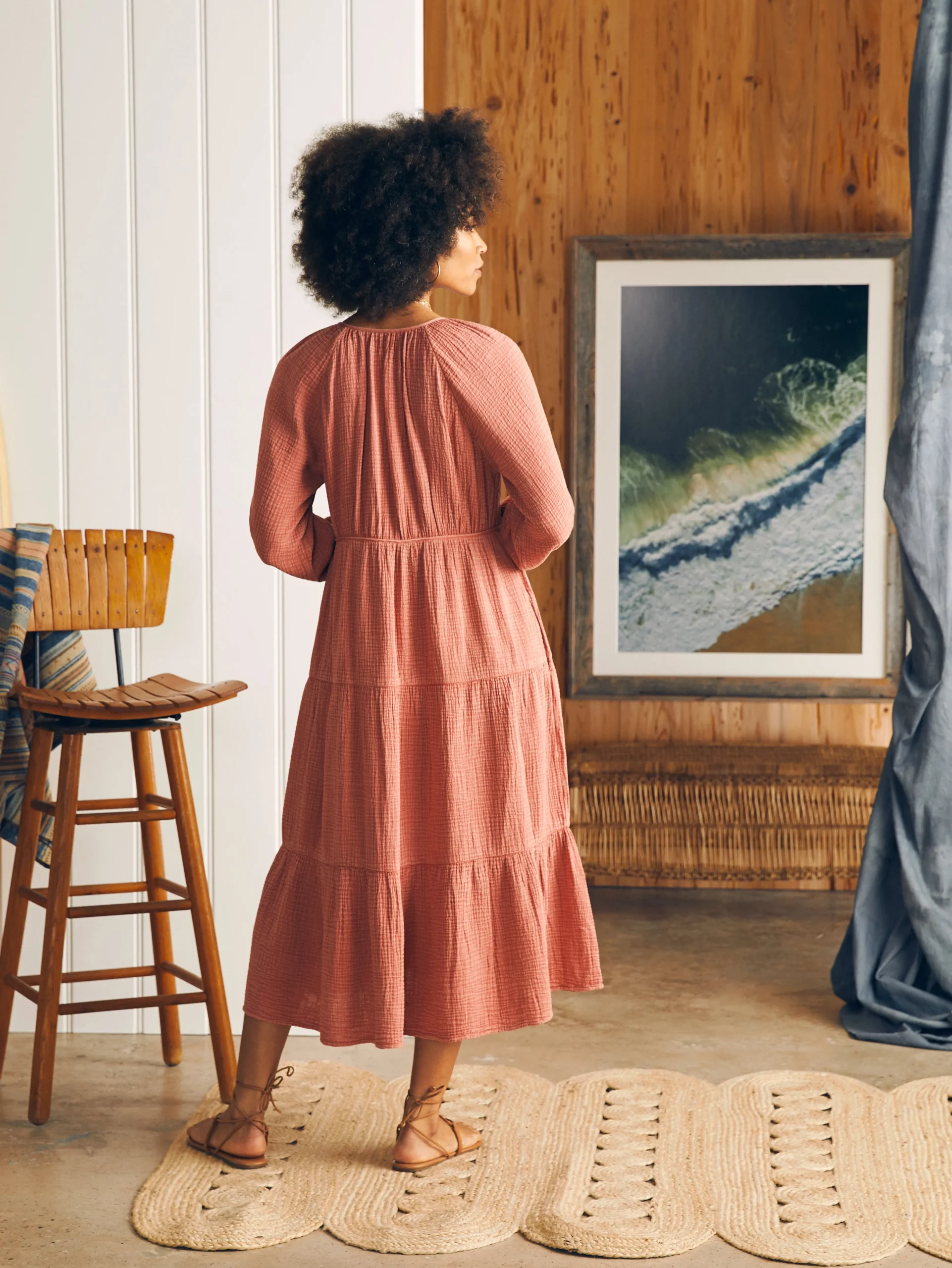Crafted from our signature Dream Cotton Gauze — an airy organic double gauze fabric —our new Sirene silhouette embodies carefree, sunkissed days. Long billowy sleeves and a tiered maxi skirt heighten the romance factor while the forgiving, slip on silhouette means you’re as free as the breeze. This one’s sure to become a Faherty icon.