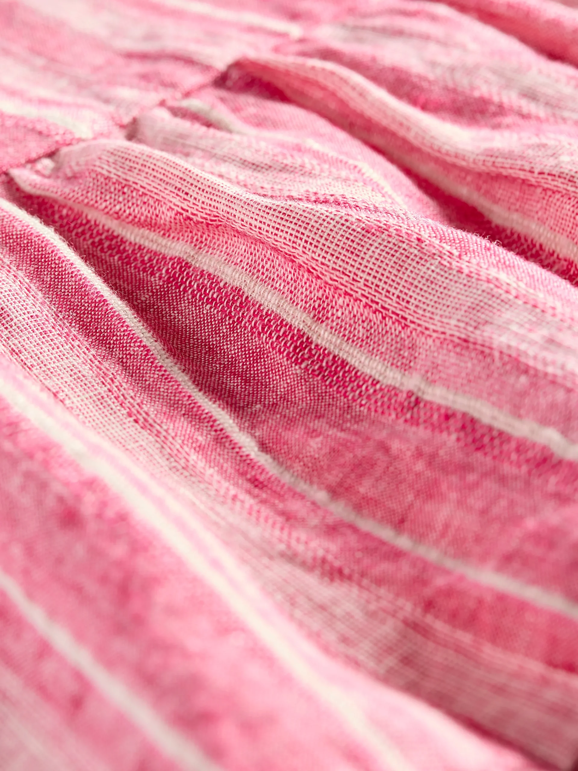 - Detail: Striped dobby sleeveless dress with tiers at skirt.