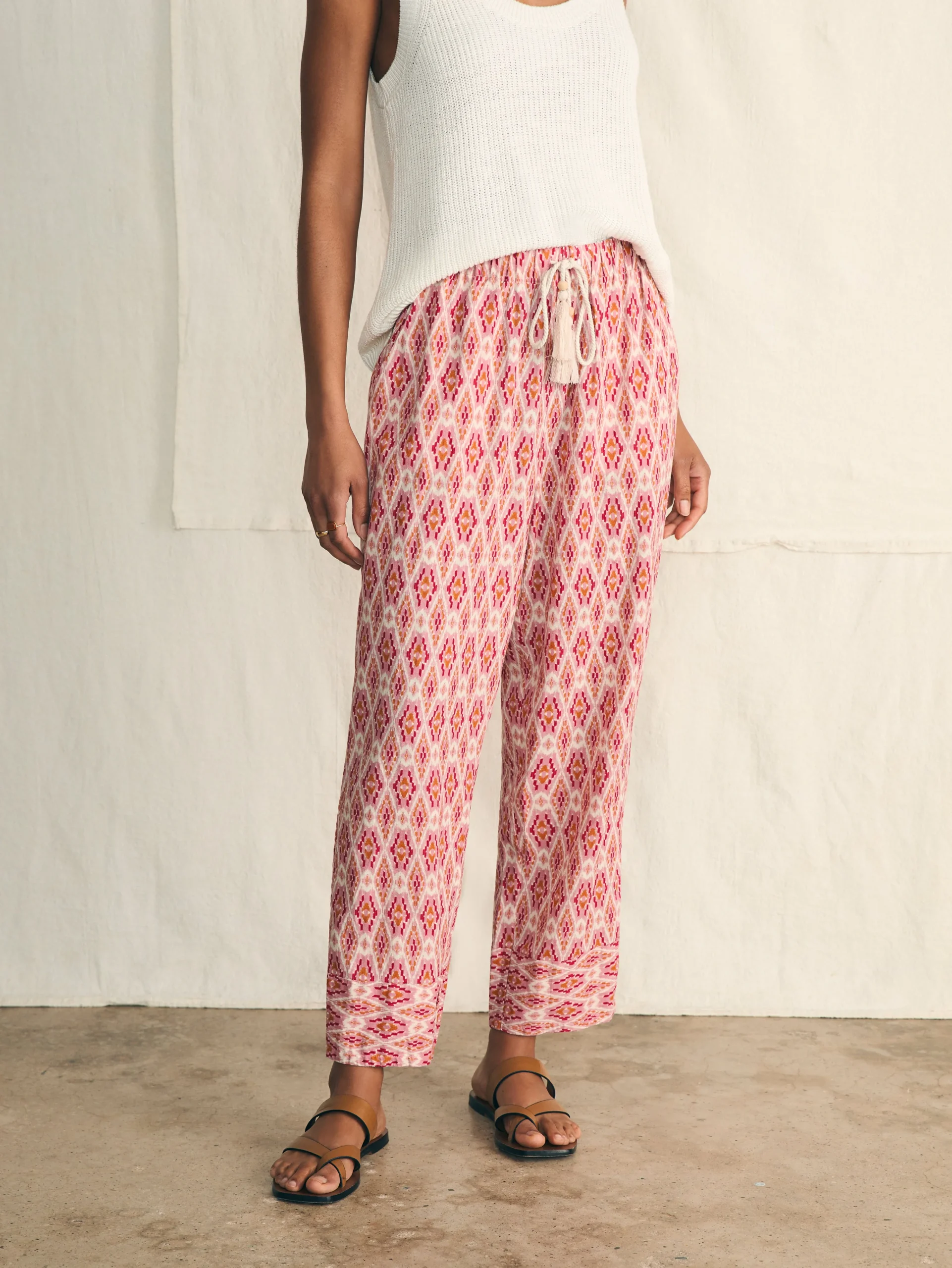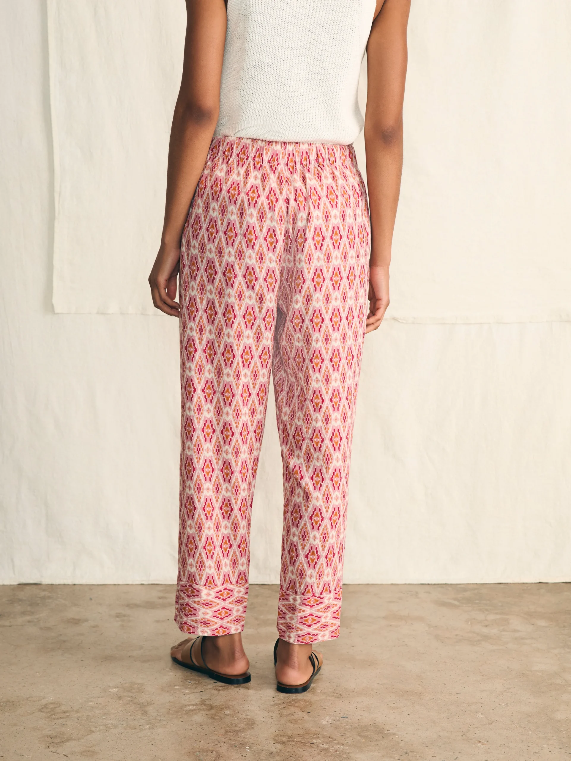 Easygoing summer days start with our wonderfully soft pull-on pants made from a naturally cooling and breathable linen blend. With an artful ikat print, it brings out those relaxed, vacation vibes no matter where the day takes you.