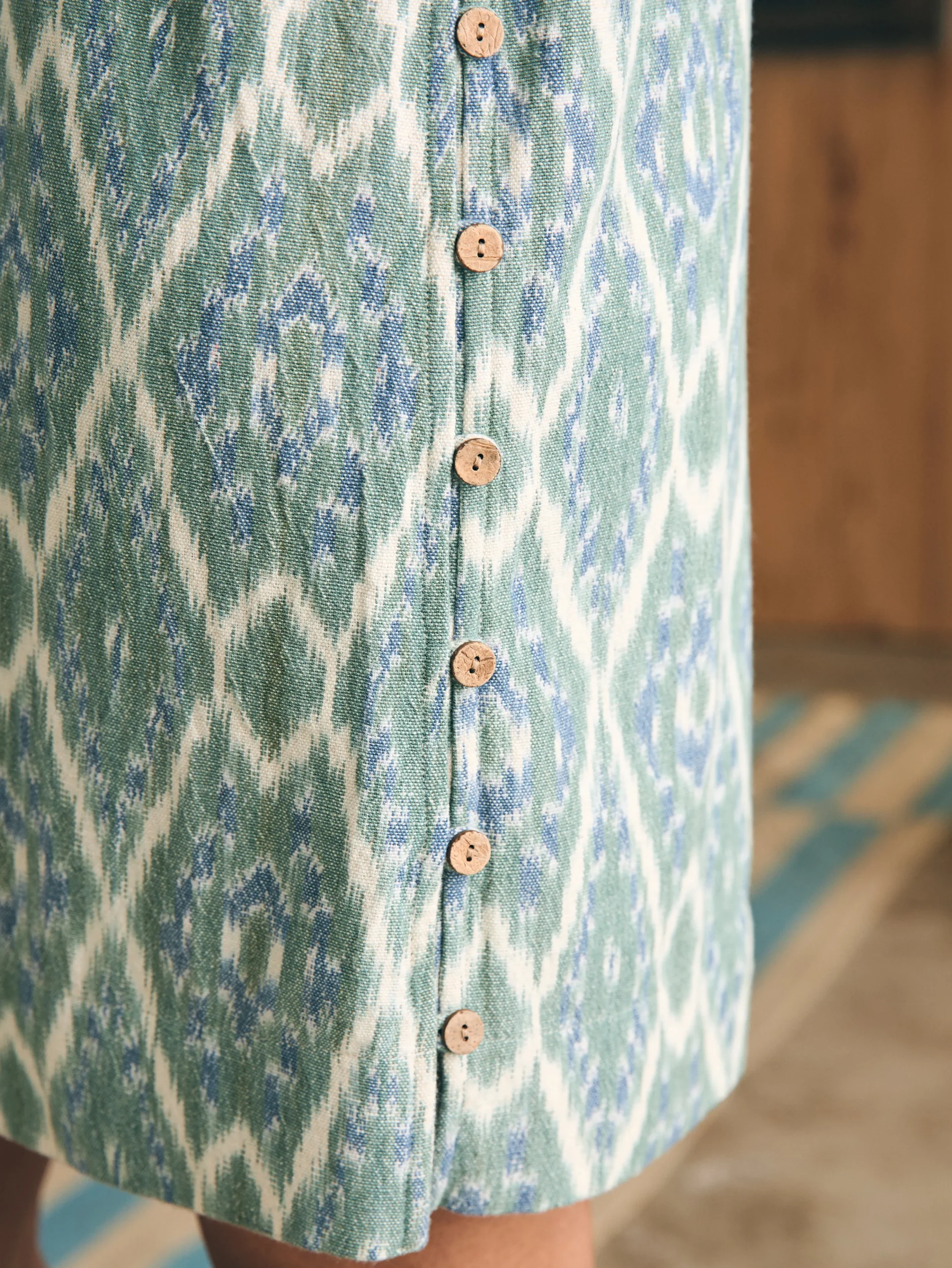 The clean lines of this fresh mini silhouette is elevated with a hand-dyed Ikat pattern inspired by sunny and carefree days. Rendered in a soft yet substantial organic cotton, it feels special and lived in all at once.