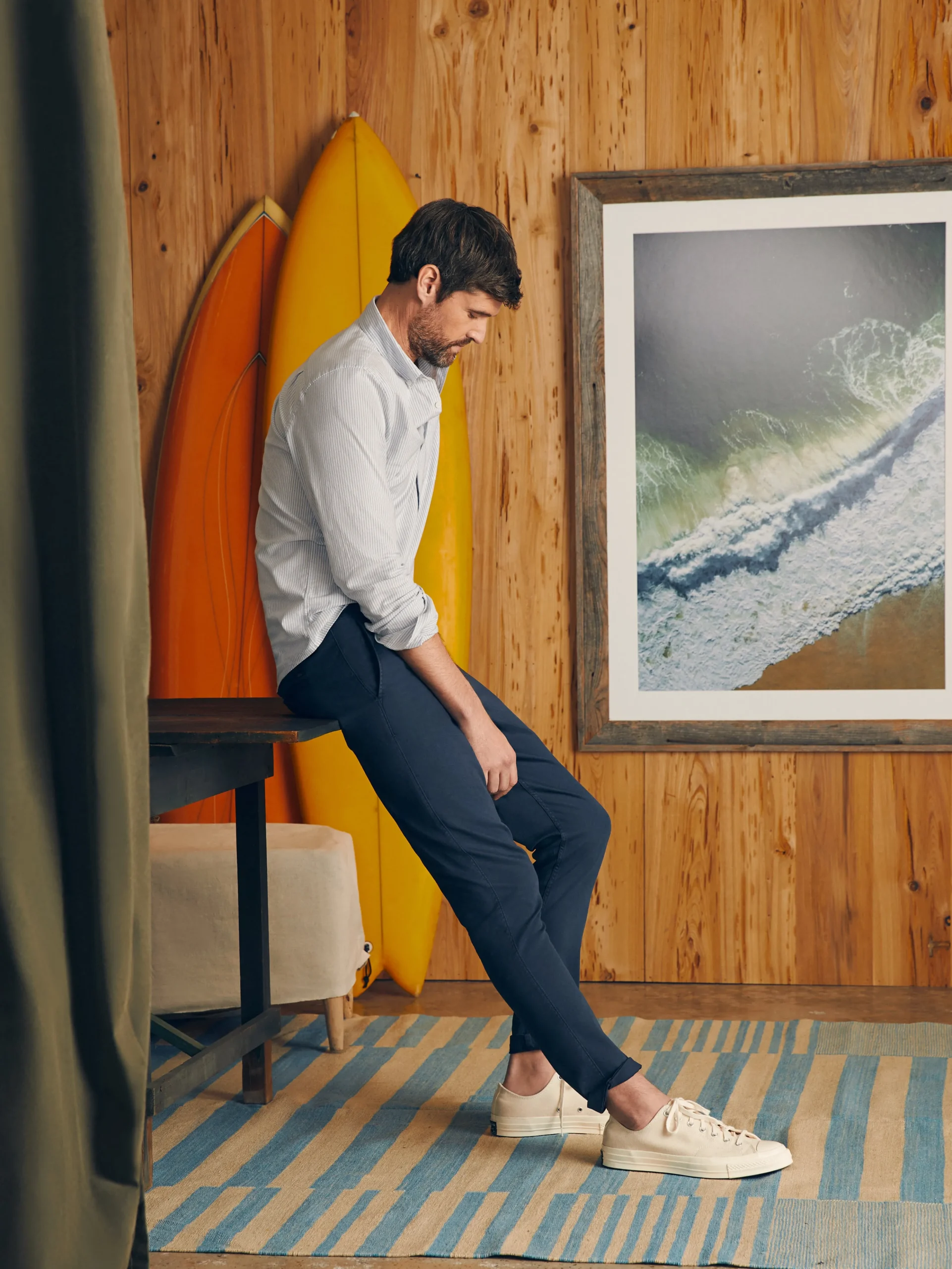 Crafted from an unrivaled garment-dyed fabric — the perfect fiber blend for breathability, stretch, and movement — the Essential Pant can be dressed up or down and is perfect for travel. The slim, straight, pull-on fit is tailored but with loungewear levels of comfortability, a bit of structure and plenty of ease