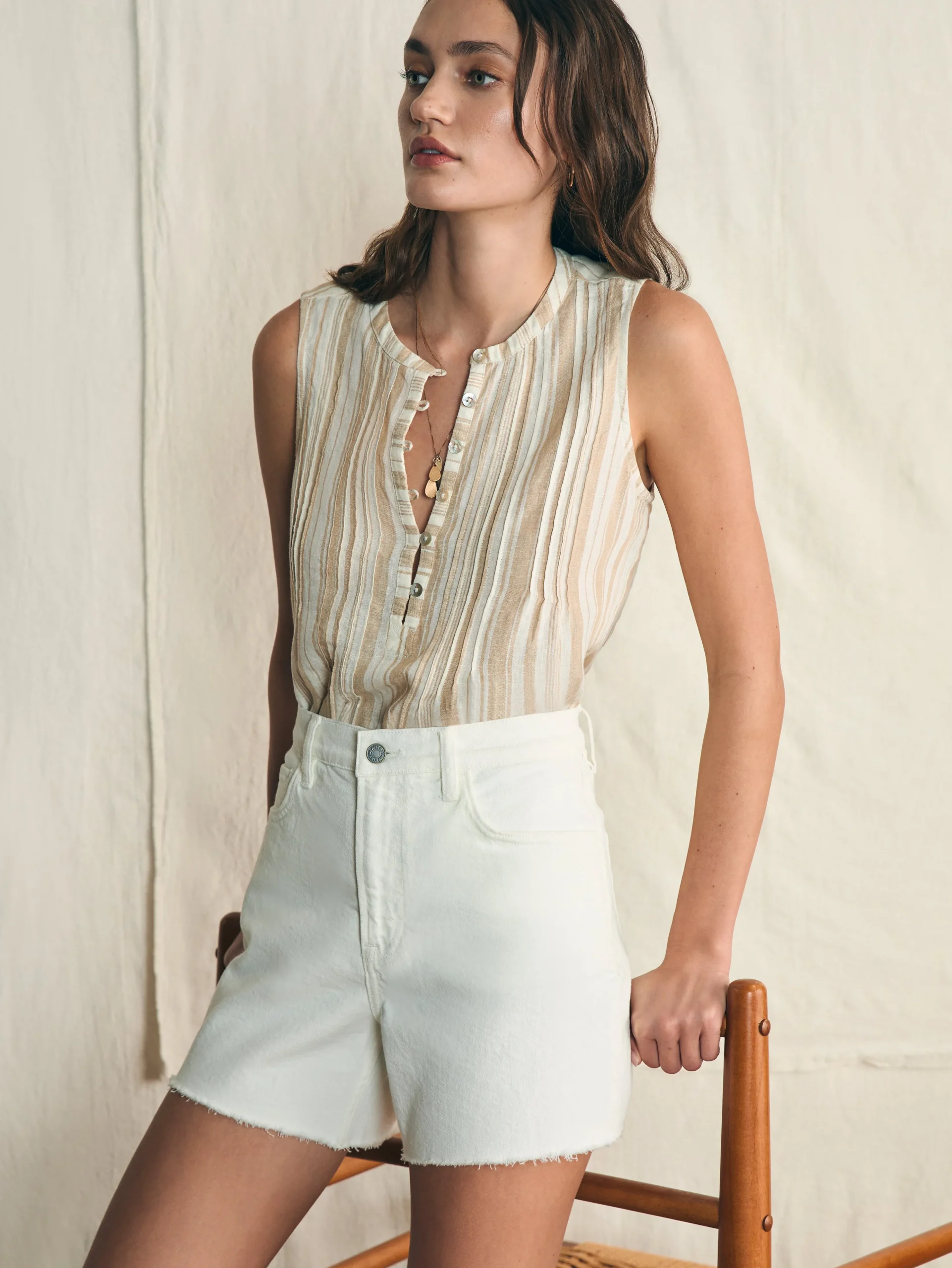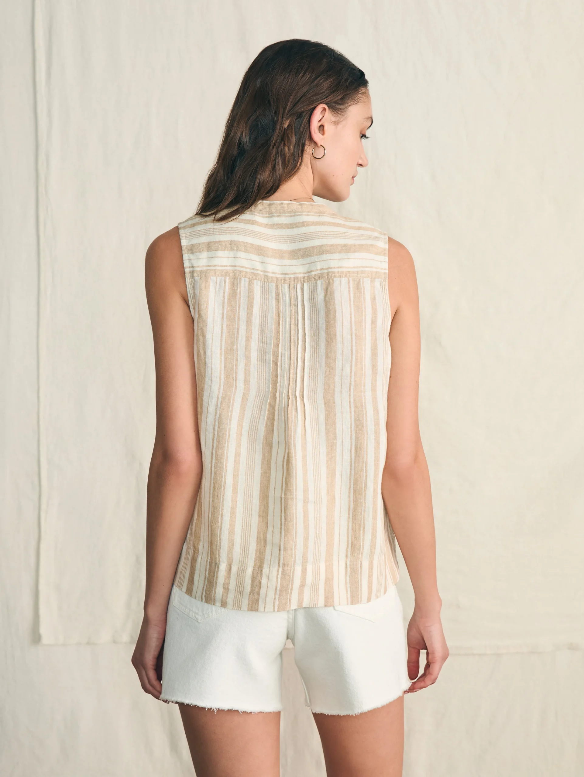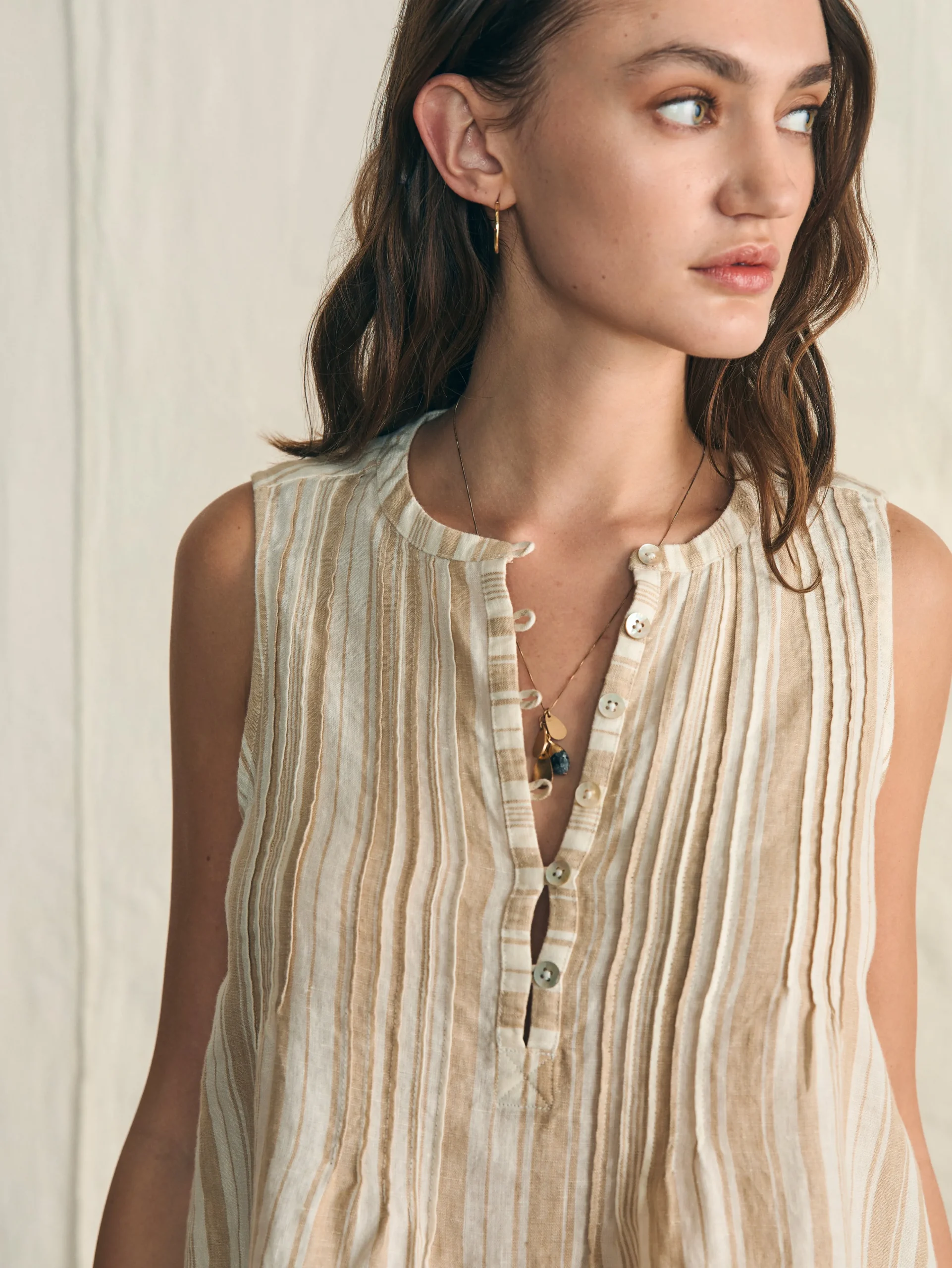 Modeled off of our bestselling Isha dress, this sleeveless top is elevated with delicate pintucks that create a flattering and pretty drape. Crafted from softly textured linen, we’re wearing this airy and relaxed essential under a cardigan during those in-between seasons and on it’s own with cutoffs into the summer.