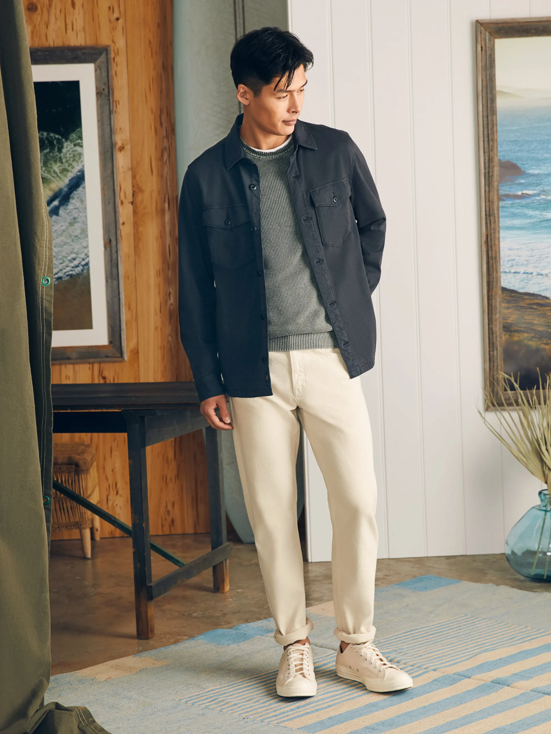 Blending the best of two worlds, the hybrid Jersey Shirt Jacket, is a necessary addition to your outerwear rotation. The matte military buttons make this an easy jacket for transitional days – wear it open when it’s warm out, or button it up and style it under a denim jacket for an extra layered look to take you through the seasons.