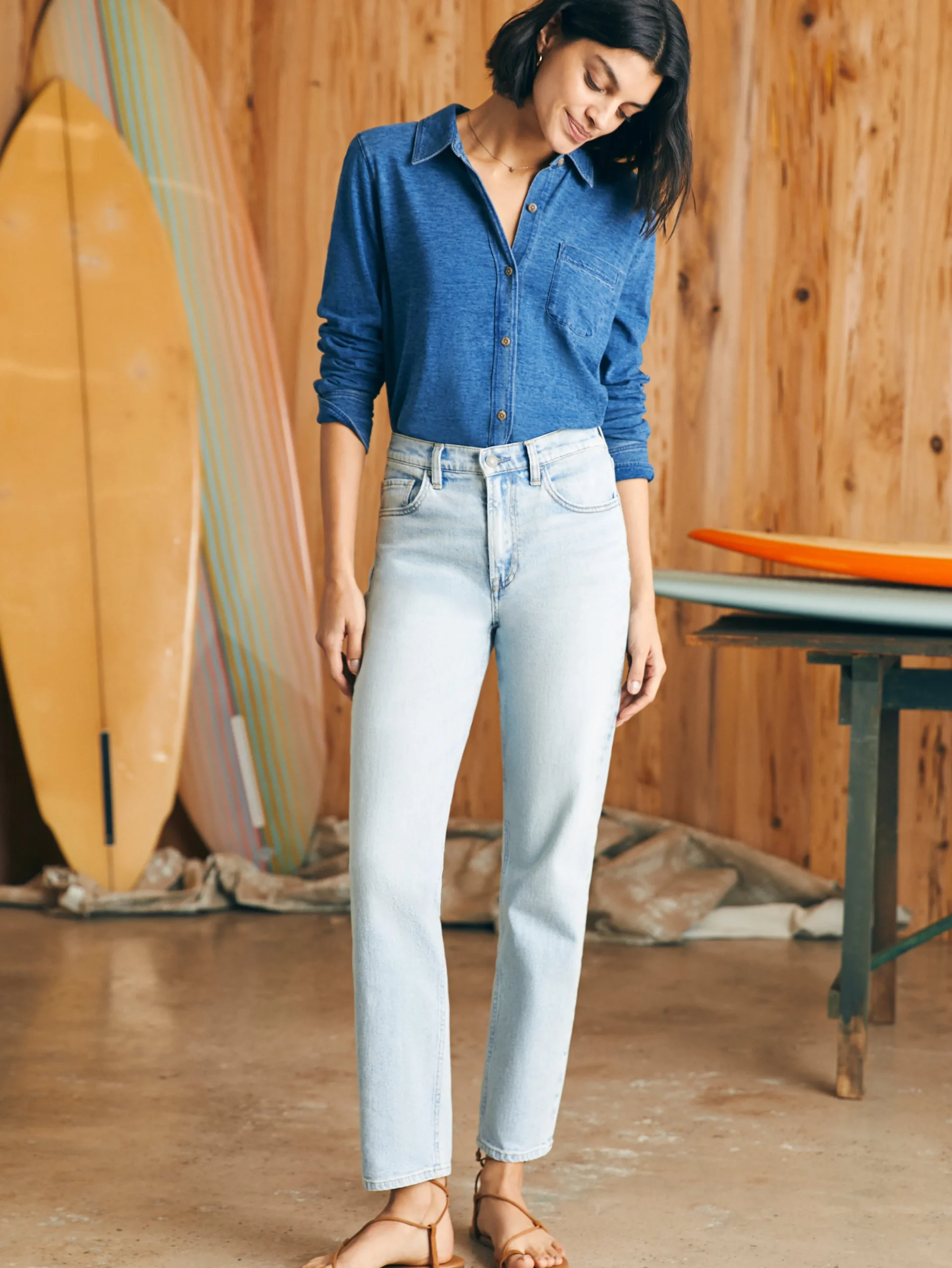 We spent years developing the perfect denim fabric—organic cotton woven with a textured slub yarn that washes down and ages beautifully. Combined with the perfect amount of stretch and a just-right fit that’s comfortable enough for all-day wear, yet elevated for a night out, they’re the most comfortable and lived-in jeans you’ve ever worn. They also feature an innovative, energy-efficient wash process that utilizes 80% less water than conventional denim wash methods. Polished or casual, the straight leg does it all with a truly versatile, authentic wash of color.