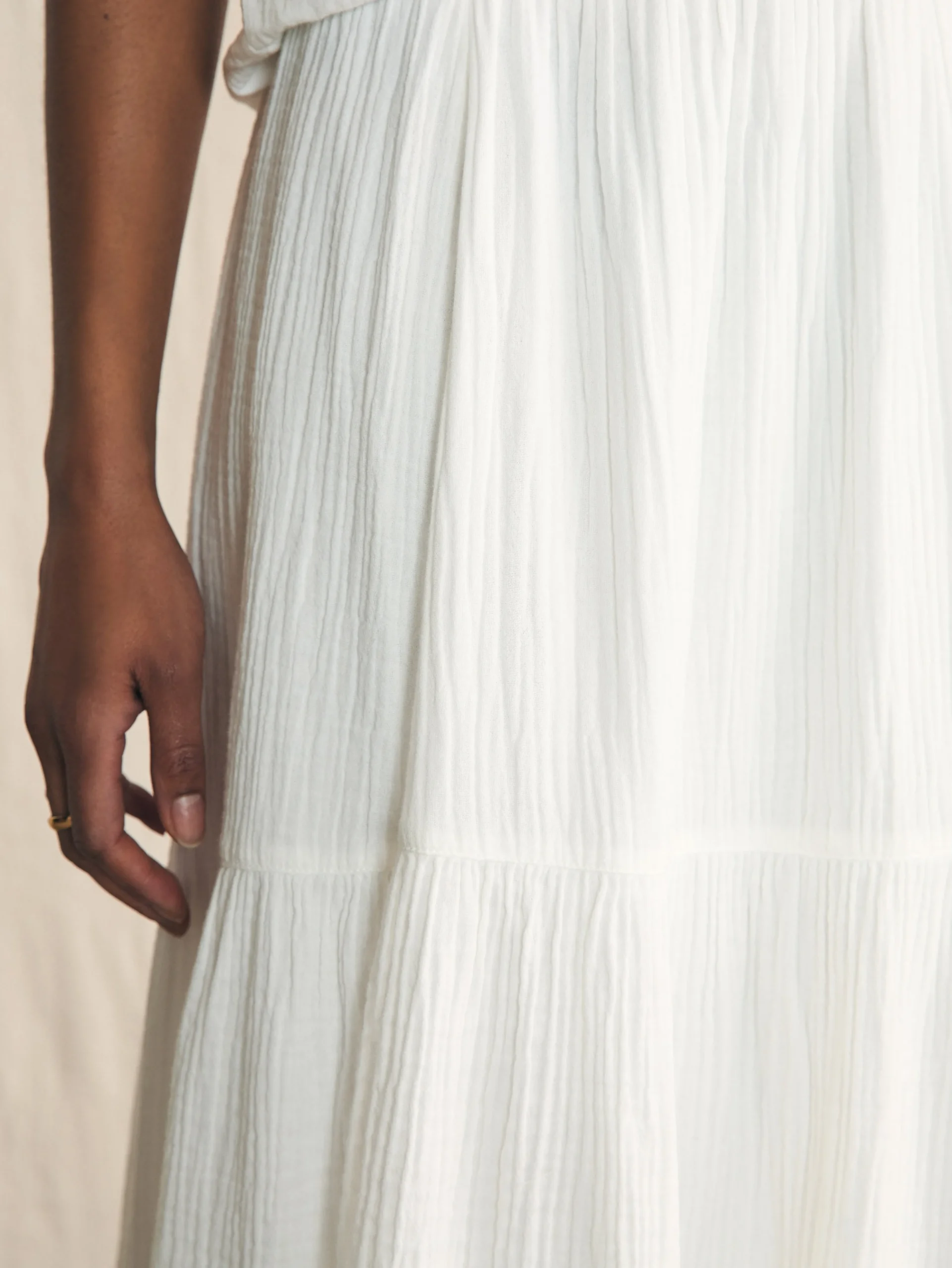 Our beautifully draped maxi skirt is made from a breezy, organic double gauze fabric and constructed with an easy, pull-on elastic waist. Subtle tiers add volume for a floaty, romantic look while keeping you airy and cool. It’s a no-fuss solution to looking instantly put-together.