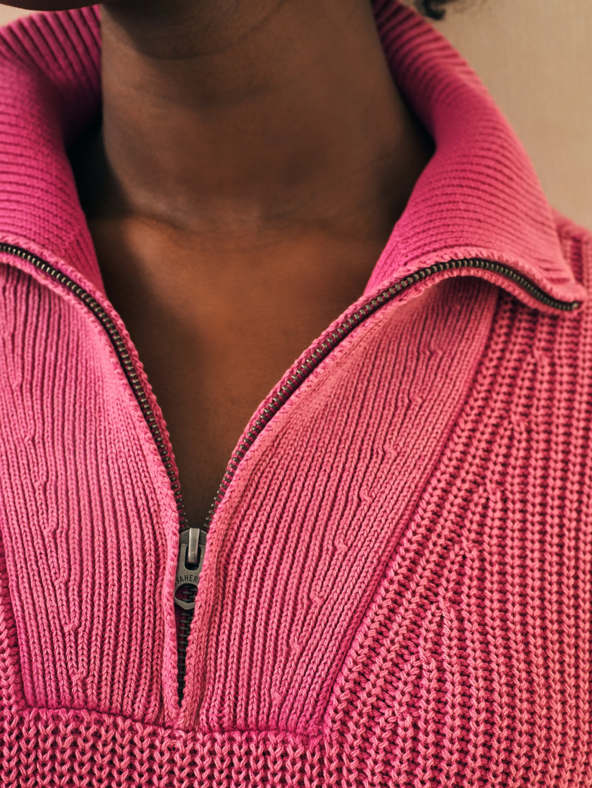 Inspired by the lived-in look of our favorite beach sweaters, this breathable, lofty knit has an appealing weight that makes it one of our most elevated offerings. Chunky, cozy, and soft, it’s designed with a half-placket zip that gives it a laid-back sweatshirt look for a casual but chic attitude.