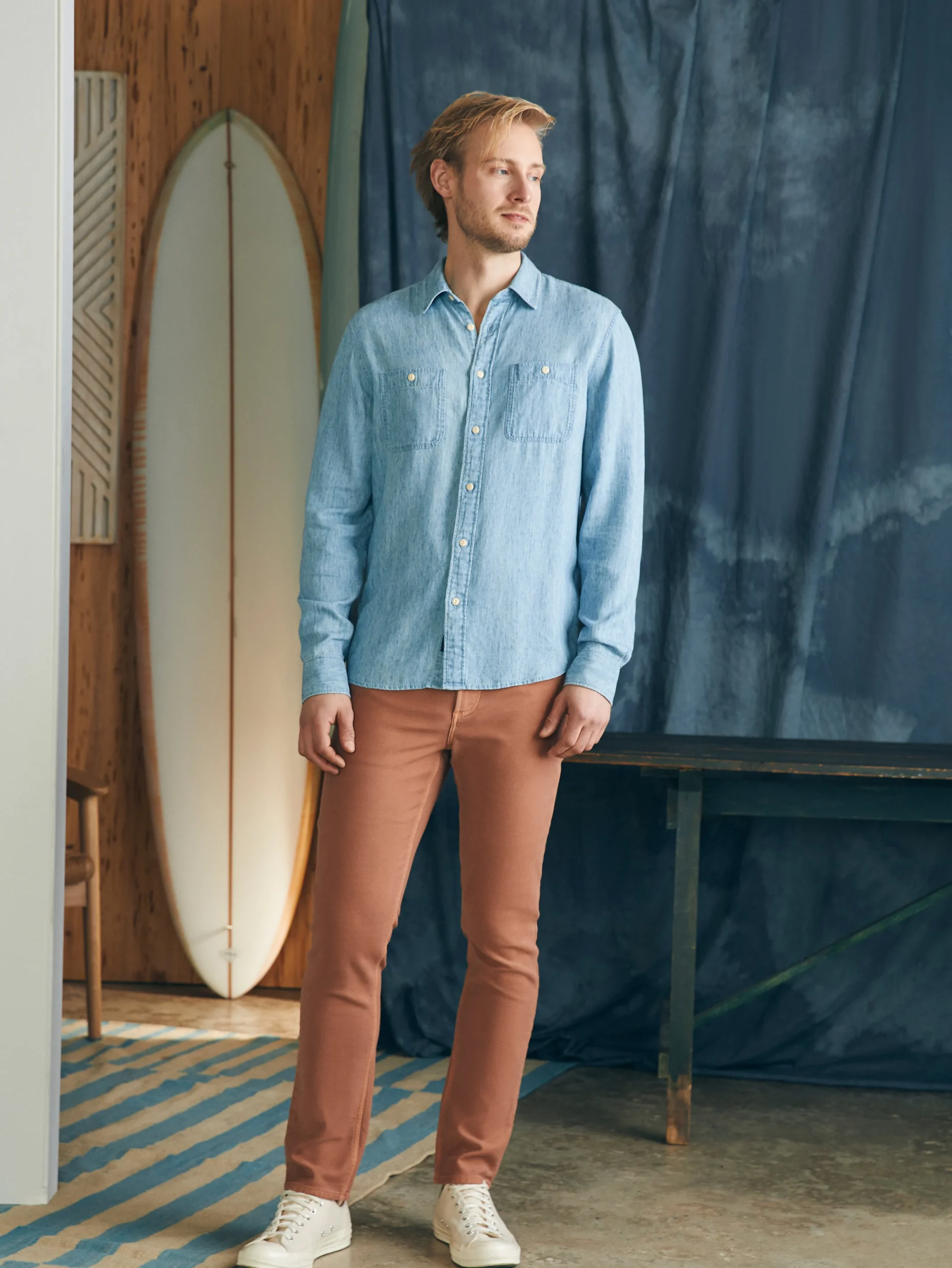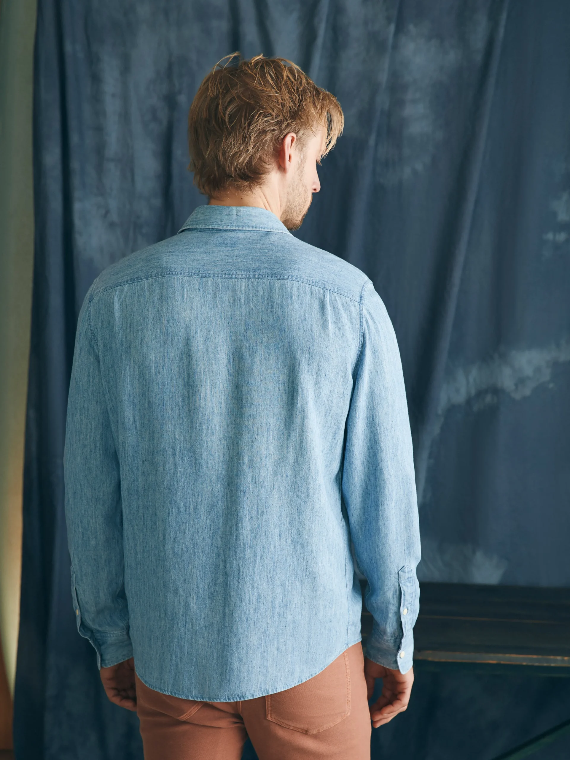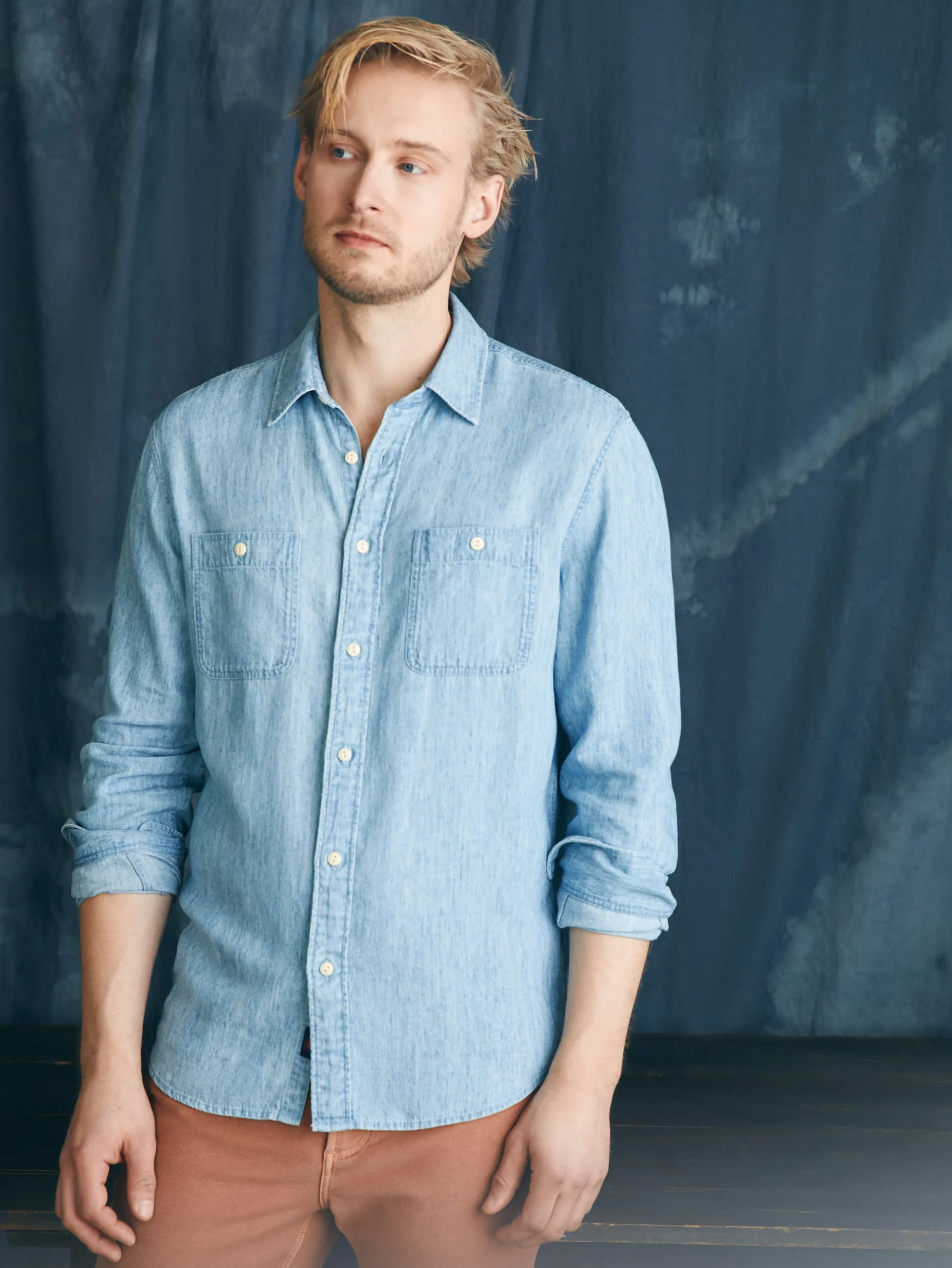 Think of a classic chambray shirt, but super light and super soft. We updated ours in a tencel and linen blend for the softest hand-feel and improved breathability. With classic styling, this shirt can go anywhere and do anything—on it’s own or underneath a jacket or blazer.