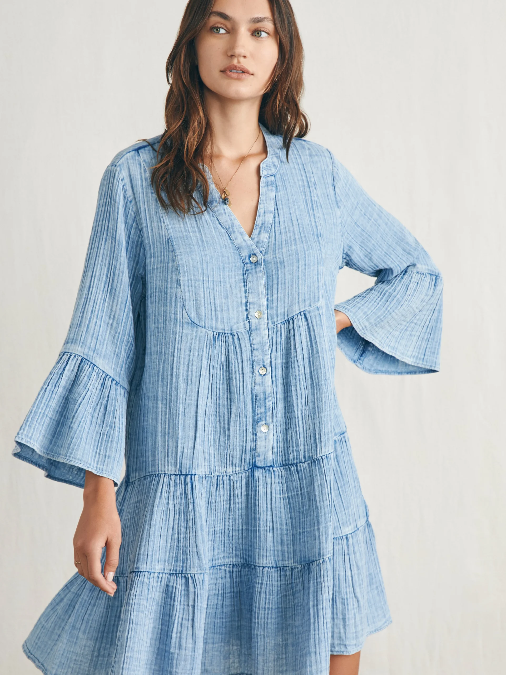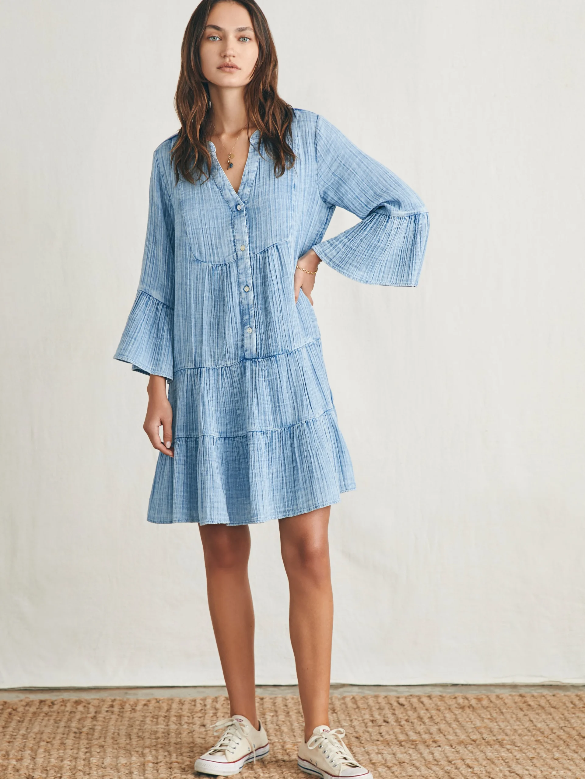 Float through the day in this whimsical dress that balances a tiered mini length skirt with long billowy sleeves. Versatile enough to run errands in or to dress up for dining out – some dresses are just fun to wear. This is definitely one of them.