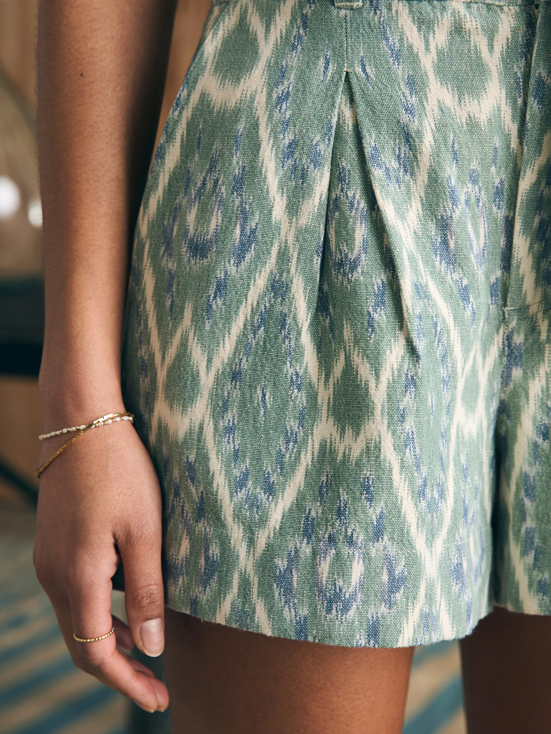 This style is our take on the elevated short. Crafted in 100% organic cotton, they’re perfected with a just-tailored-enough fit and a fun-in-the-sun hand-dyed ikat pattern. Style with a crisp white button-down or a slouch tee to look effortlessly chic all summer long.