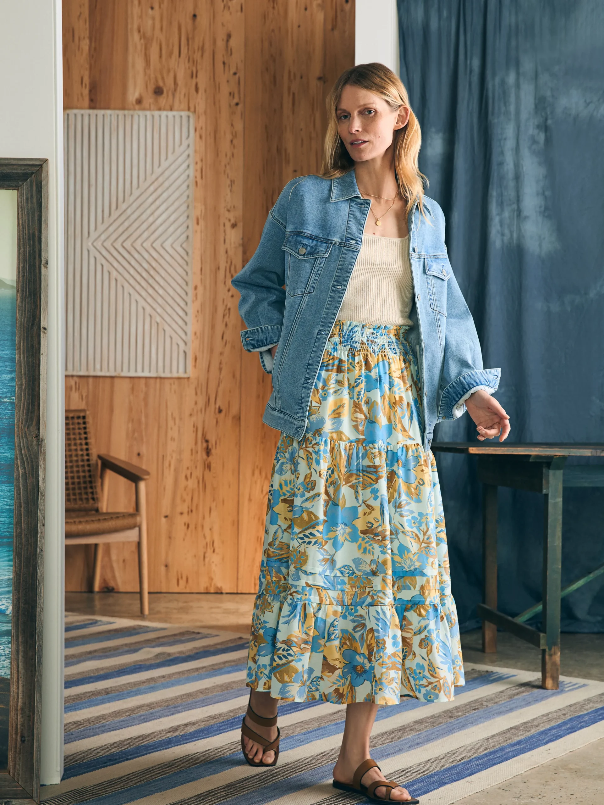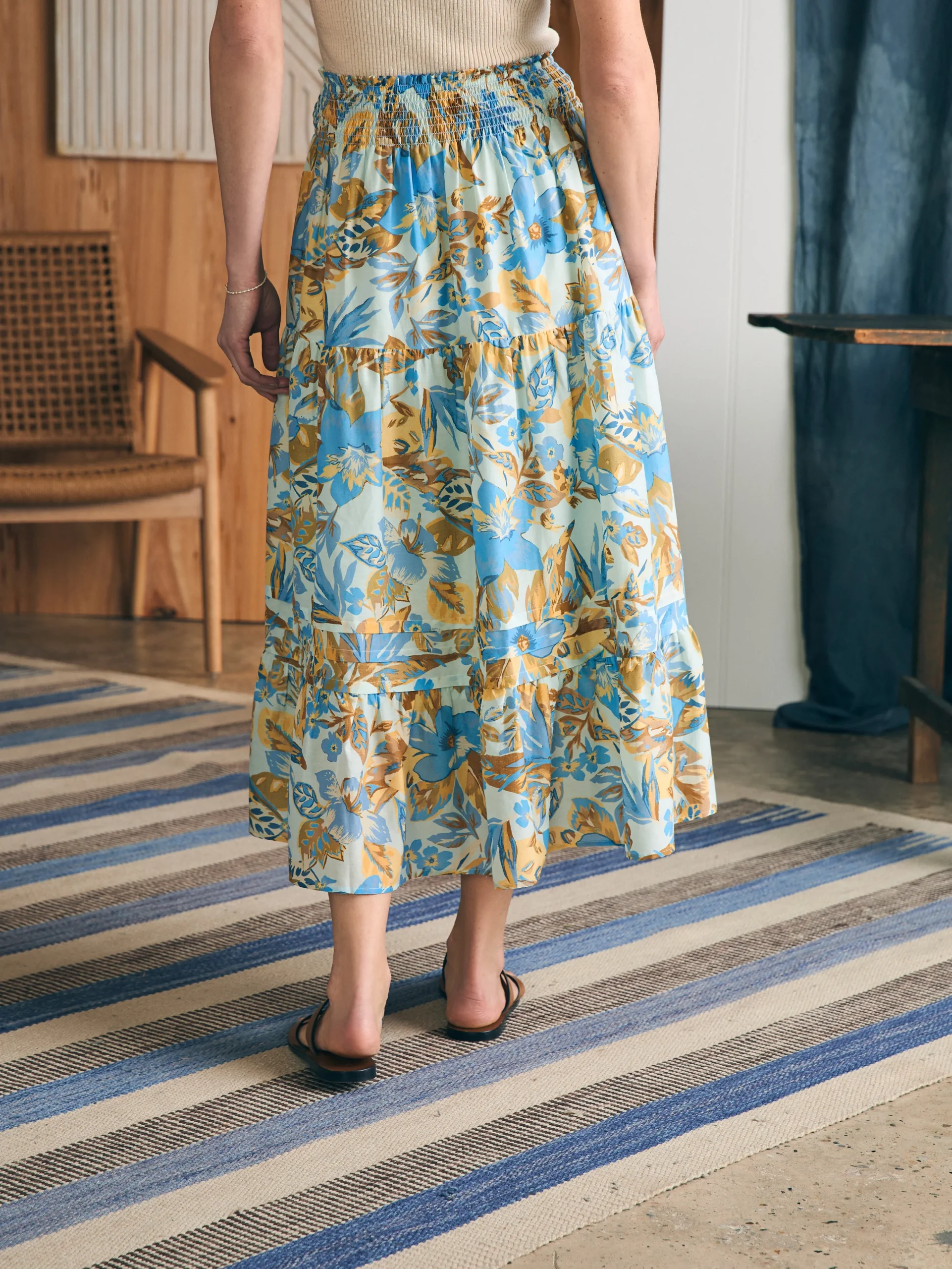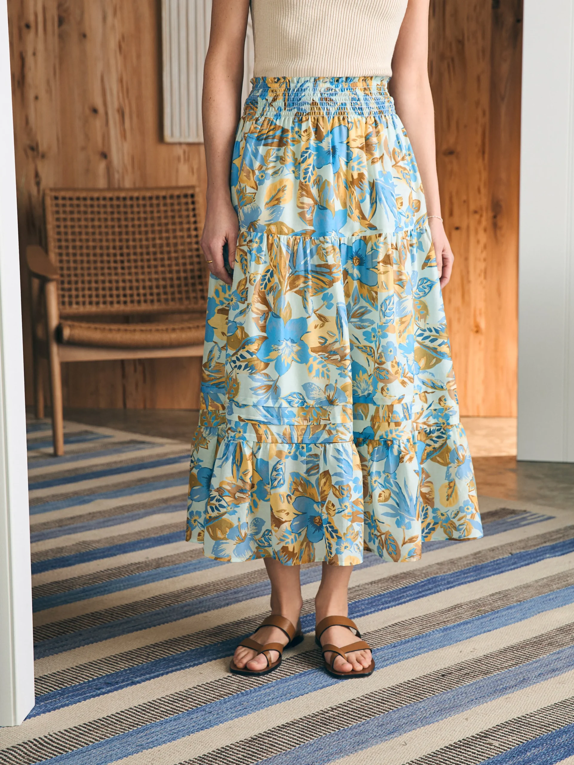 Romantic and charming––but never fussy, our floaty maxi skirt is all about pull-on ease with a smocked waistband, graceful pleats and tiers. It transitions seamlessly from a tank and sandals in the summer to a cozy knit and boots in the fall.