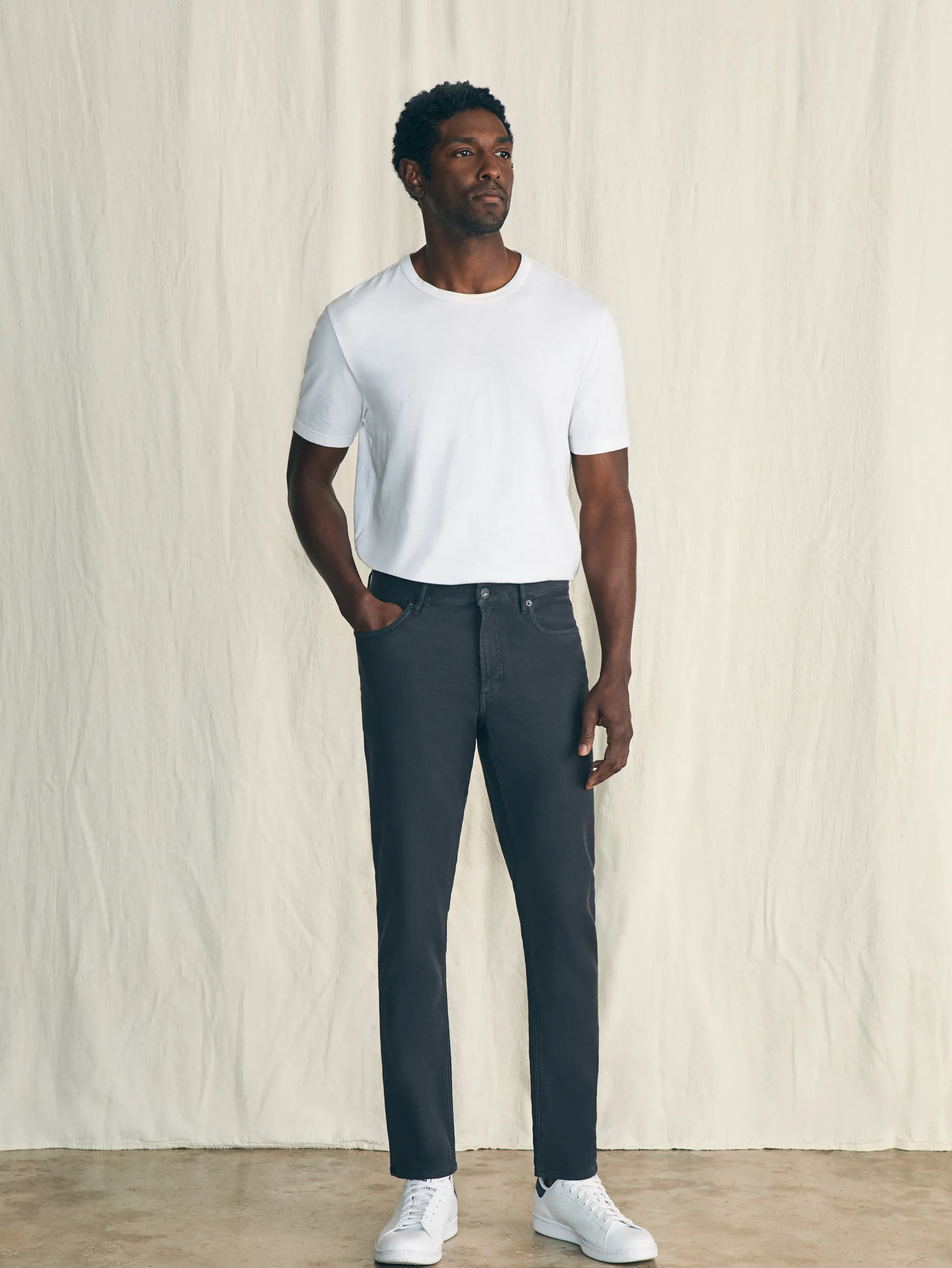 There’s nothing quite like our Stretch Terry 5-Pocket pants out there. Why? Frankly, there just aren’t that many other people thinking about what would happen if they combined their favorite pair of slim, straight leg jeans with absurdly soft sweatpants. The proprietary stretch fabric dreamed up by Mike, our Co-founder and Chief Creative Officer makes it all that and more. We recommend ordering your true size. Like new denim, they might feel a bit snug right out of the box but trust the process. Your natural movements will make them relax and conform to your unique shape.