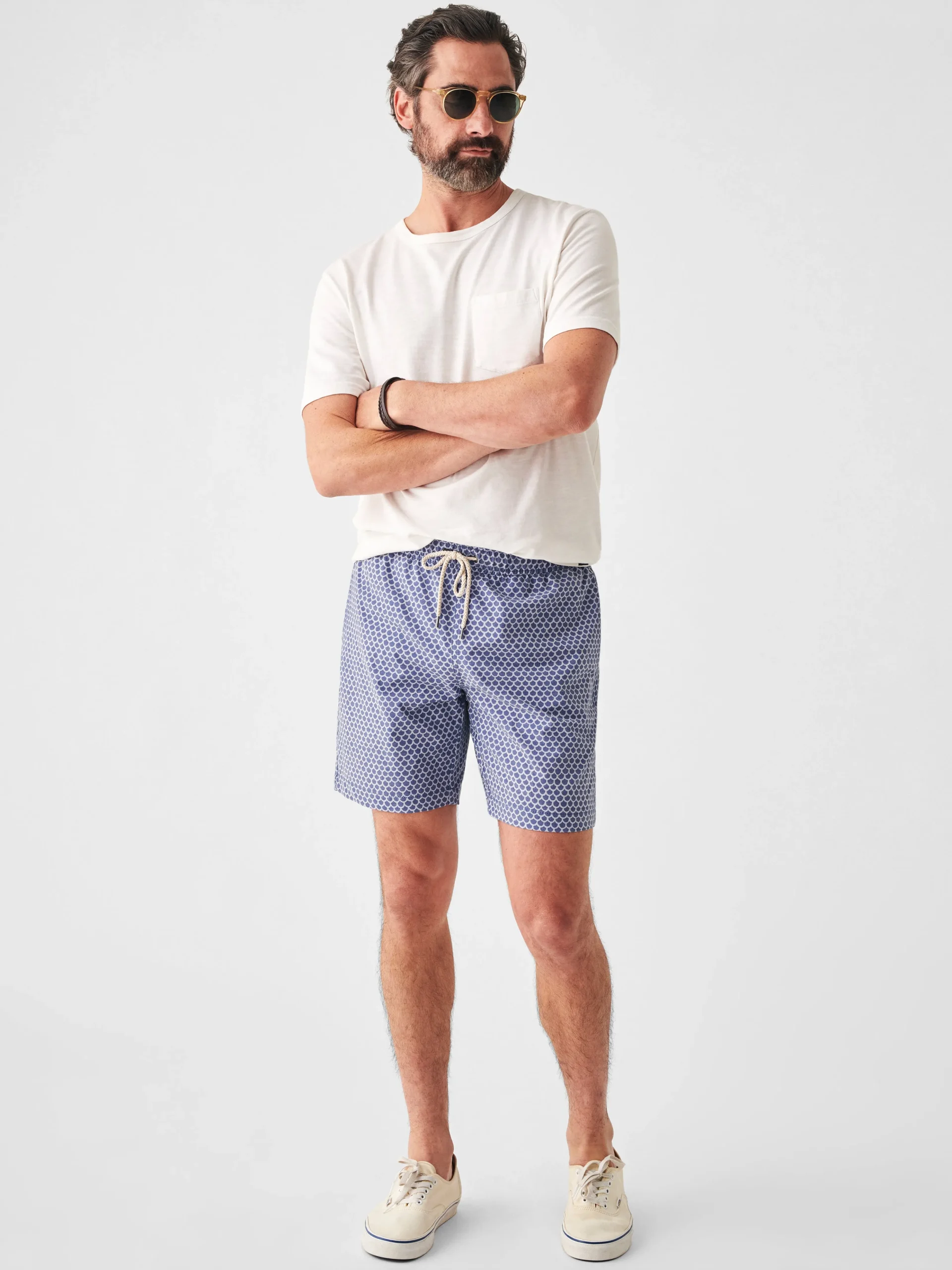Our eco-friendly take on the classic swim trunk, with a vintage-inspired design that’ll keep you looking great whether you’re tackling the surf, lounging in the sun, or cooling down in the cabana. Crafted from a recycled poly made from plastic water bottles and blended with cotton (and a hint of elastane for stretch), the Beacon is quick-drying and wrinkle-free, perfect for minimizing those post-swim drips.