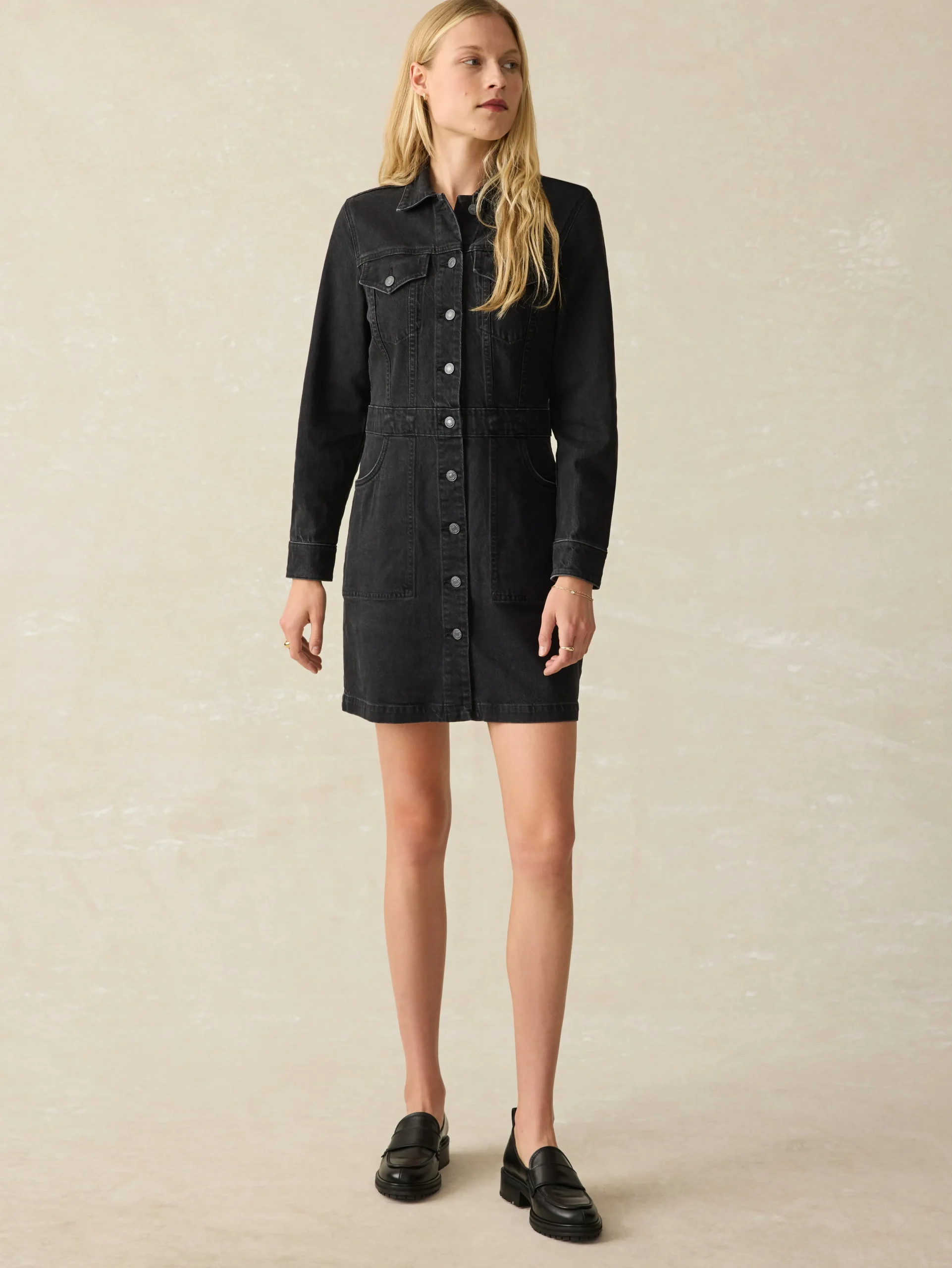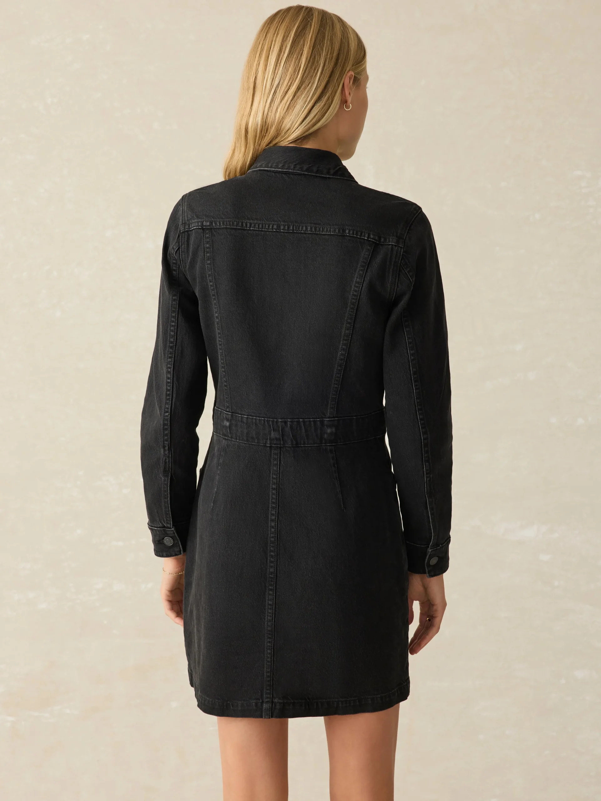 We took the details and feel of our most treasured, well-worn denim jacket and added a bit of length to the silhouette to create this utilitarian-inspired dress. Made in our exclusive denim fabric, a cotton woven with a textured slub yarn, it has the perfect amount of stretch to hug all your curves in the best way. Our denim also features an innovative, energy-efficient wash process that utilizes 80% less water than conventional denim wash methods. Finally, denim you can feel good about!