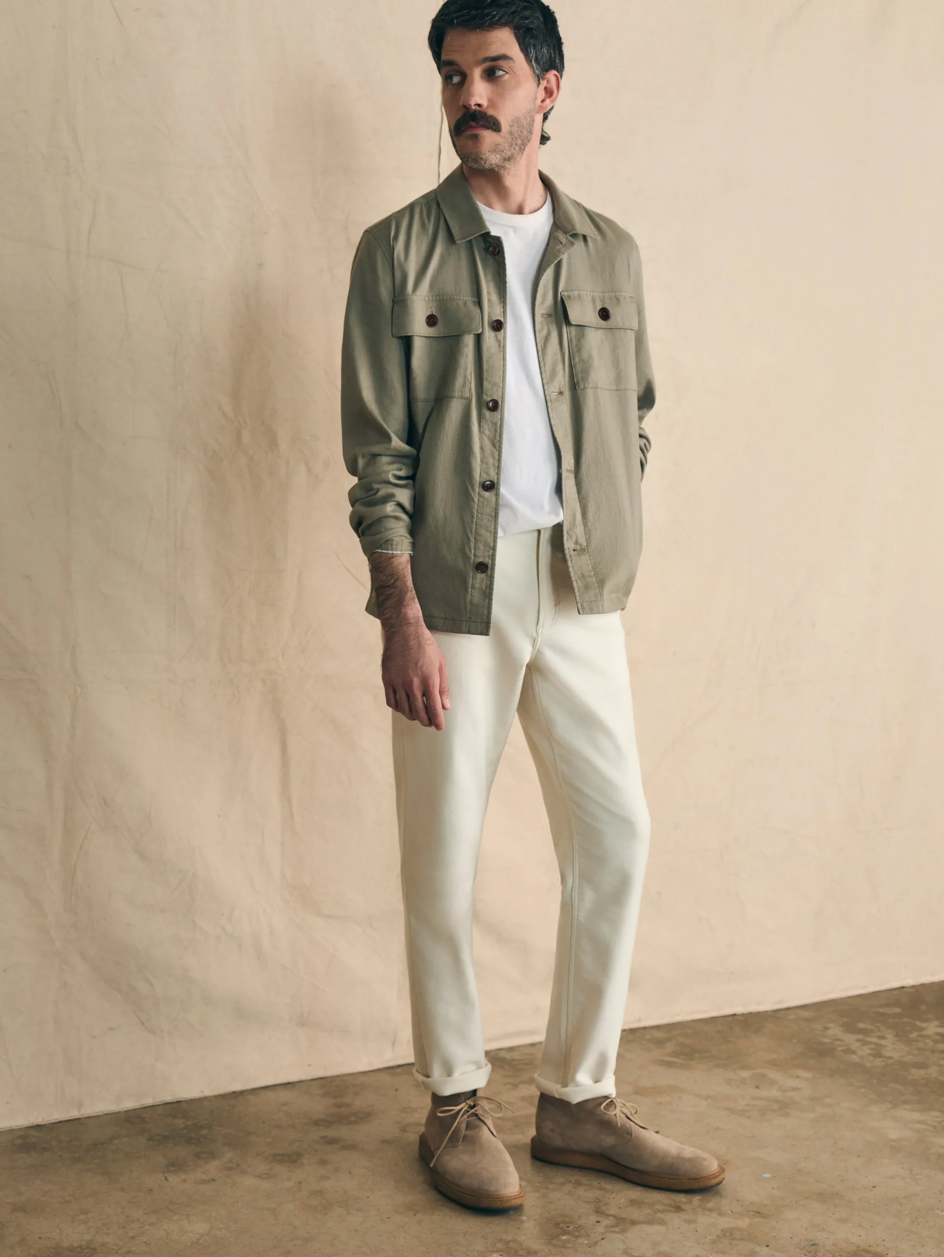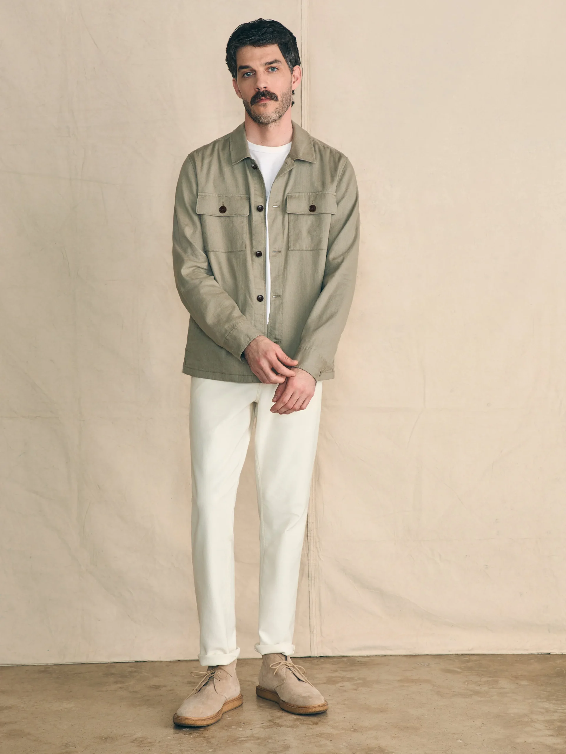 - Material: 55% Linen, 43% Organic Cotton, 2% Elastane; Horn Buttons