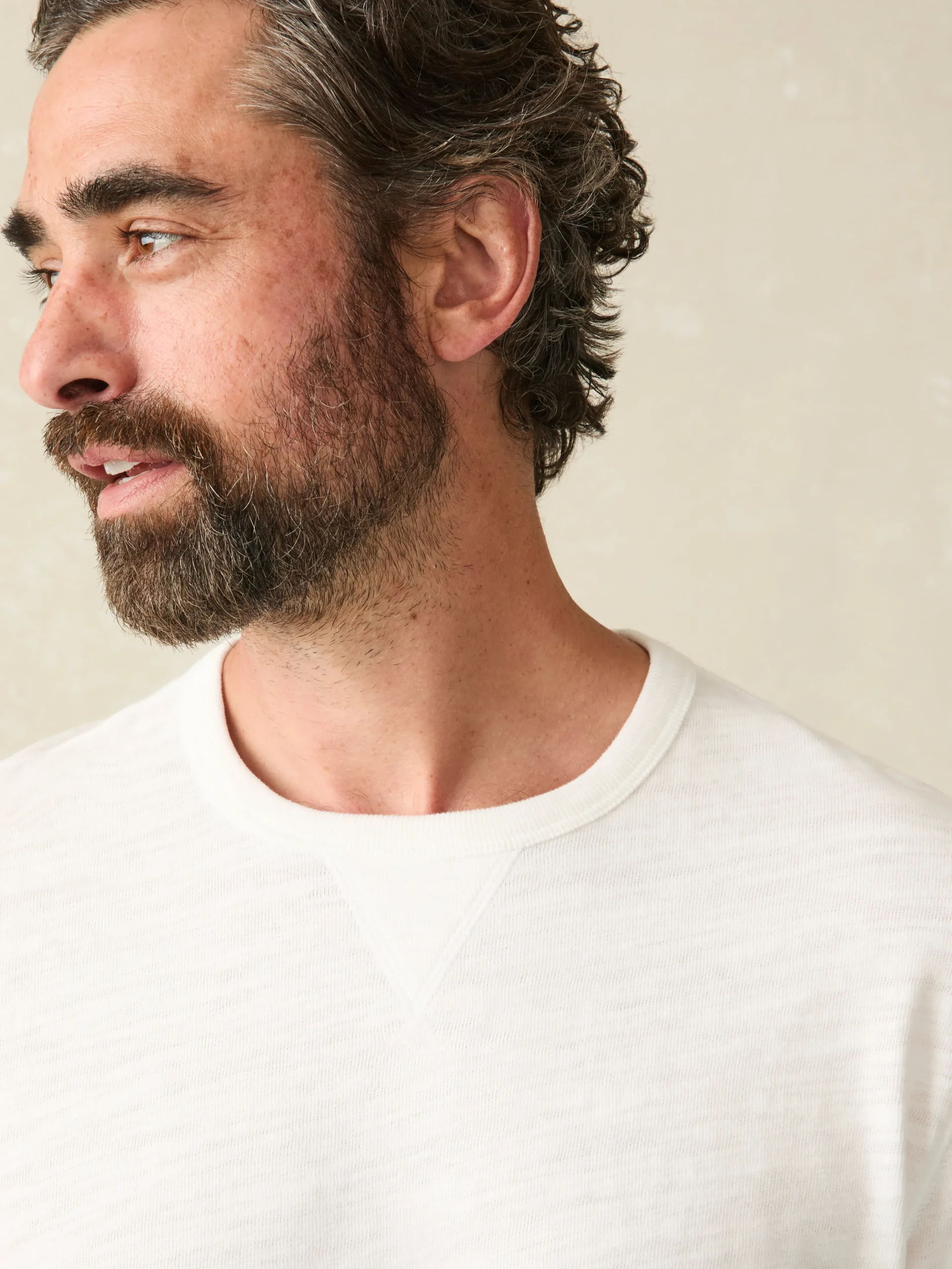 Our slub knit fabric is crafted from high-quality American-grown cotton, combed for exceptional texture and softness. The perfect layer does all the work of a sweatshirt — featuring a classic relaxed fit, knit ribbing at the collar, cuffs, and hem — without the added weight. Get one, and feel what we’re talking about.