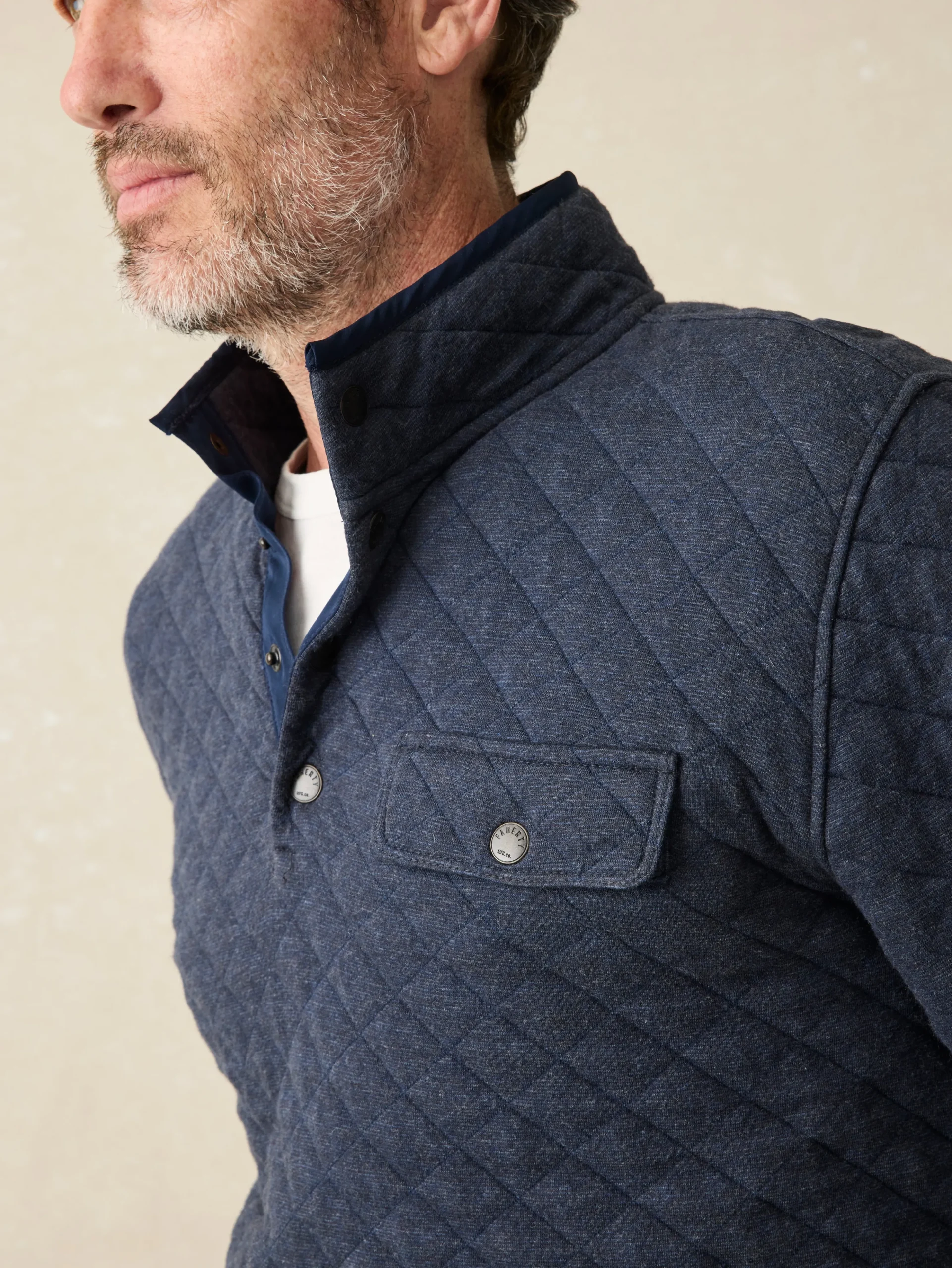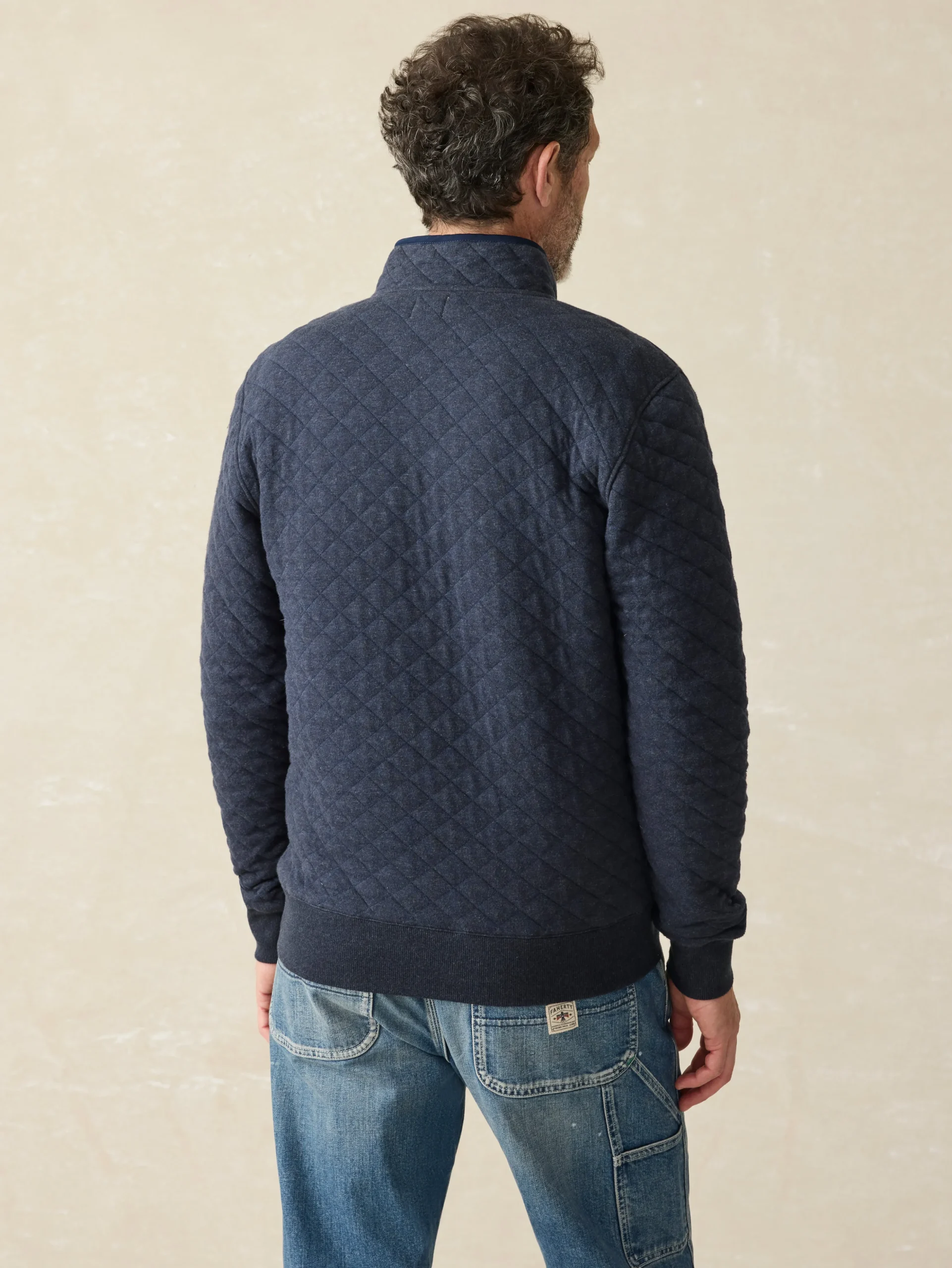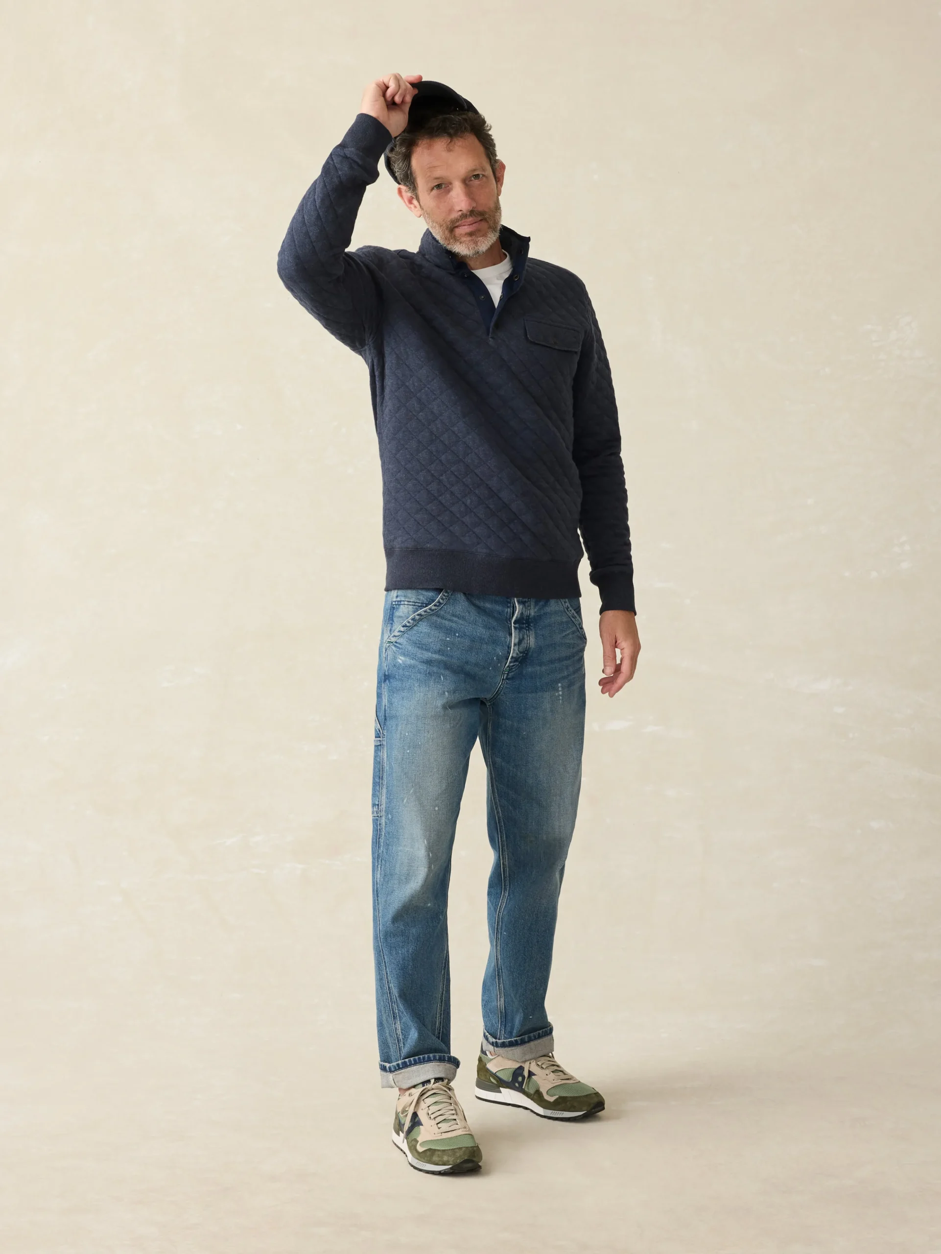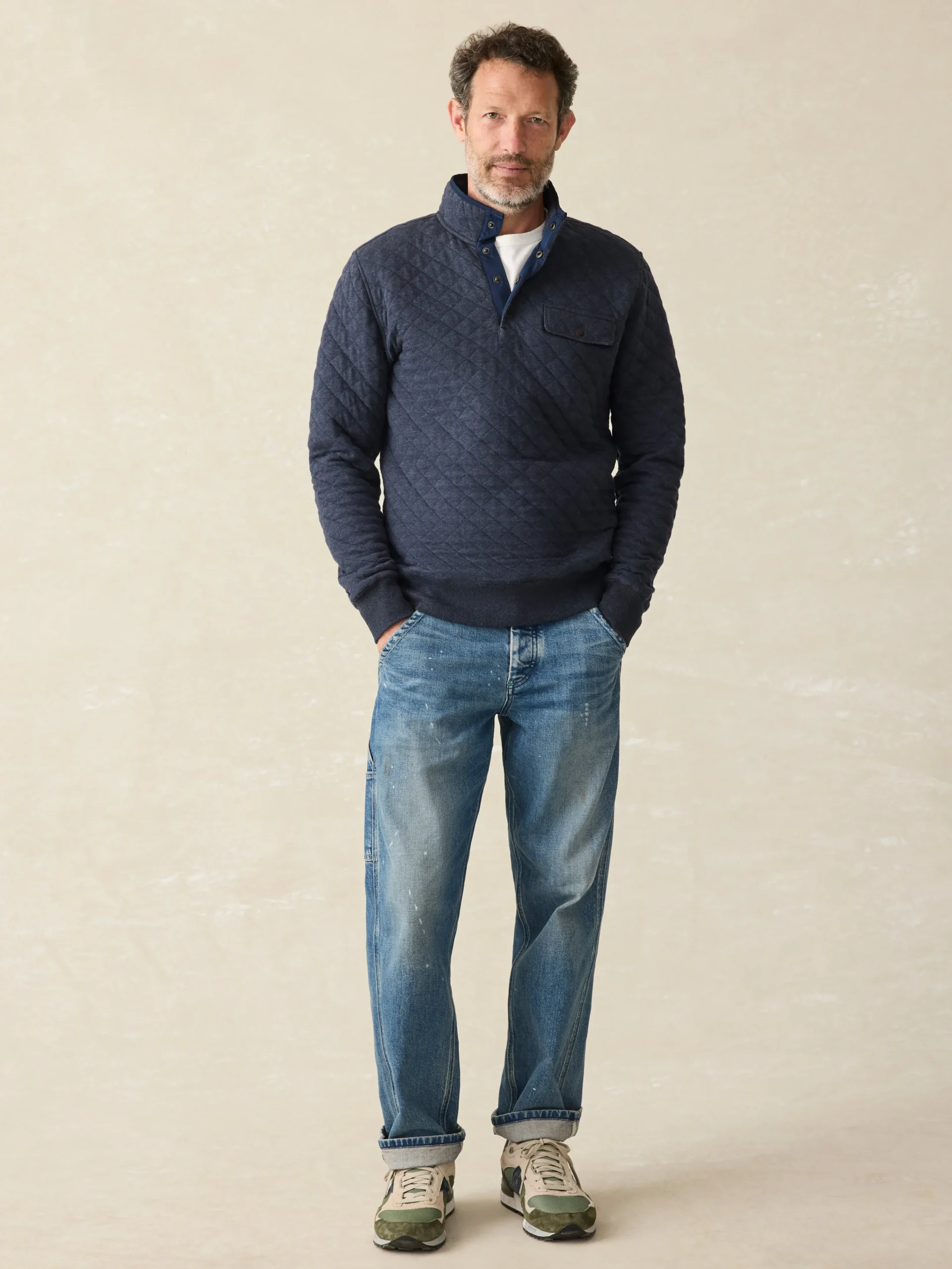 Quilted with three layers for structure, texture and warmth, this midweight fleece is more polished than a sweatshirt and endlessly versatile. We wear it over shirts or under jackets on colder days.