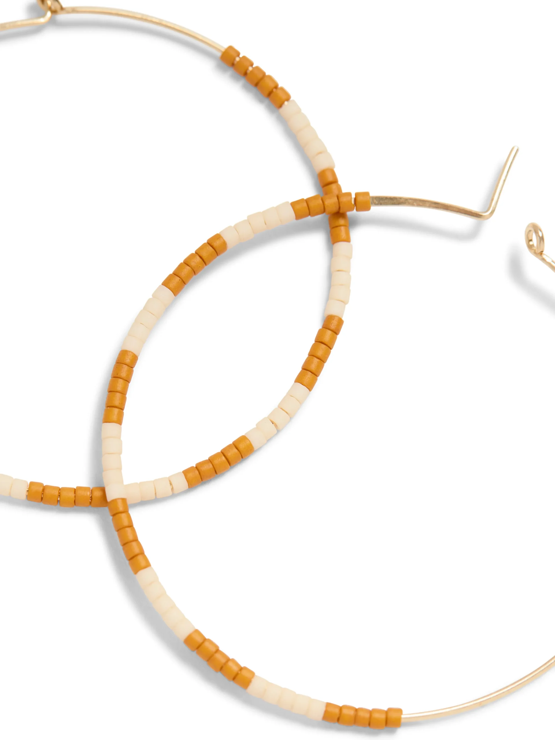 - Detail: Our lightweight and delicate hoops are made with 14k gold-filled wire and a striped pattern of glass seed beads.