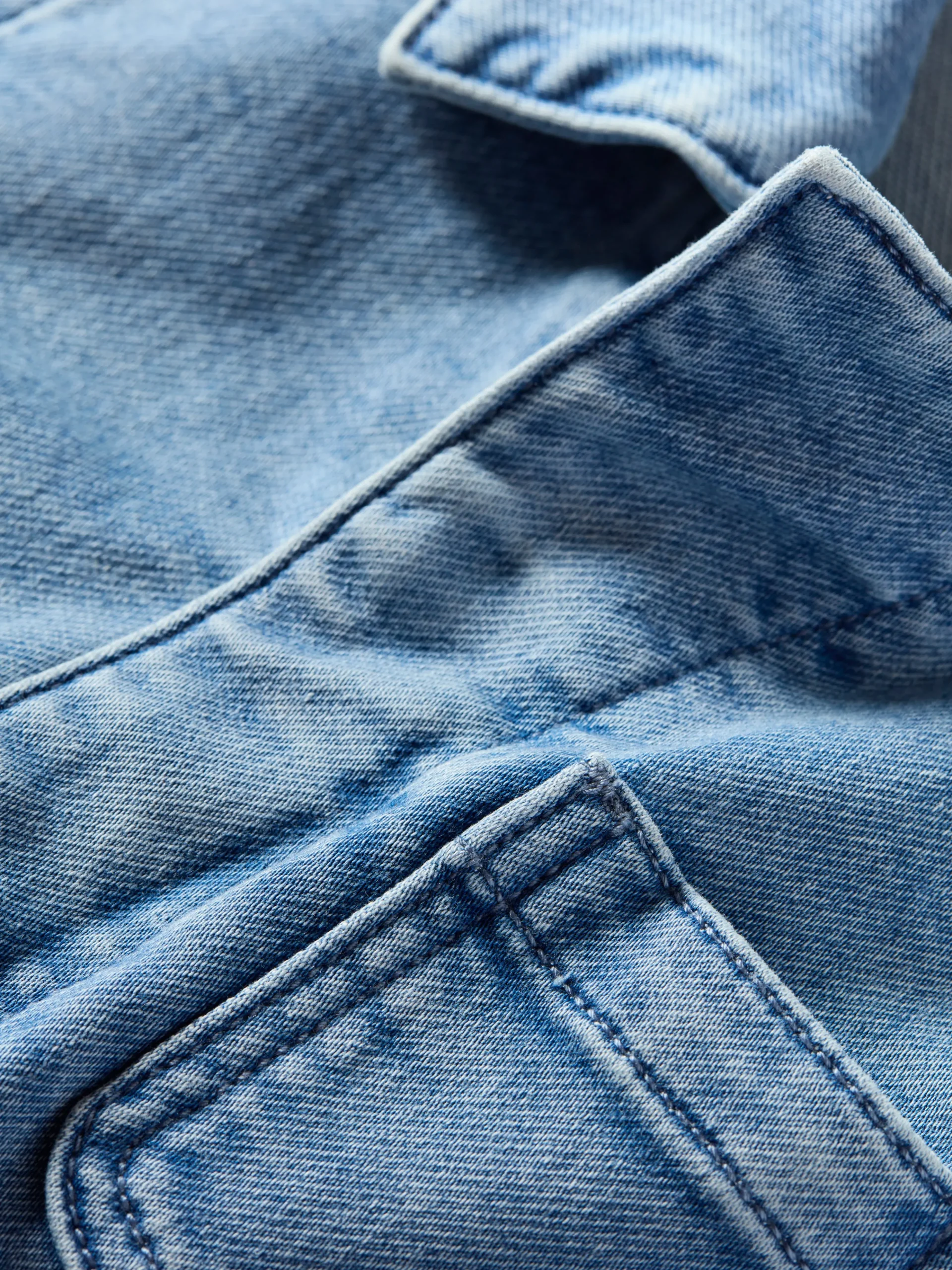 - Material: 83% Cotton, 16% Polyester, 1% Elastane; Concha Snap, Antique Brass Zipper