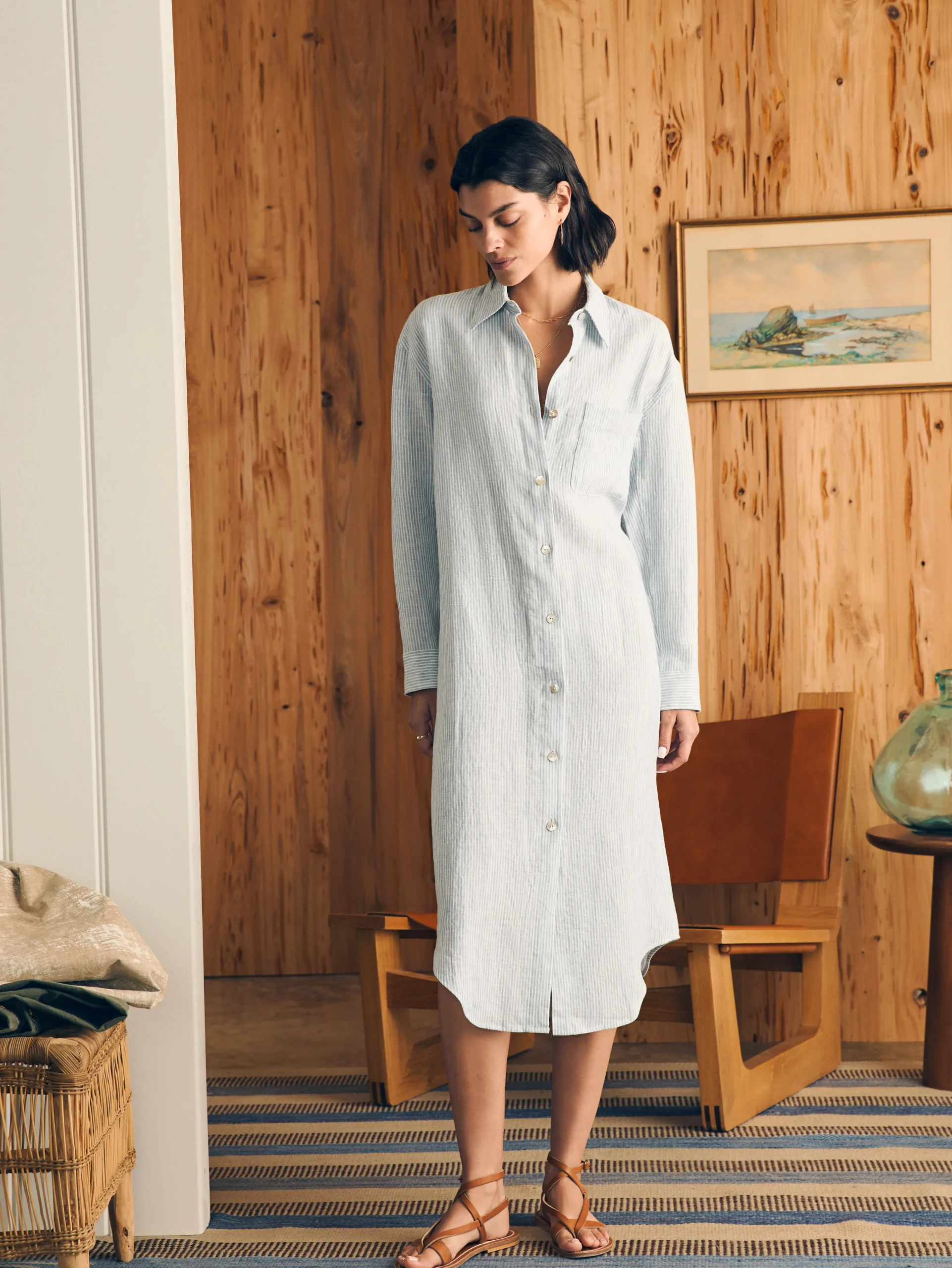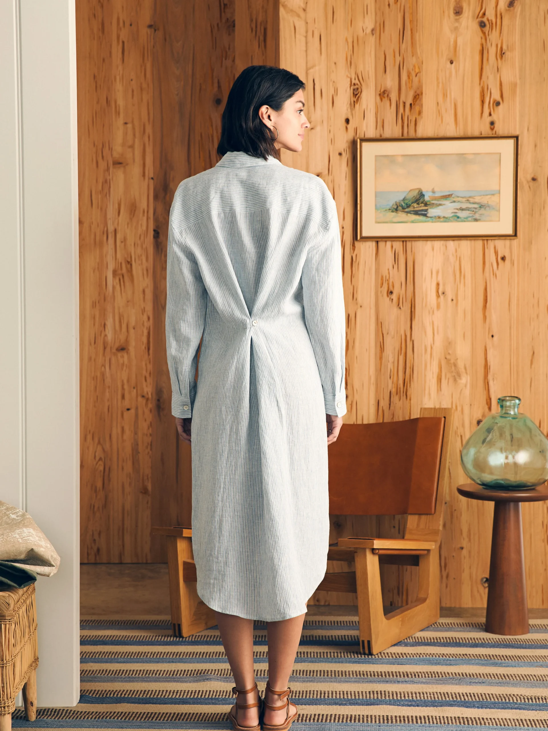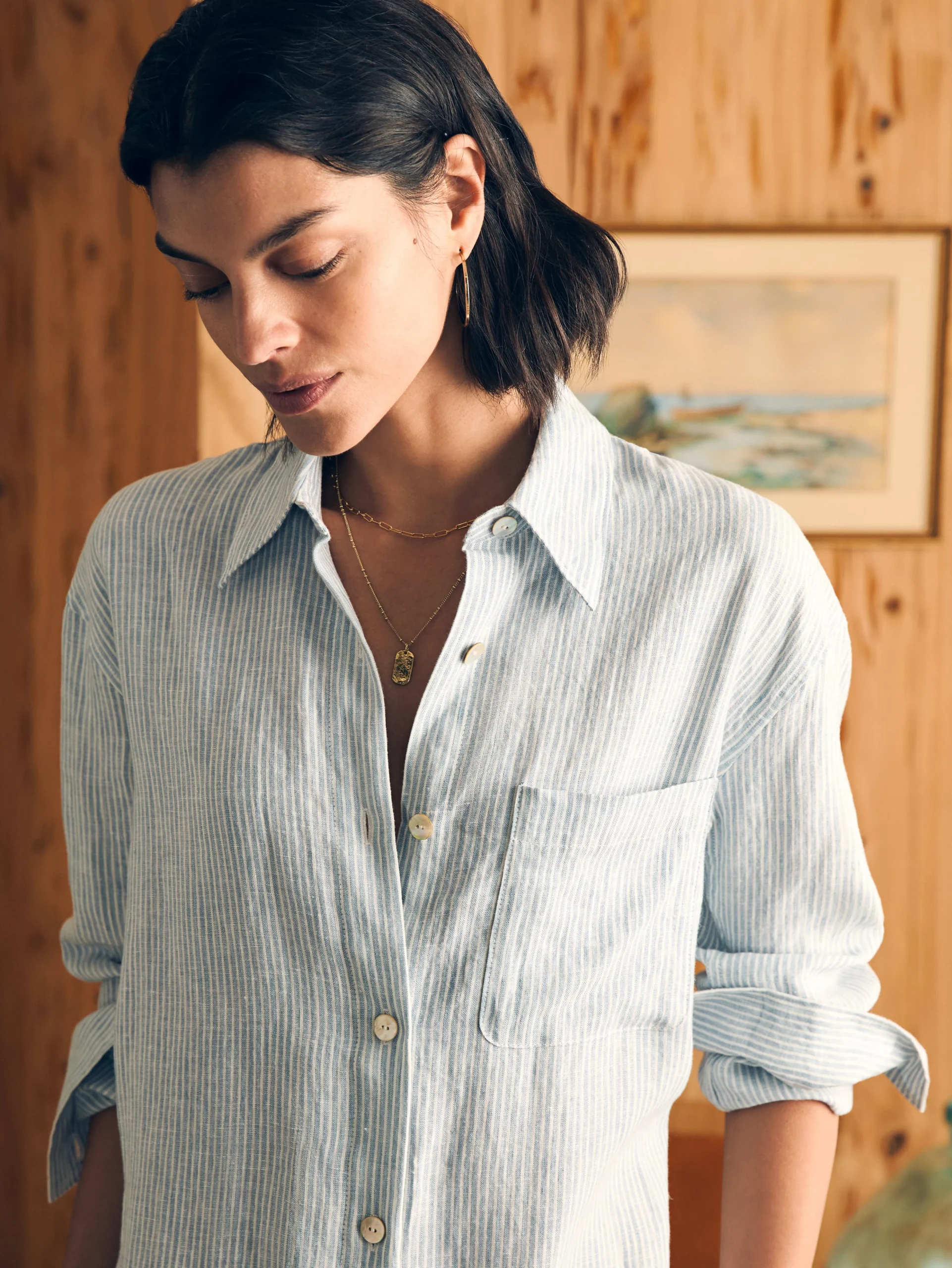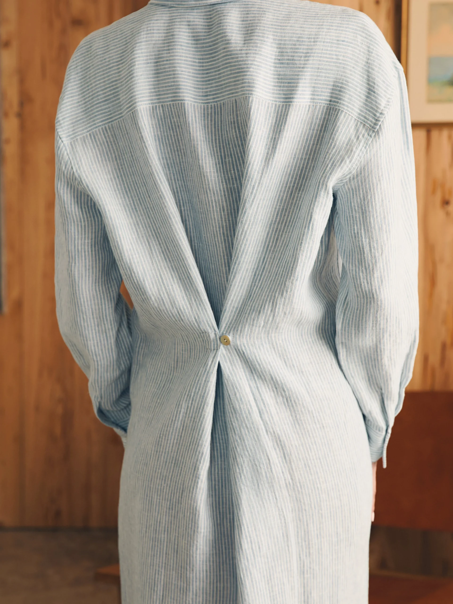 Low-key elegance is a breeze in our favorite fabric of the season: linen. Naturally cooling, lightweight, and washed for incredible softness, its earthy texture looks especially elevated in clean, simple silhouettes. We designed it with a button detail in the back to create a subtle, cinched effect for a relaxed and feminine shape that’s timeless and ultra-flattering.