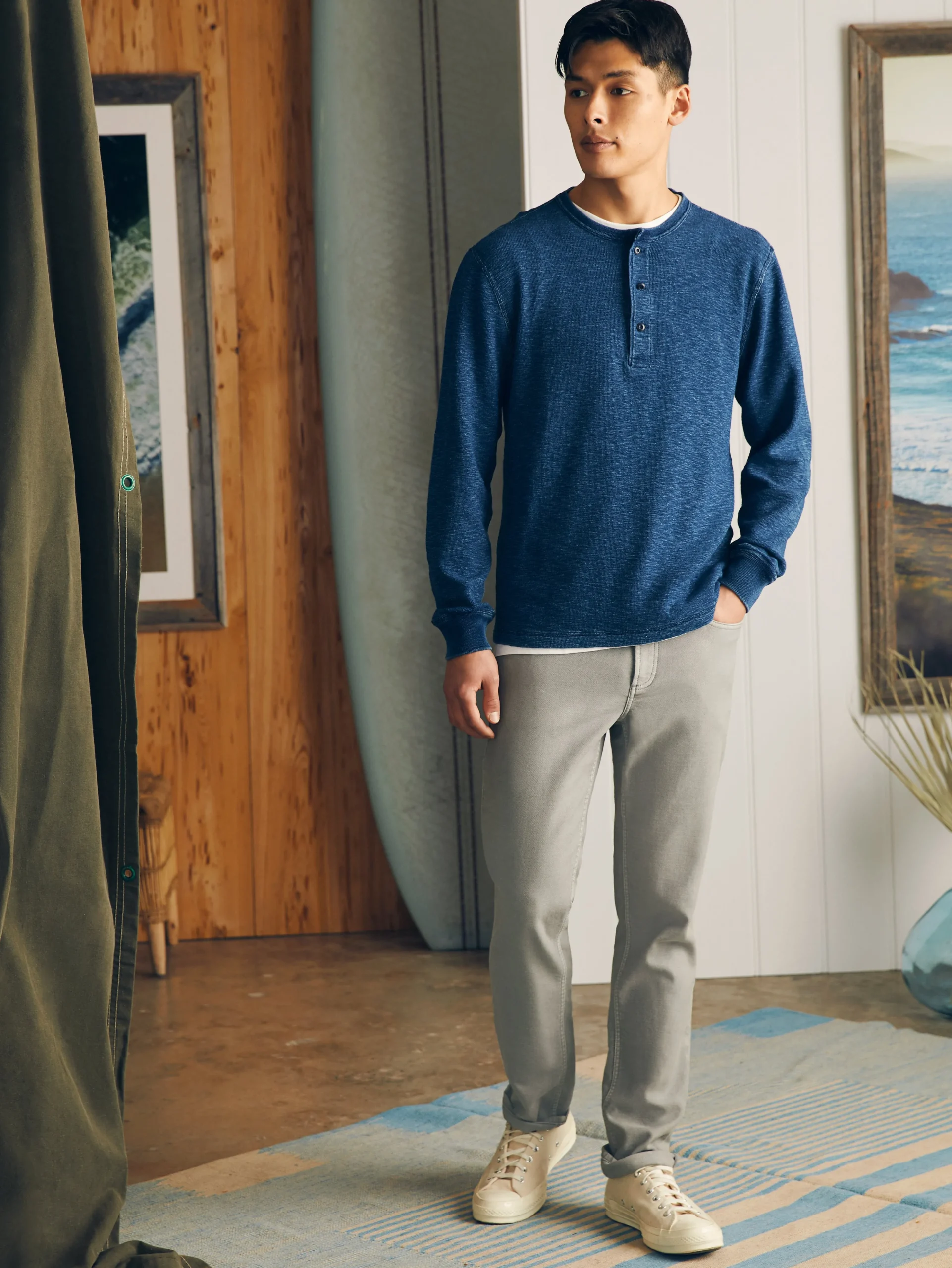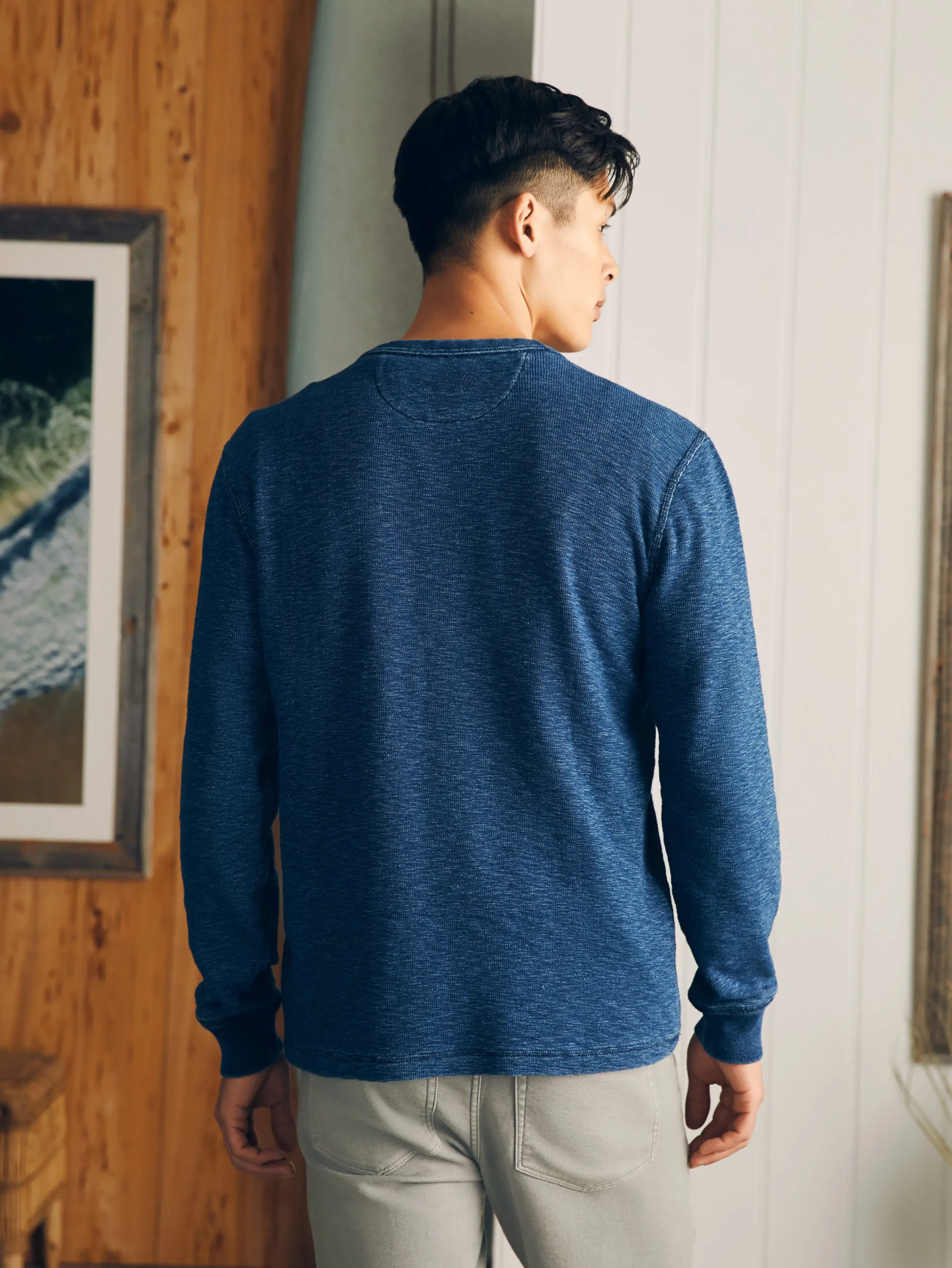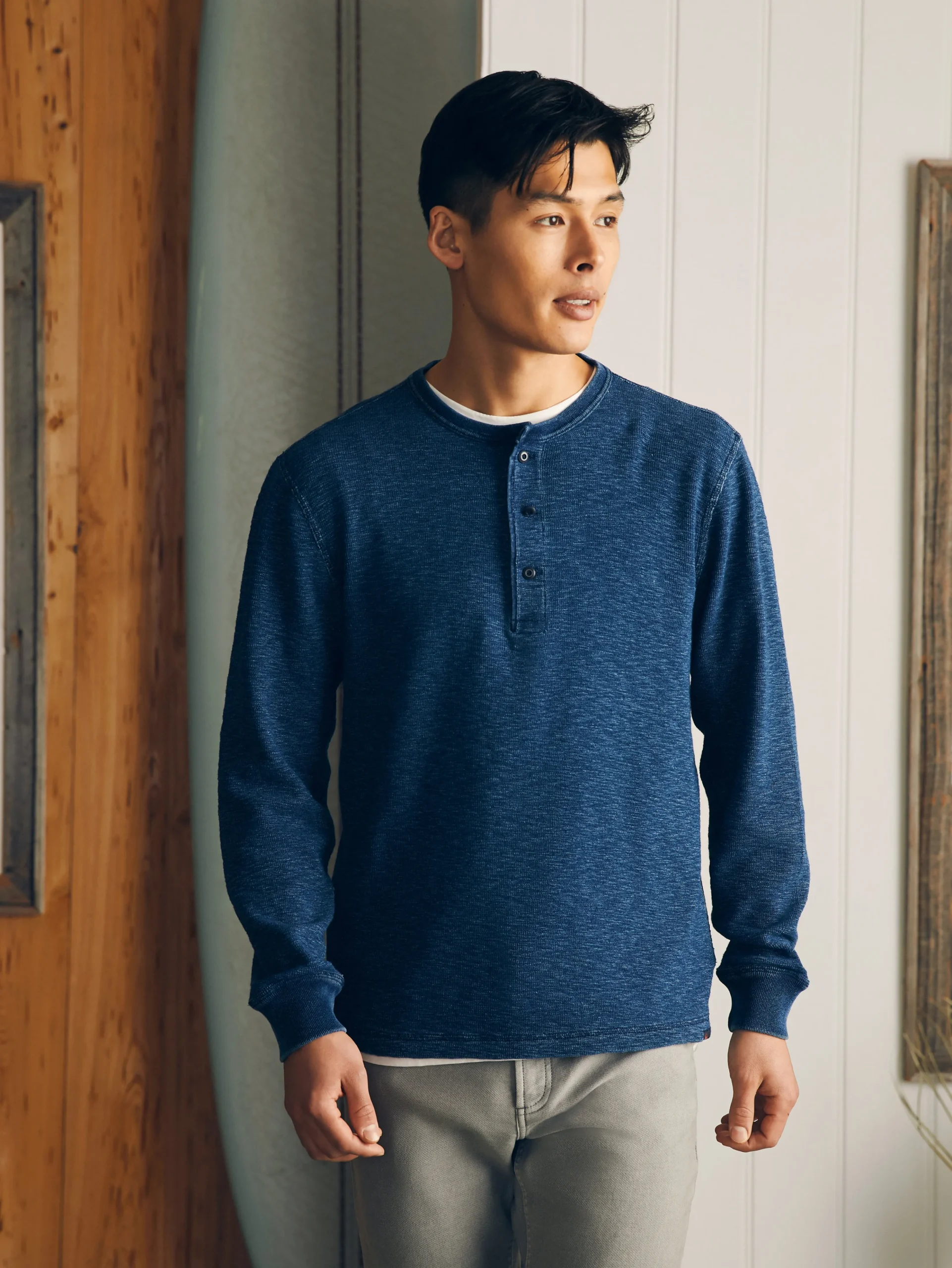 Inspired by the perfectly imperfect look of a well-worn vintage t-shirt, our henley is knit with the softest cotton yarns for texture and authenticity. Dyed with natural indigo and garment washed for softness, it’s the not-so-basic, basic.