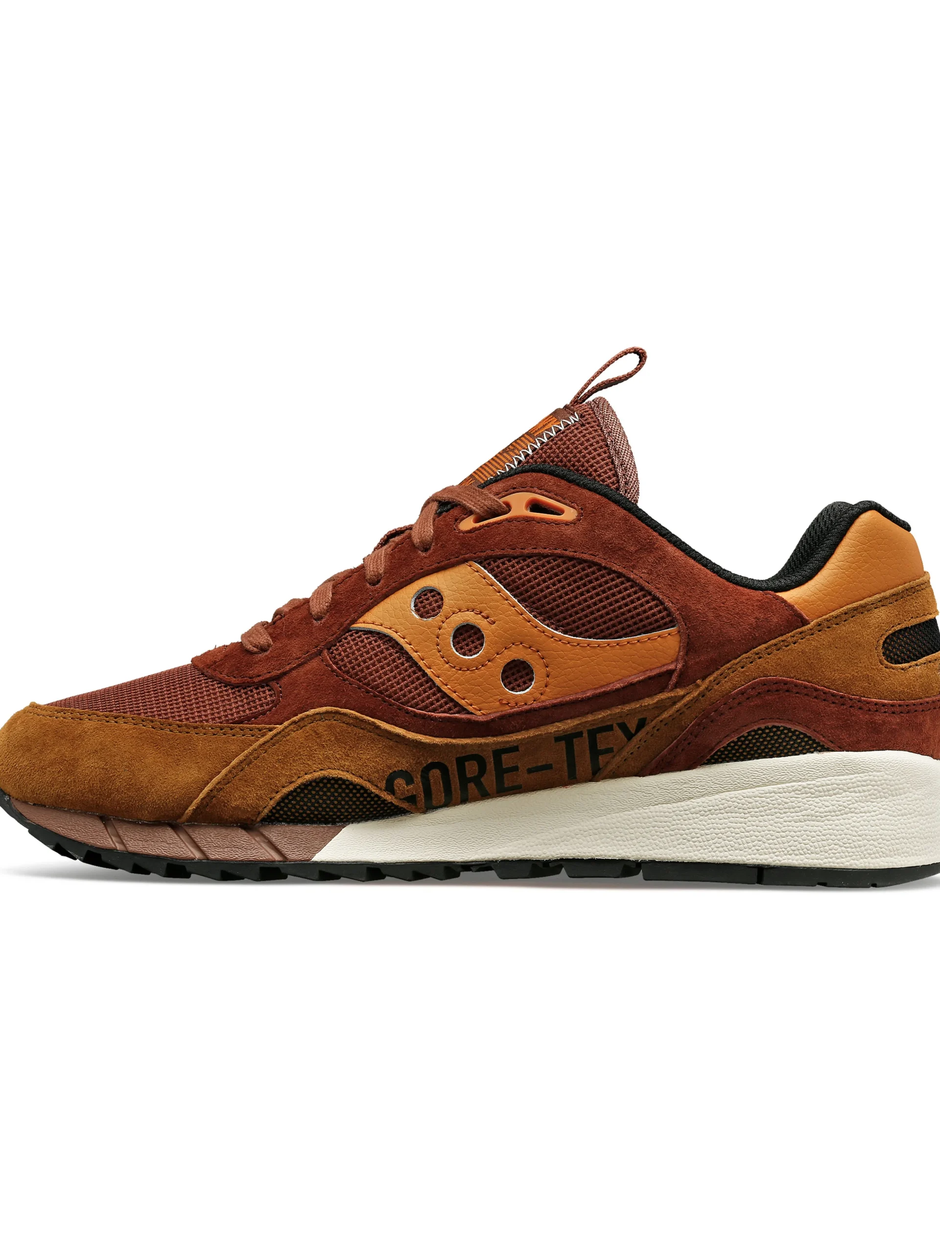 - Detail: This is a classic you can wear in questionable weather. The Shadow 6000 GORE-TEX takes everything you love about the ’91 shoe and gives it a protective shield to help block out the cold and wet. Water-repellent suede hits and outdoor-inspired colors offer extra form and function. And in case you forgot or got worried about stepping out too soon, there’s GORE-TEX branding to remind you. Premium sock liner Ionic cushioning system Polyurethane Triangular lugs. Shock-absorbing EVA midsole XT-600 triangular lug rubber traction outsole