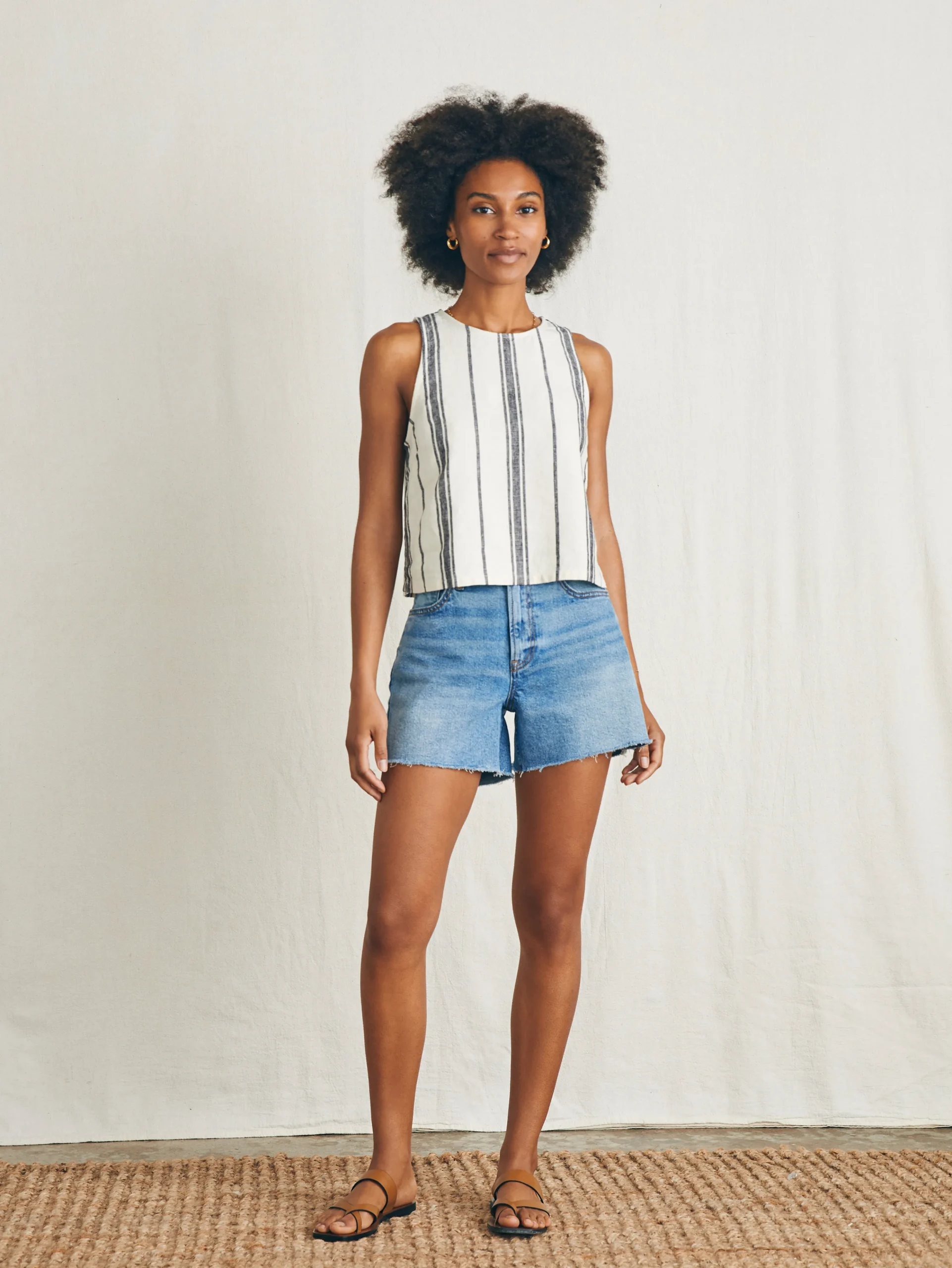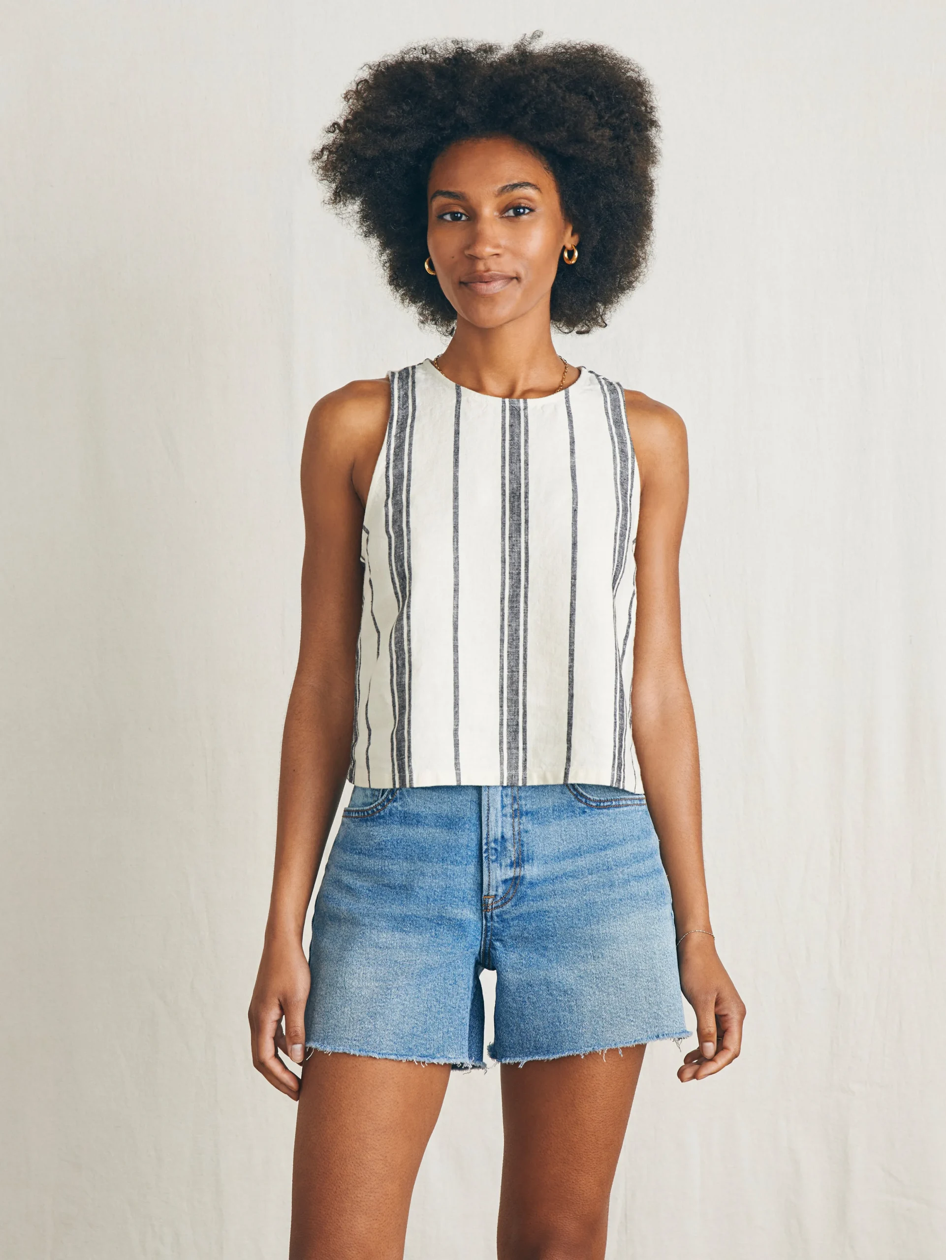 Channel that easygoing beach spirit in this swingy tank printed with our beautifully saturated hand dyed stripe. Casually elegant and versatile, we love it styled under a cardigan or on it’s own with jeans in transitional temps.