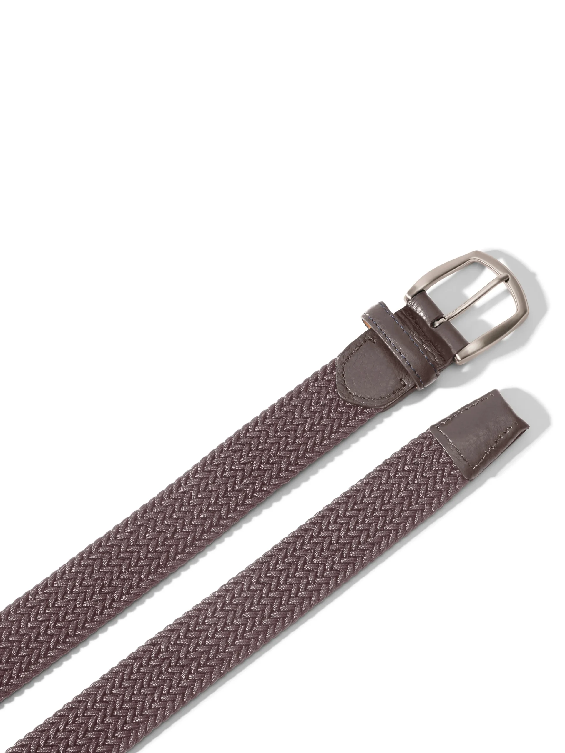 - Detail:Solid Woven Stretch Belt with Pebbled Calf Tabs