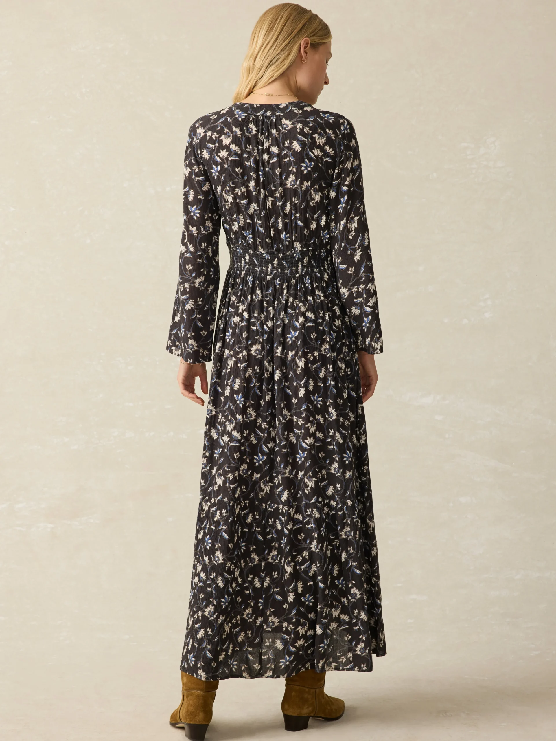 Perfect for sunlit afternoons and dreamy evenings, this maxi dress features a beautifully tiered skirt that adds movement and grace with every step. The elegant bell sleeves provide a touch of bohemian flair, creating a romantic silhouette that effortlessly transitions from day to night. From the office to a sunset dinner, this dress is your go-to for making a statement while still feeling utterly at ease.