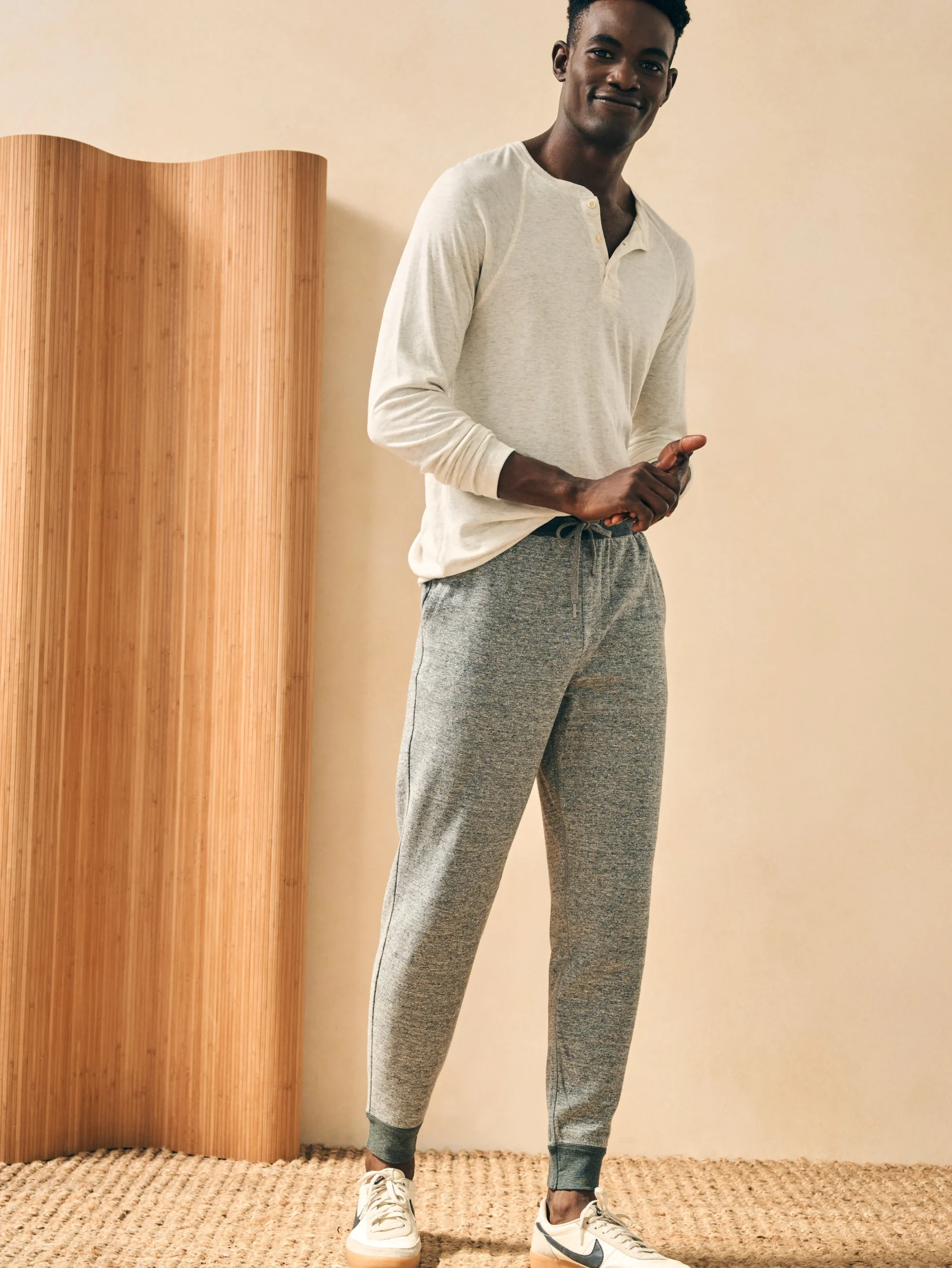 Introducing our new Double Knit program, inspired by the rugged look of vintage surplus and lofty, casual surf aesthetics. The fabric itself is essentially two layers of soft organic cotton and recycled polyester that are joined together through the knitting process giving it a heathered, worn-in look. Laid back but refined, these easy sweatpants are down for lounging and up for a coffee-run.