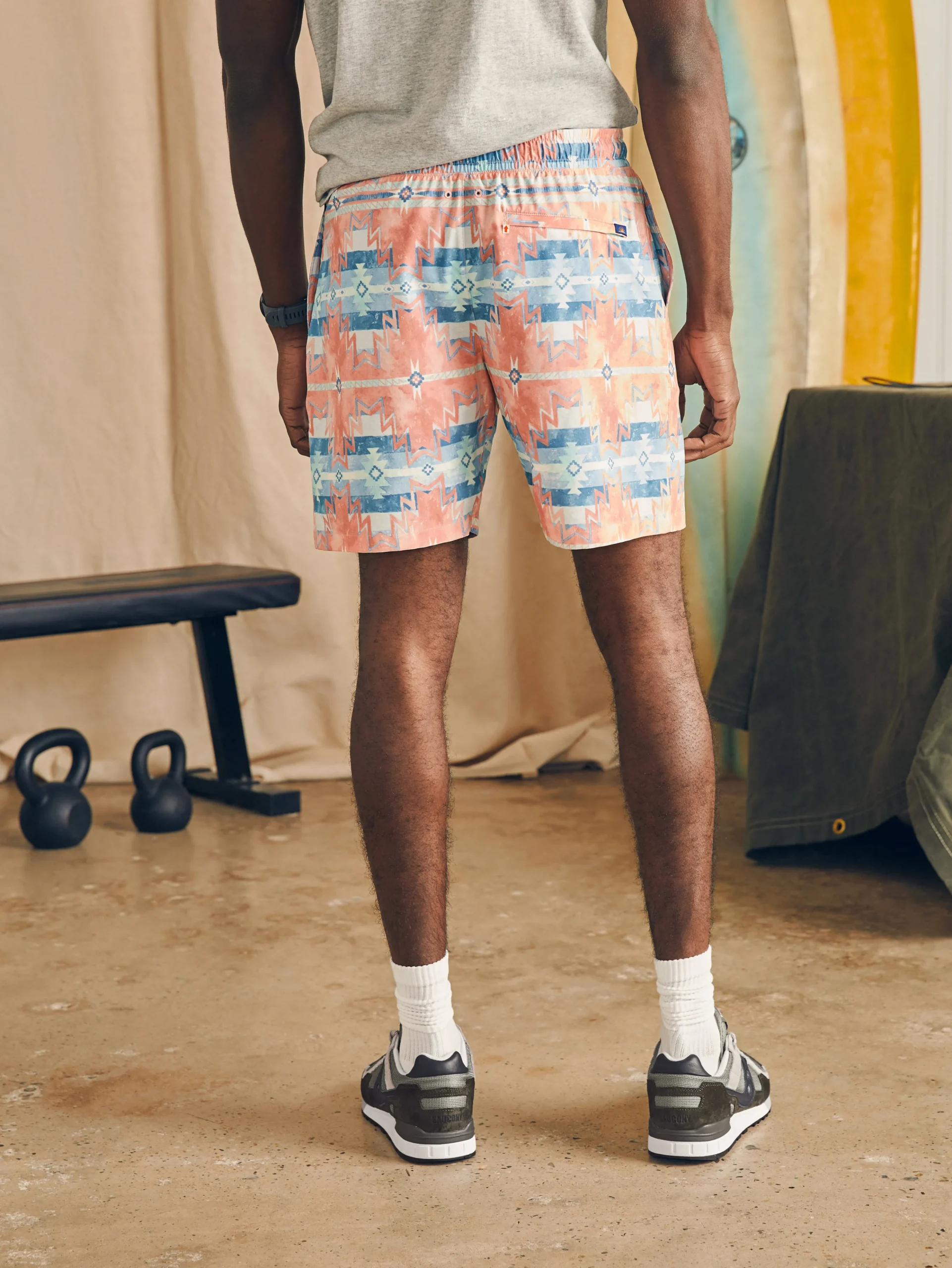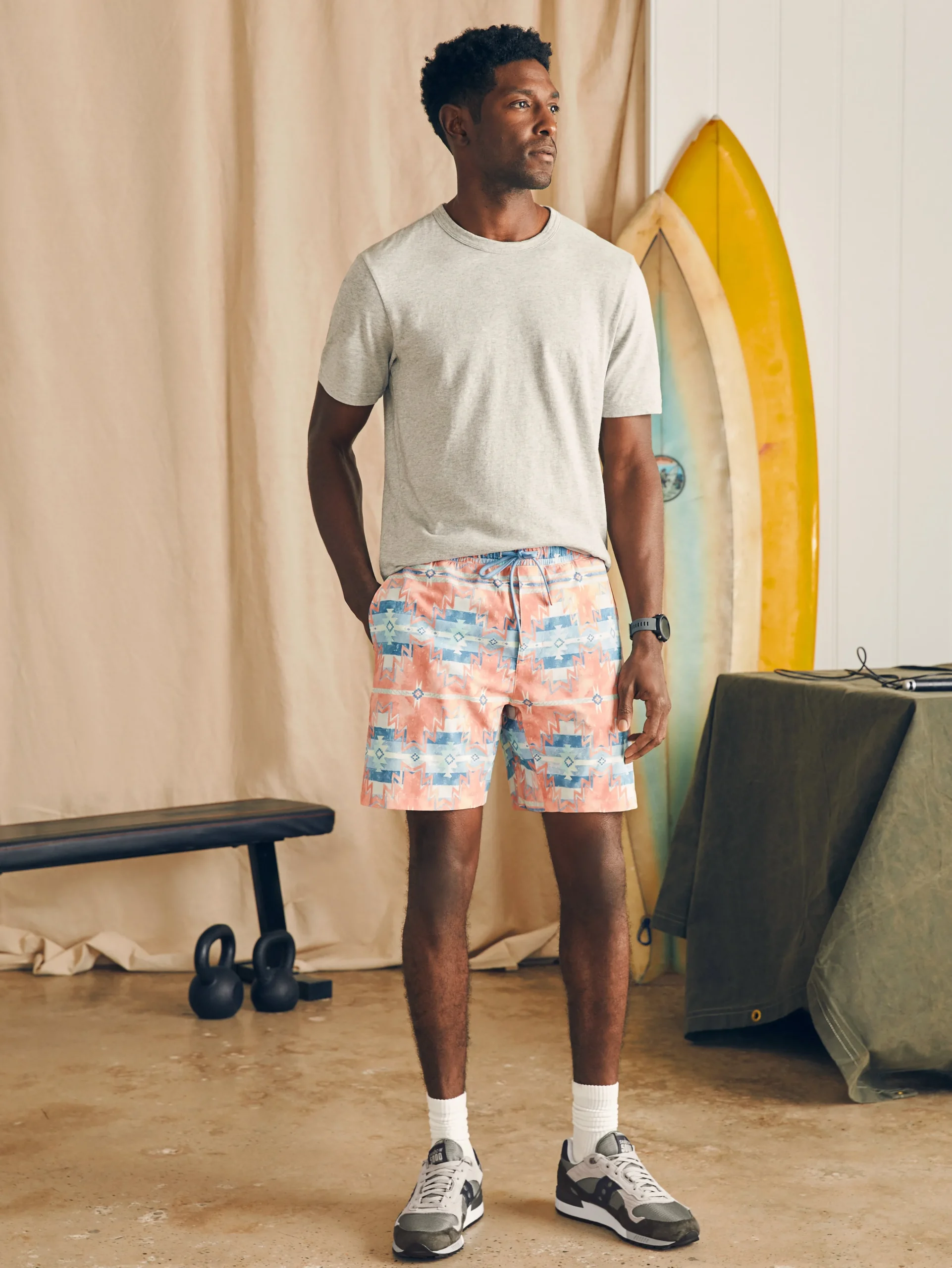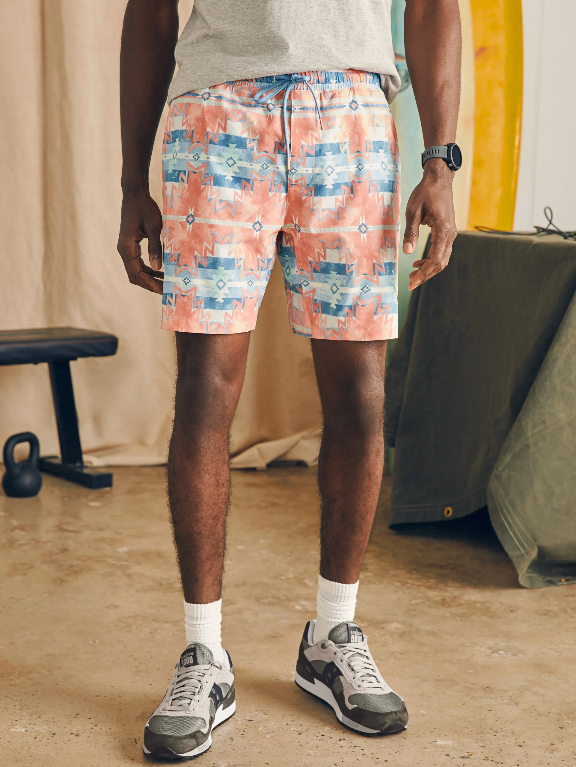 Native artist Doug Good Feather’s (Standing Rock Lakota and Dakota Nation) rugged motif embellishes our most technical short yet for those gym-to-beach days (and maybe even some lounging in between). Packed with utility, it’s got a breathable, compression liner for support during your most active moments and zippered accessory pockets to keep valuables close. The lightweight and quick-drying fabric has the perfect amount of stretch and offers UPF50+ so you can stay out and get after it. If you’re looking for a true activewear short with an iconic Faherty beach vibe, this is it.