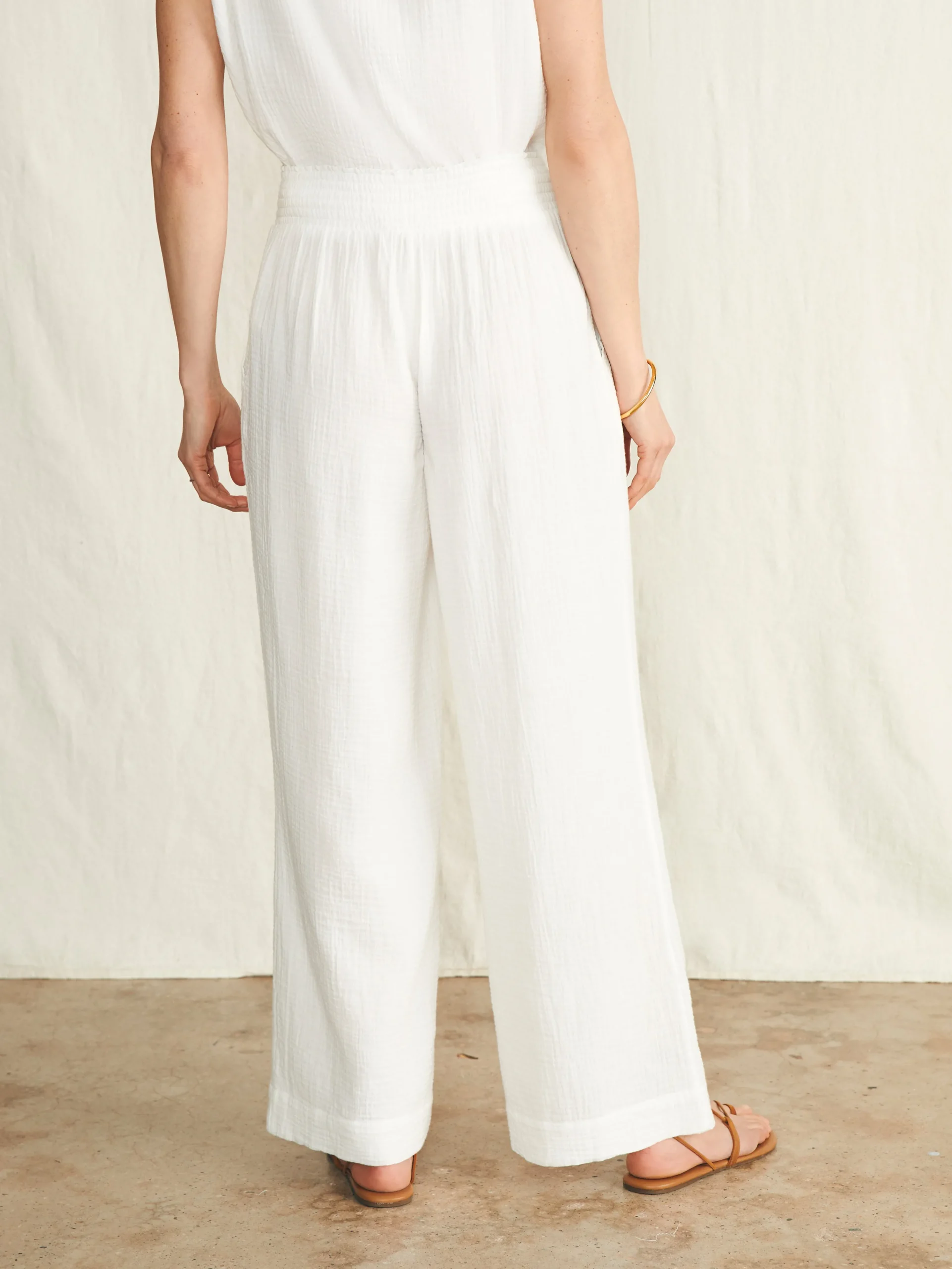 Crafted from our signature Dream Cotton — a breezy, airy organic double gauze fabric — these wide leg pants epitomize effortless style. Totally comfortable with a pull-on smocked waistband, they’re perfect for lounging yet dress up with ease.