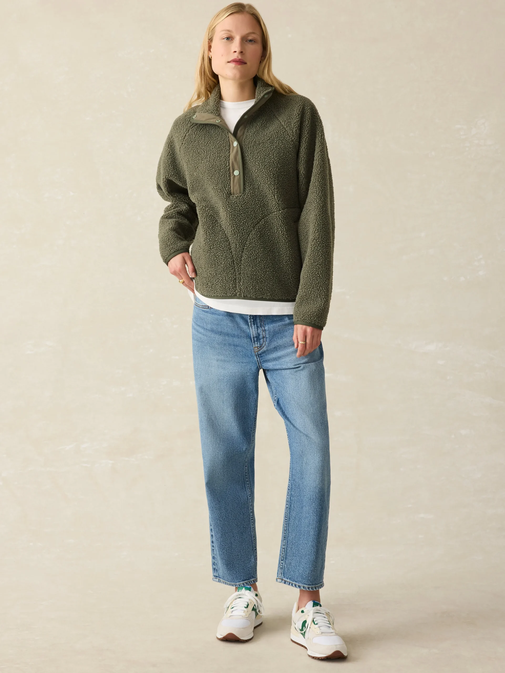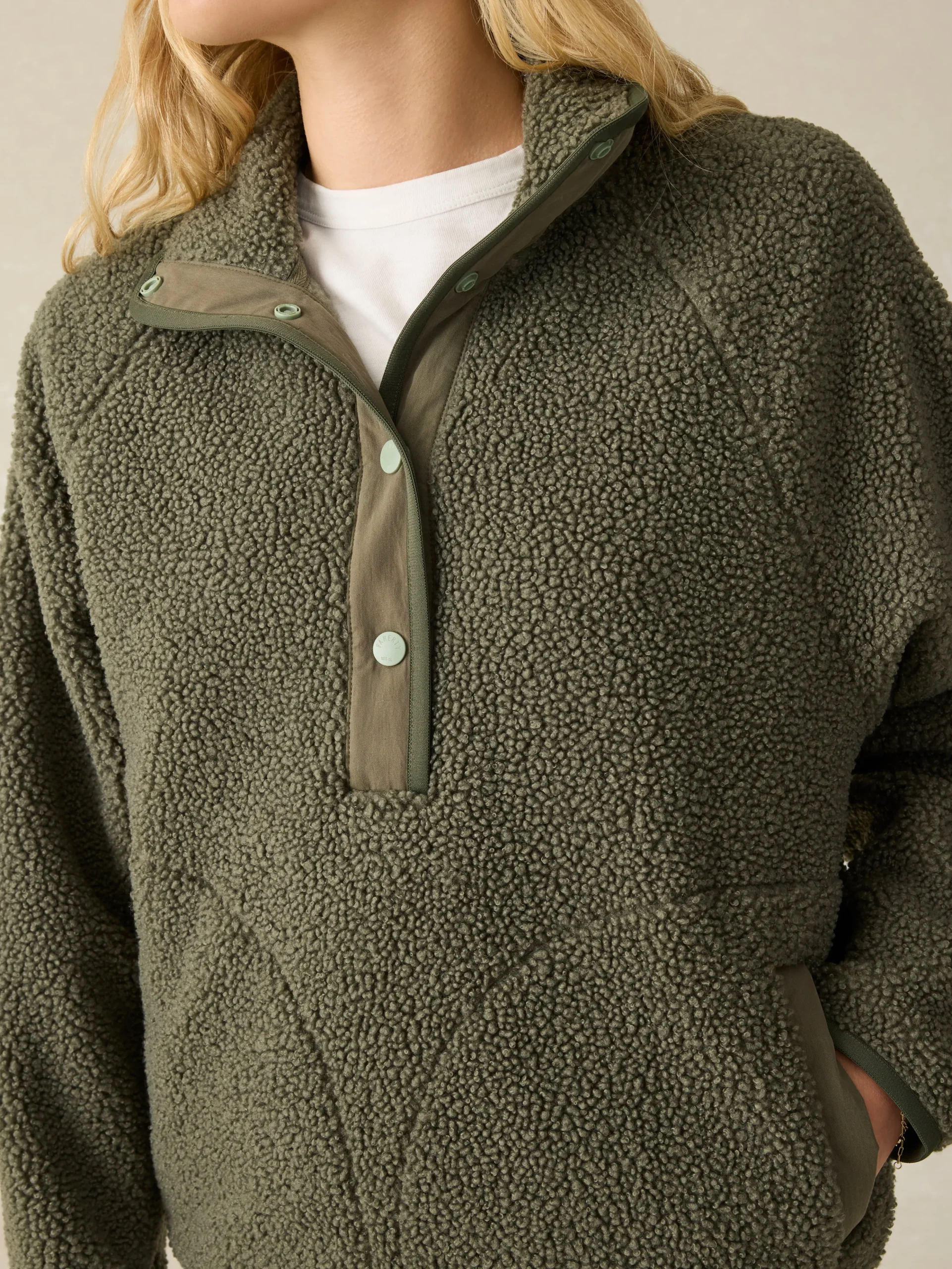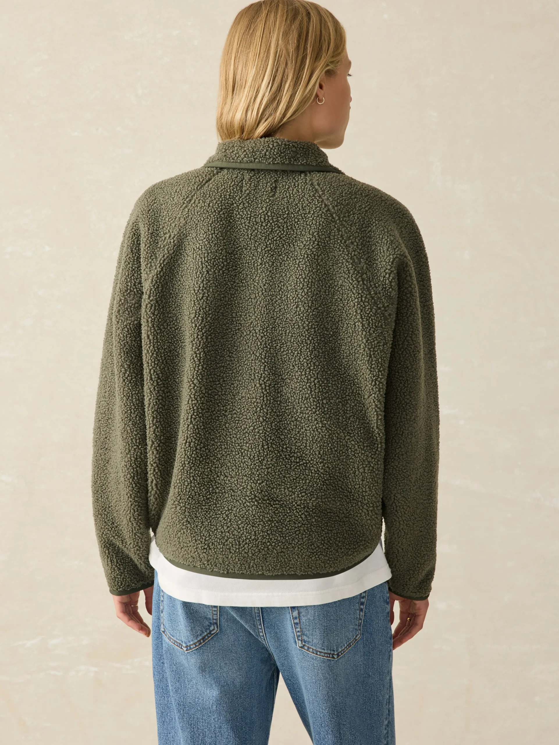 - Detail: Stand collar faced with fleece. Quarter-length snap placket. Pockets with interior snap closure. Elastic binding at sleeve opening and bottom hem. Clip label at hem.