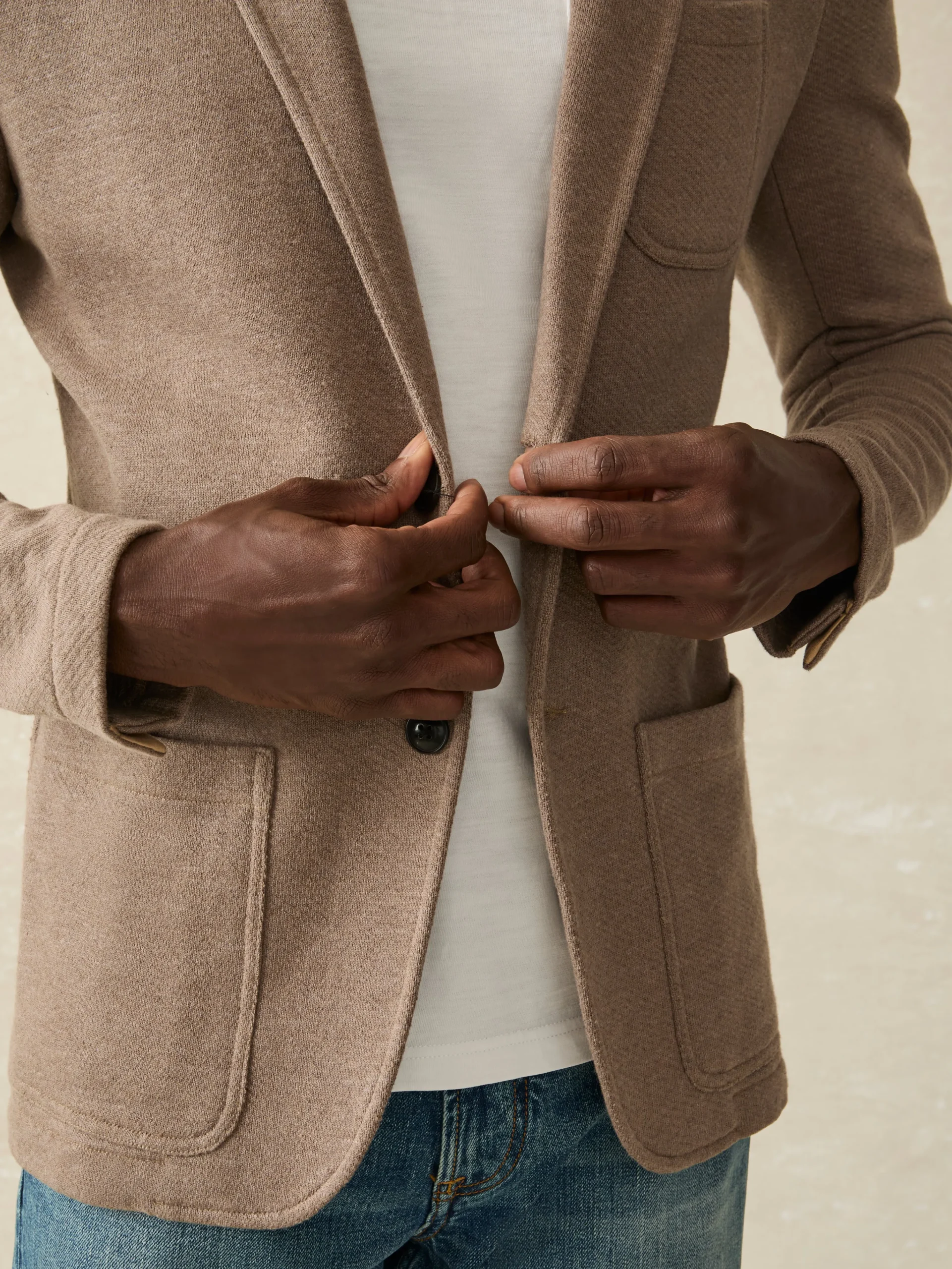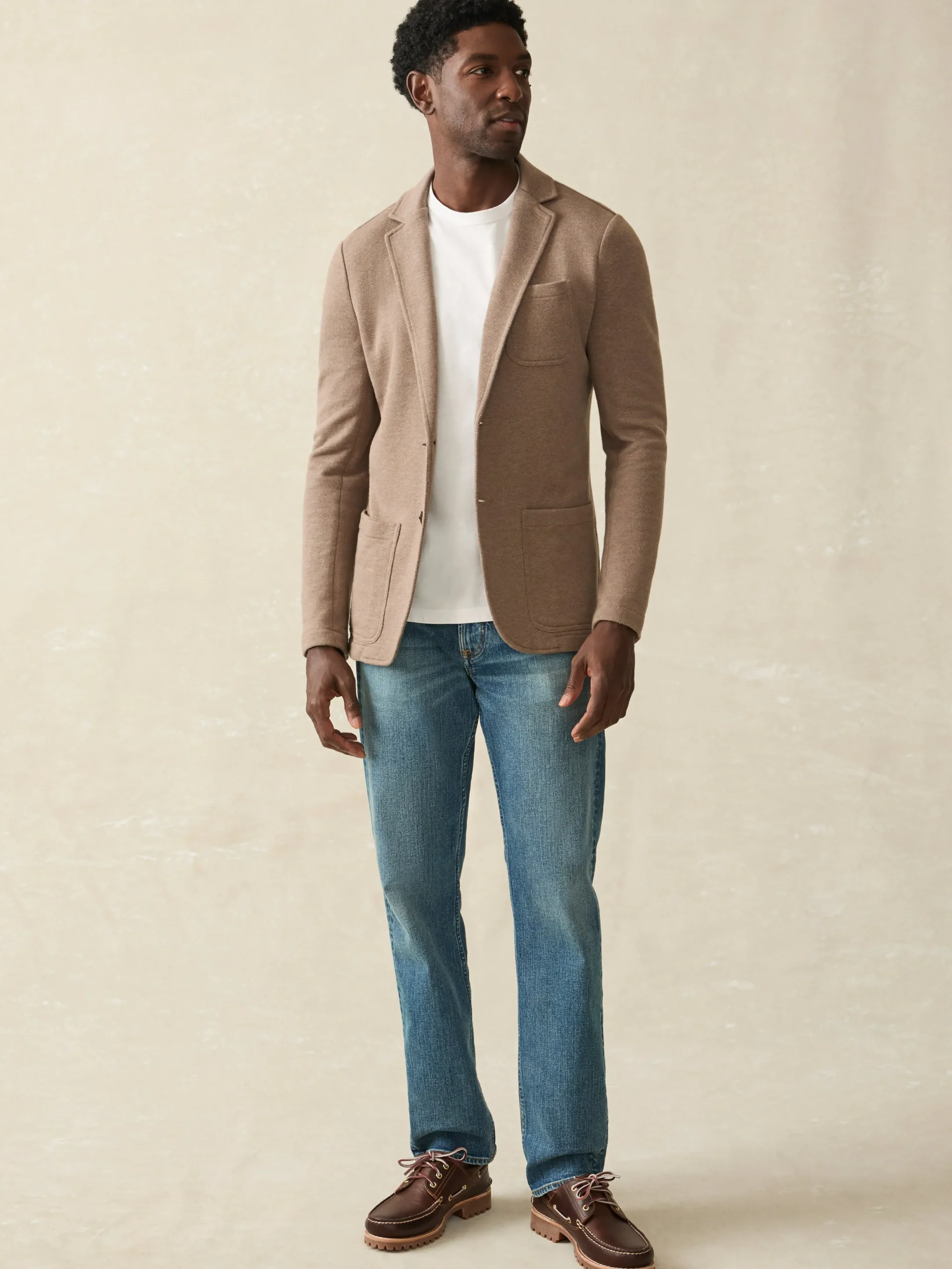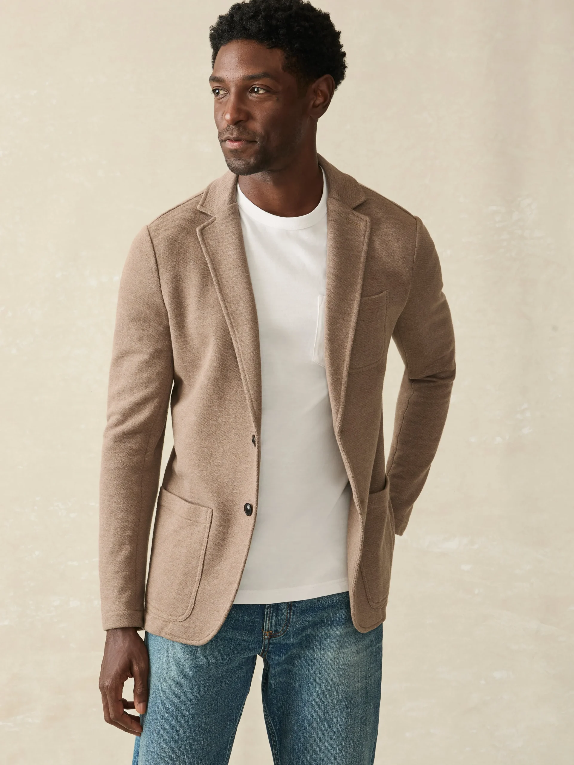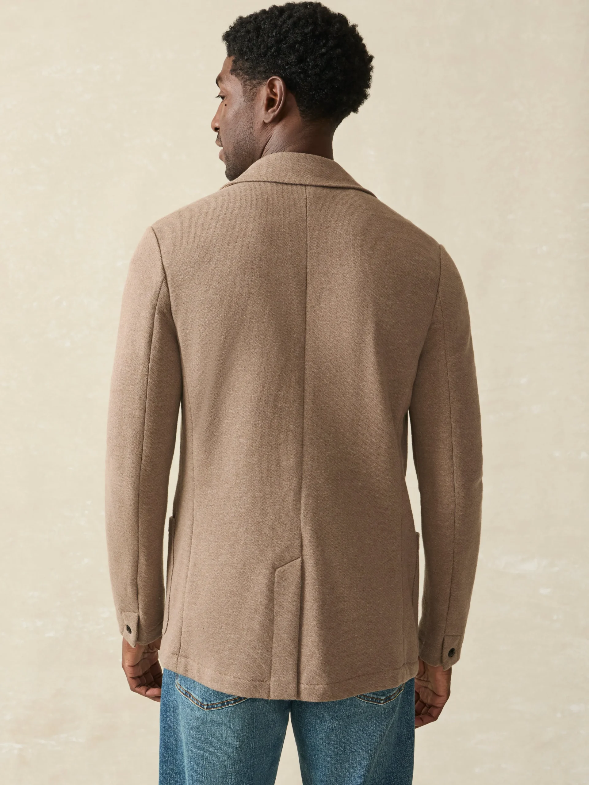Our definitive sport coat leads with big-time comfort but is finished with top-shelf craftsmanship. The ultimate travel companion, it’s easy to care for, making it the perfect piece to throw into your carry-on or wear right off the plane and into the boardroom. Elevated yet unstructured, the signature loopback knit fabric is ridiculously soft, and stretchy, while still retaining its shape. Meet the blazer especially made for guys who don’t wear blazers.