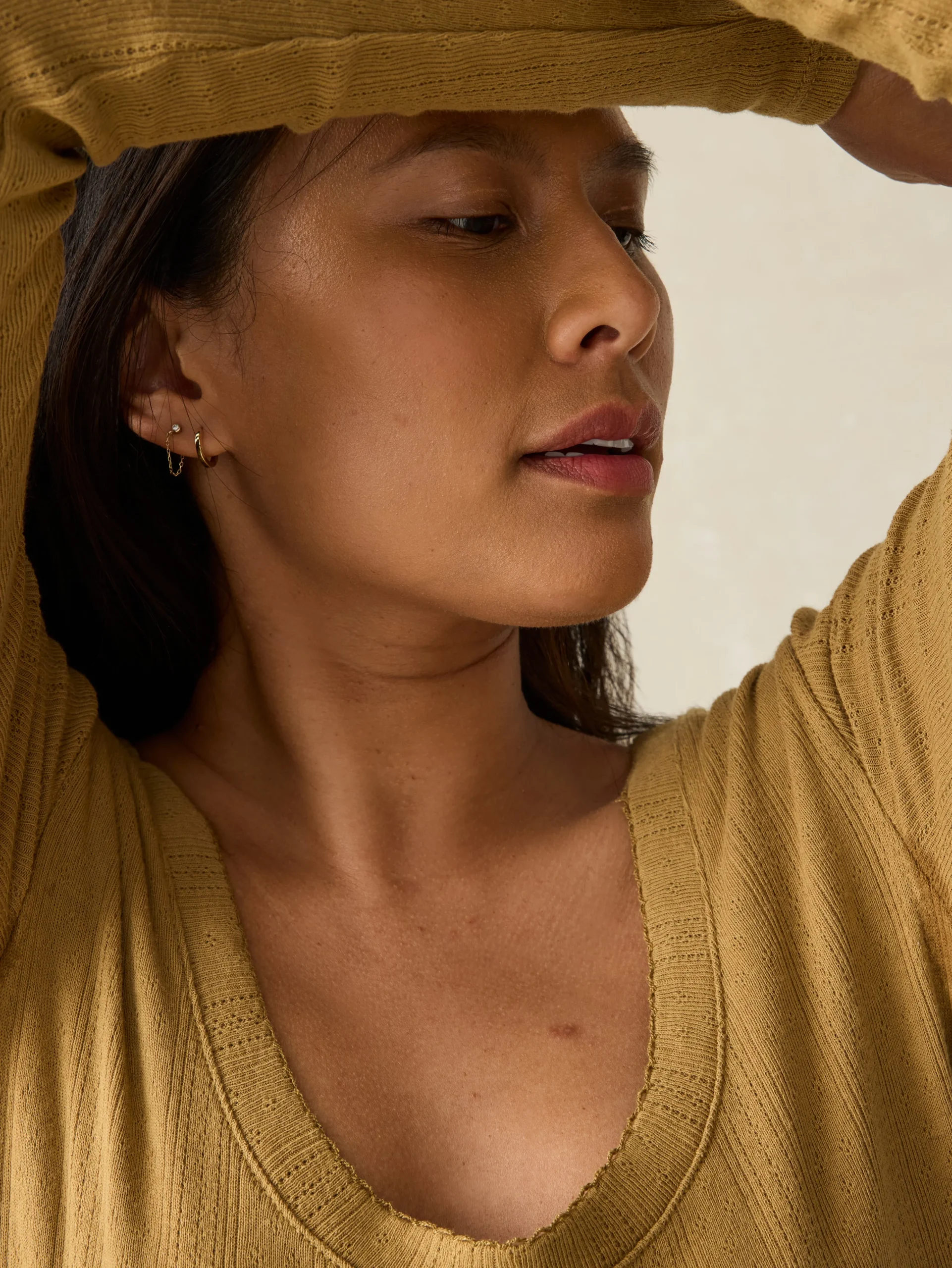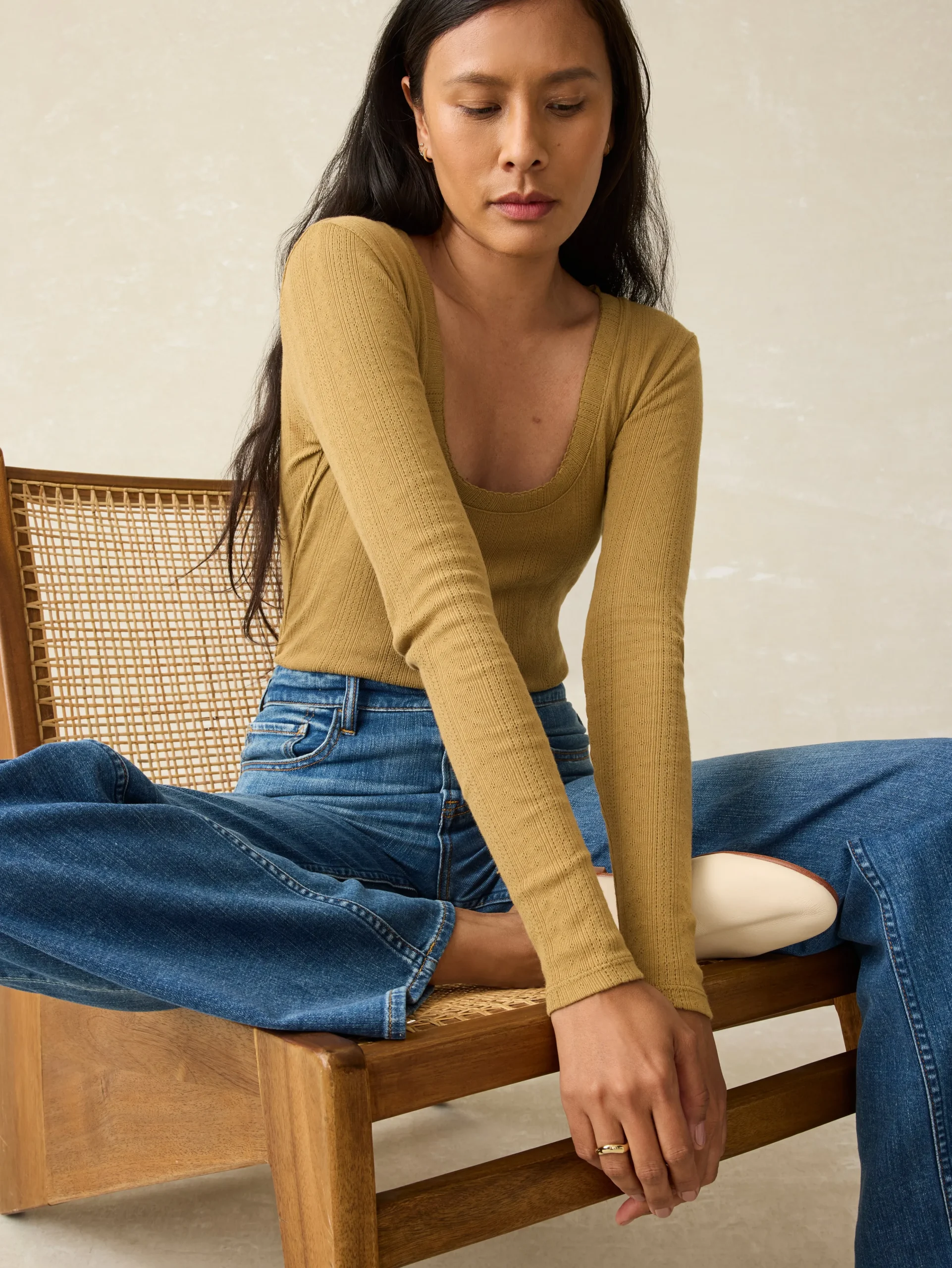 Made with a subtle, textural pointelle stitch, this long sleeve tee has the look of pretty, vintage camisole that’s a breeze to wear. Soft, airy, and delicate, it lends a bit of romance to your everyday look.