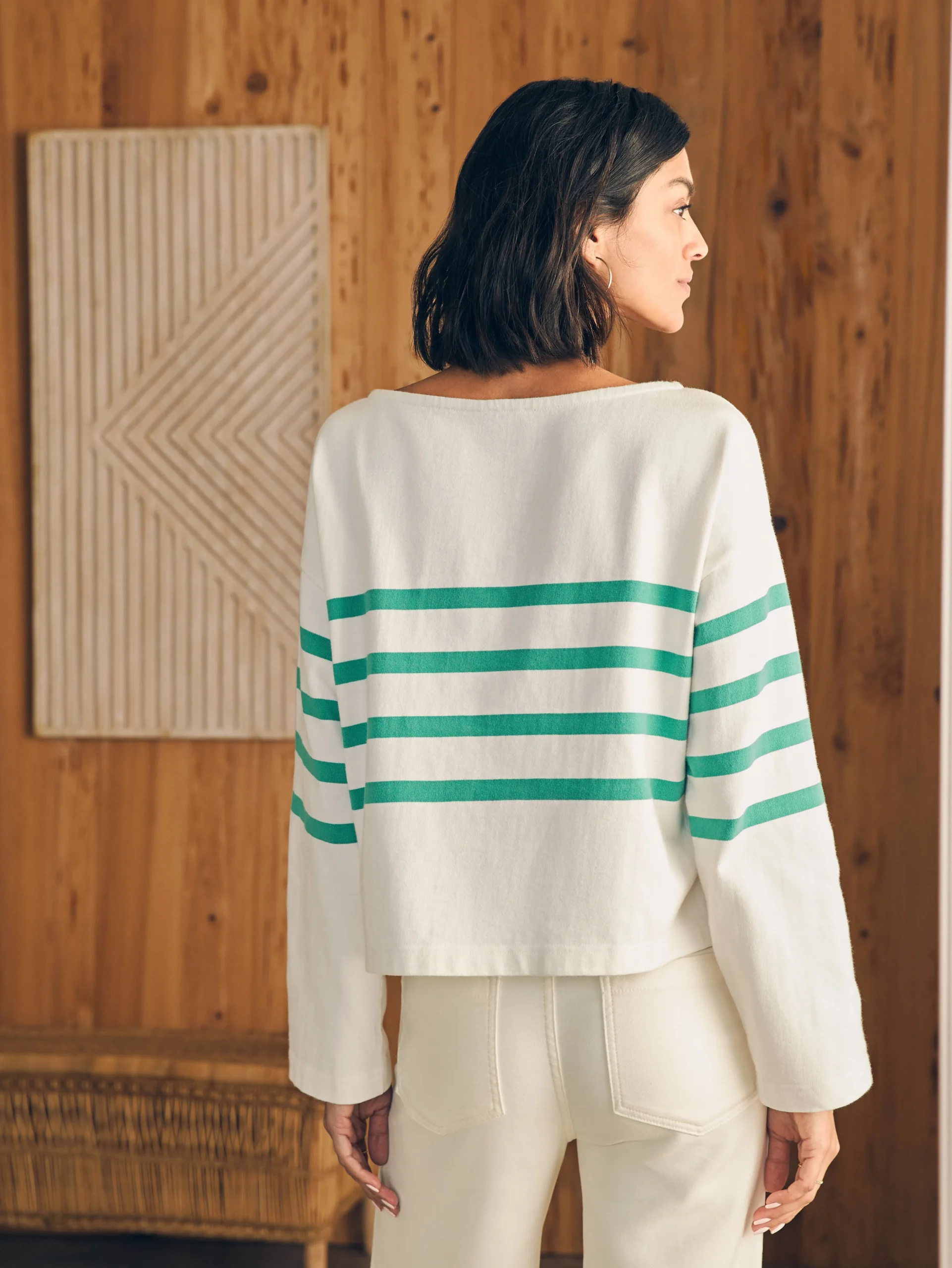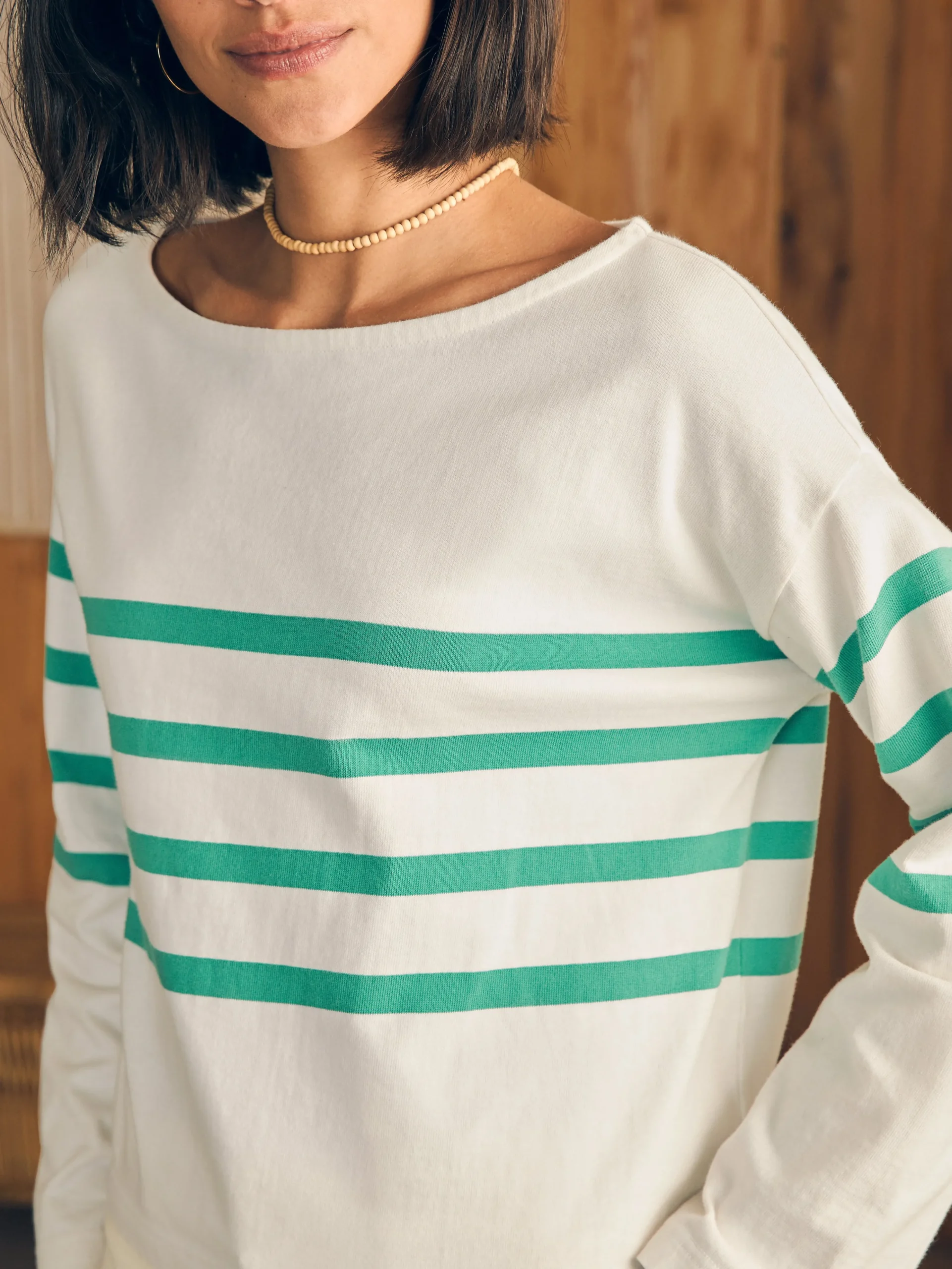 Equal parts preppy and playful, this long sleeve boatneck tee is a classic for a reason. Contrast stripes keep it crisp and clean and our super soft cotton makes it suited for all day wear – from morning walks on the dock to dining alfresco with the family.