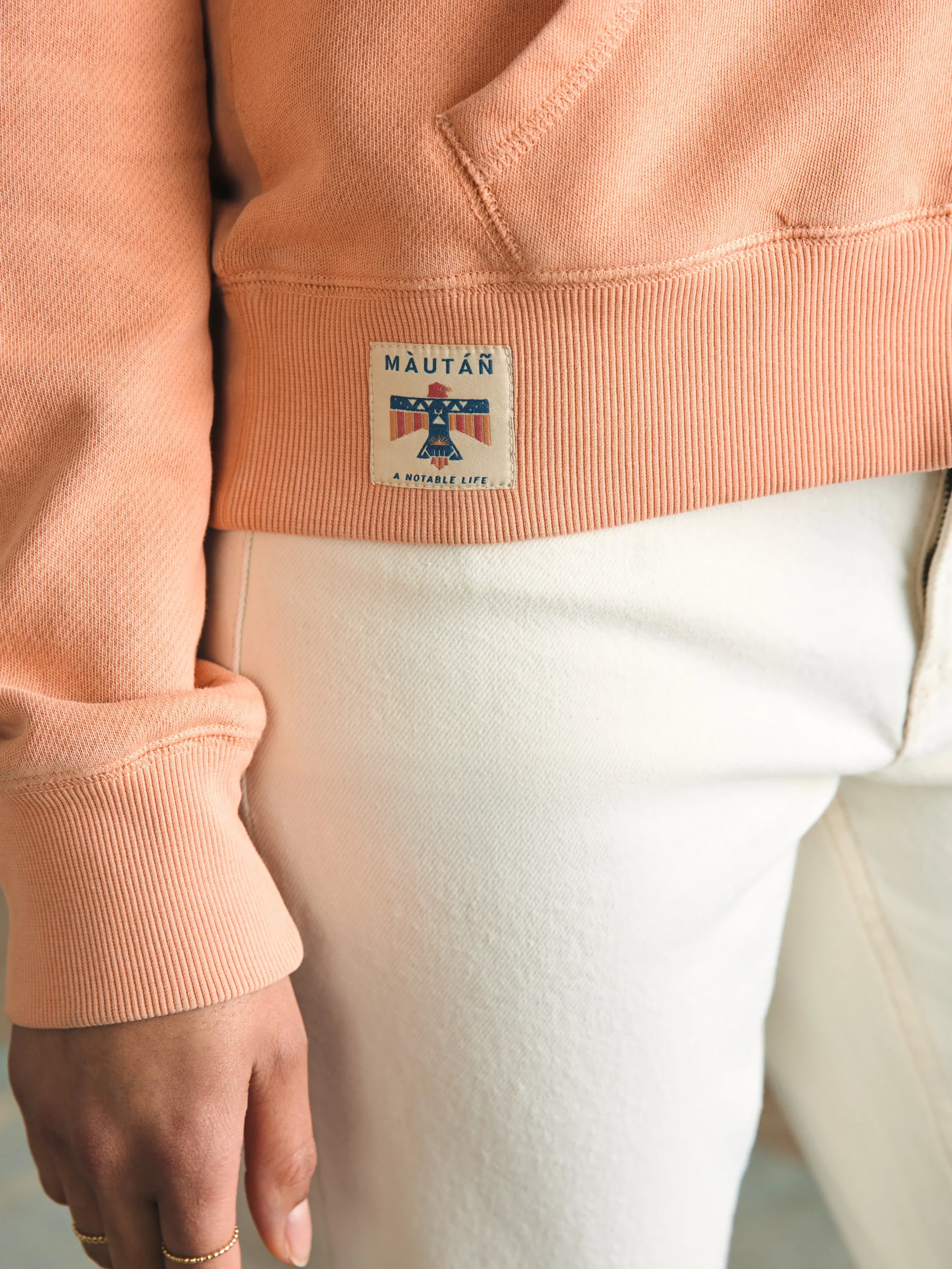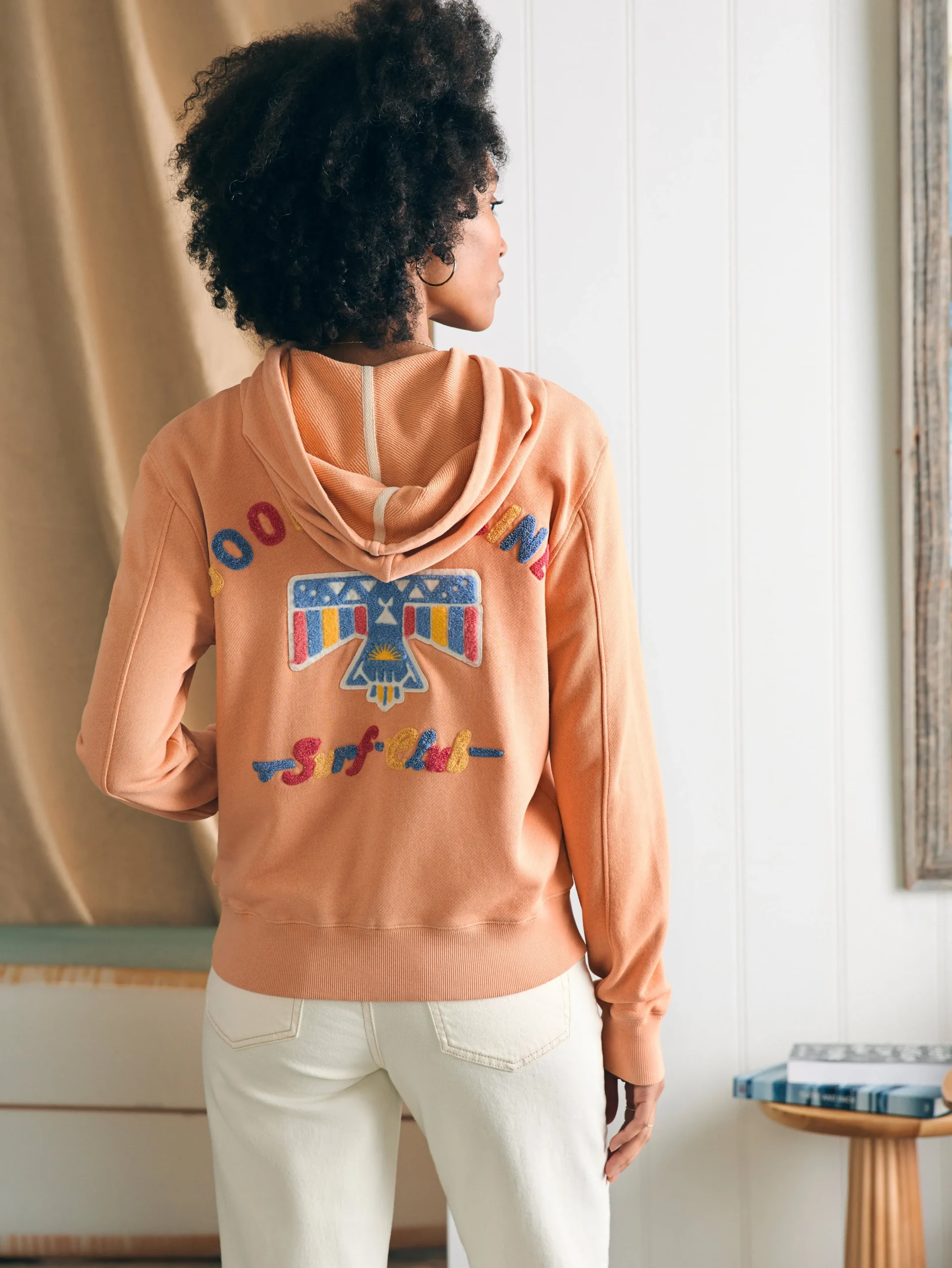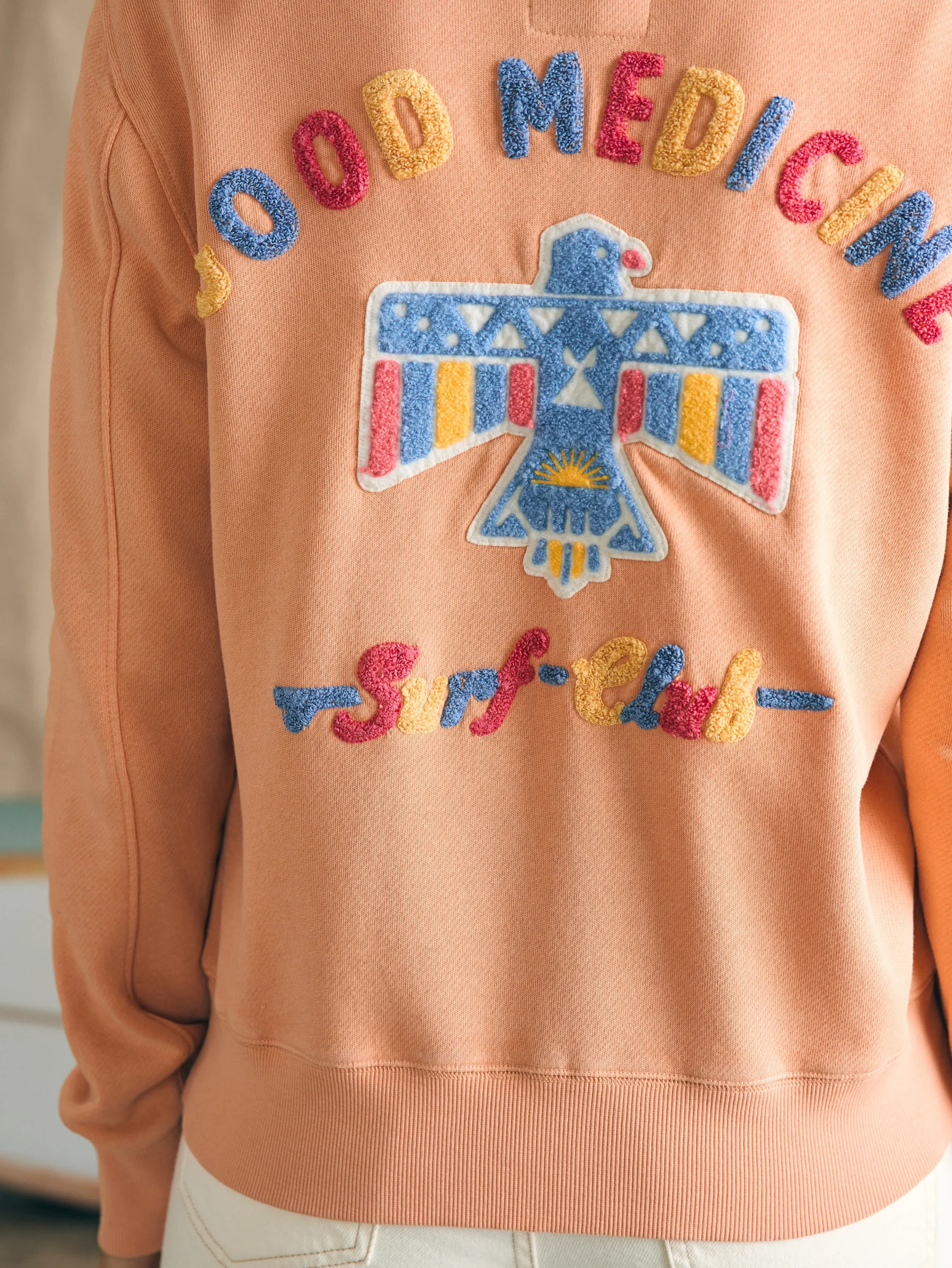 “When something is Good Medicine, it’s good and it’s beautiful.” Native artist, Steven Paul Judd’s (Kiowa-Choctaw) super soft 100% organic cotton zip-up hoodie is all that and more. With a cinchable hood and kangaroo pockets, this is a foundational layer for everything from lounging to getting out and about in comfort and style.
