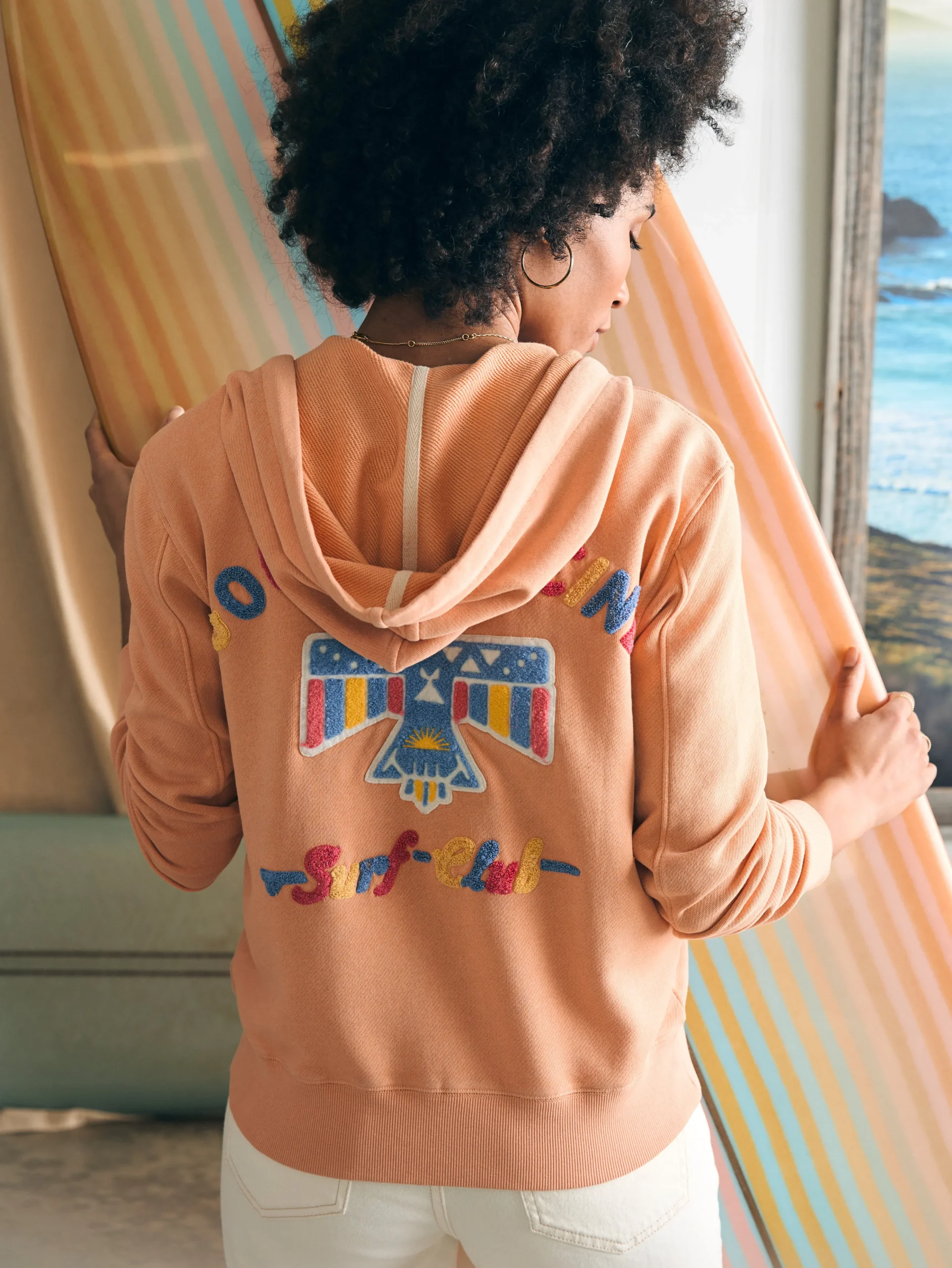 - Detail: Native designed. Zip-up style. Hood with drawcord. Kangaroo pocket. Chest patch. Hem label. Back patch and embroidery.