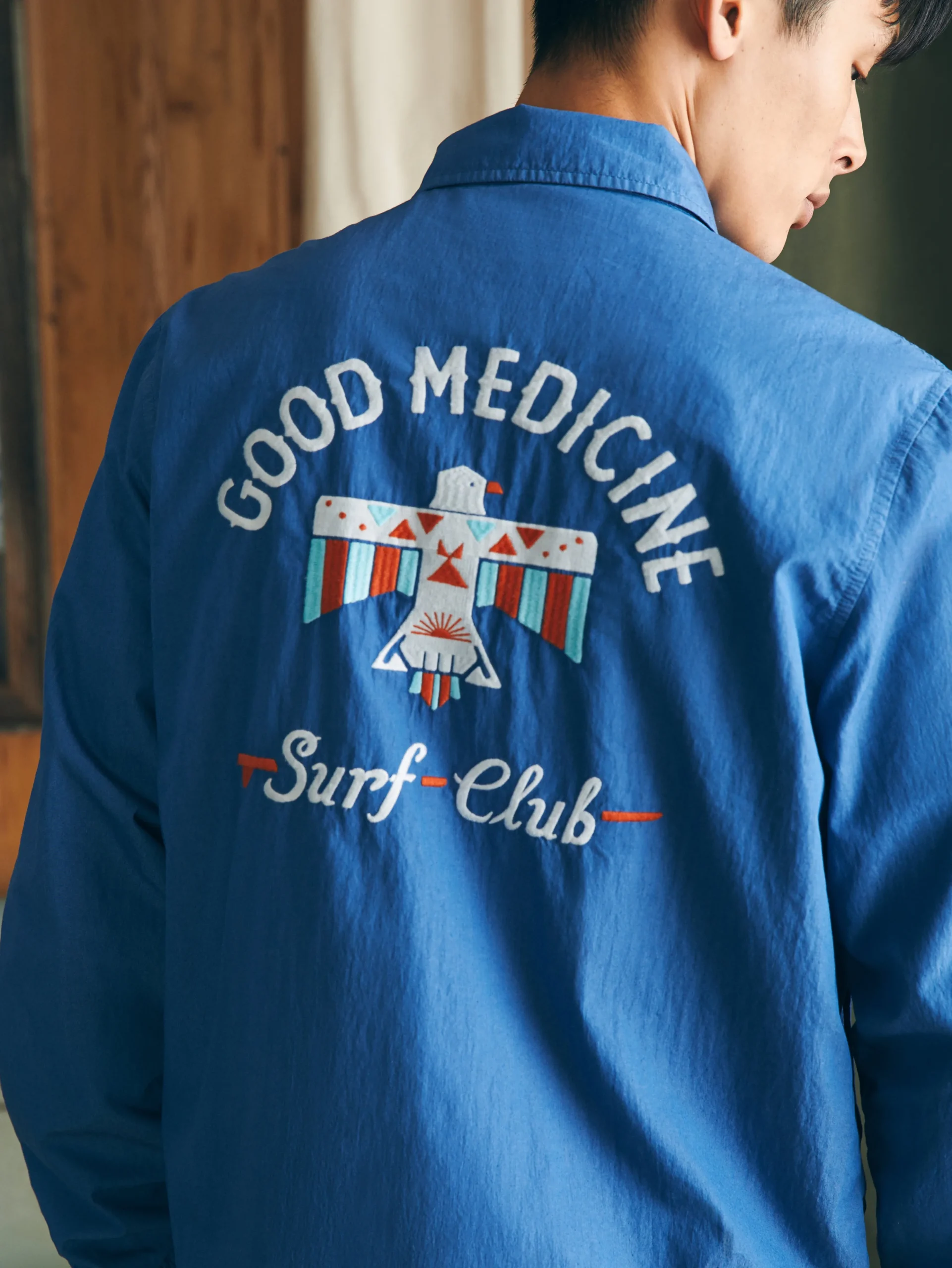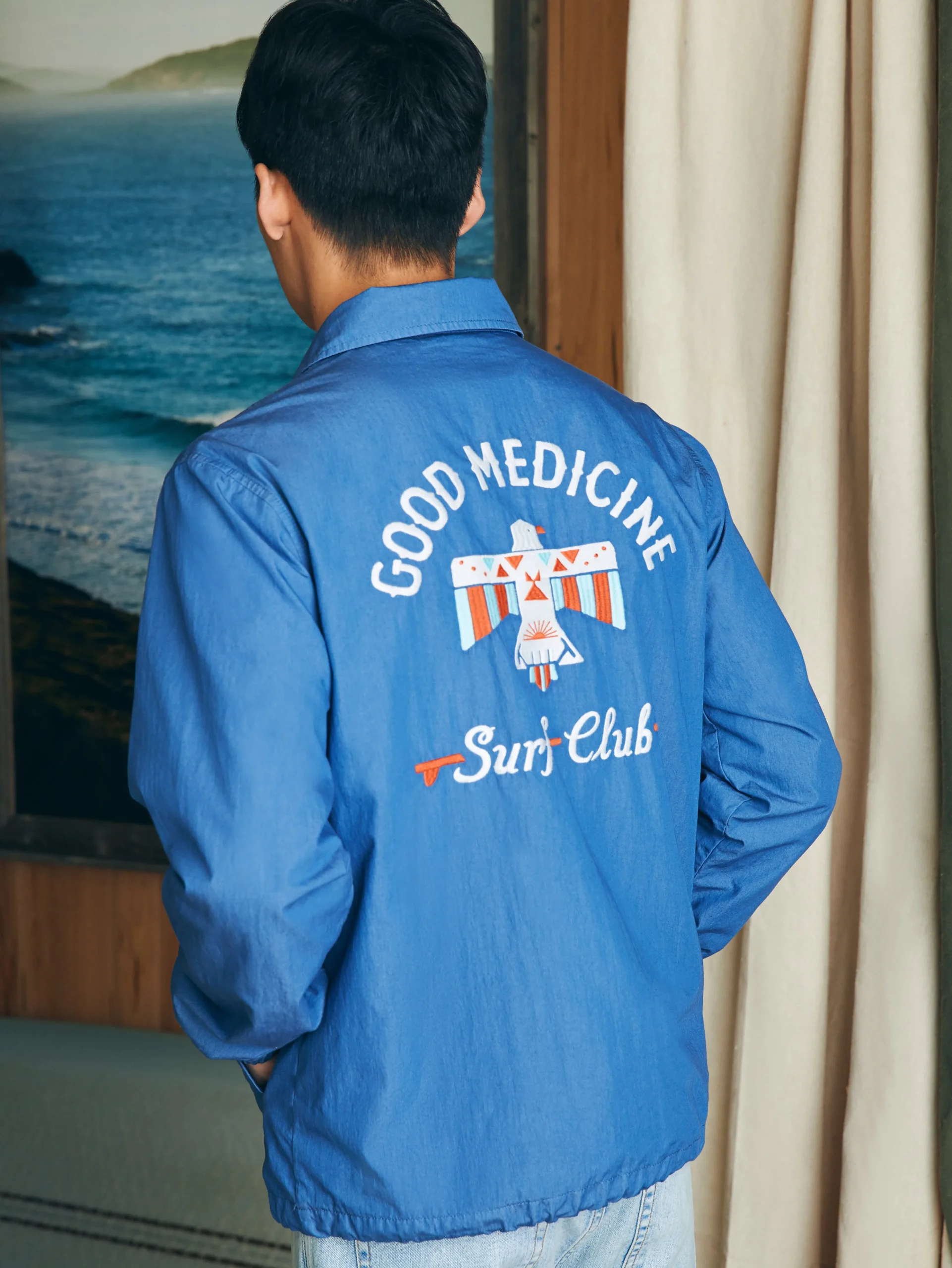“When something is Good Medicine, it’s good and it’s beautiful.” Our Sunwashed Coaches Jacket is all that and more. Designed in collaboration with Native artist, Steven Paul Judd (Kiowa-Choctaw), this jacket with its clean lines is one of our faves for spring temps. Athletic-inspired ribbing at the hem and cuffs keep the wind out and protect from the elements.