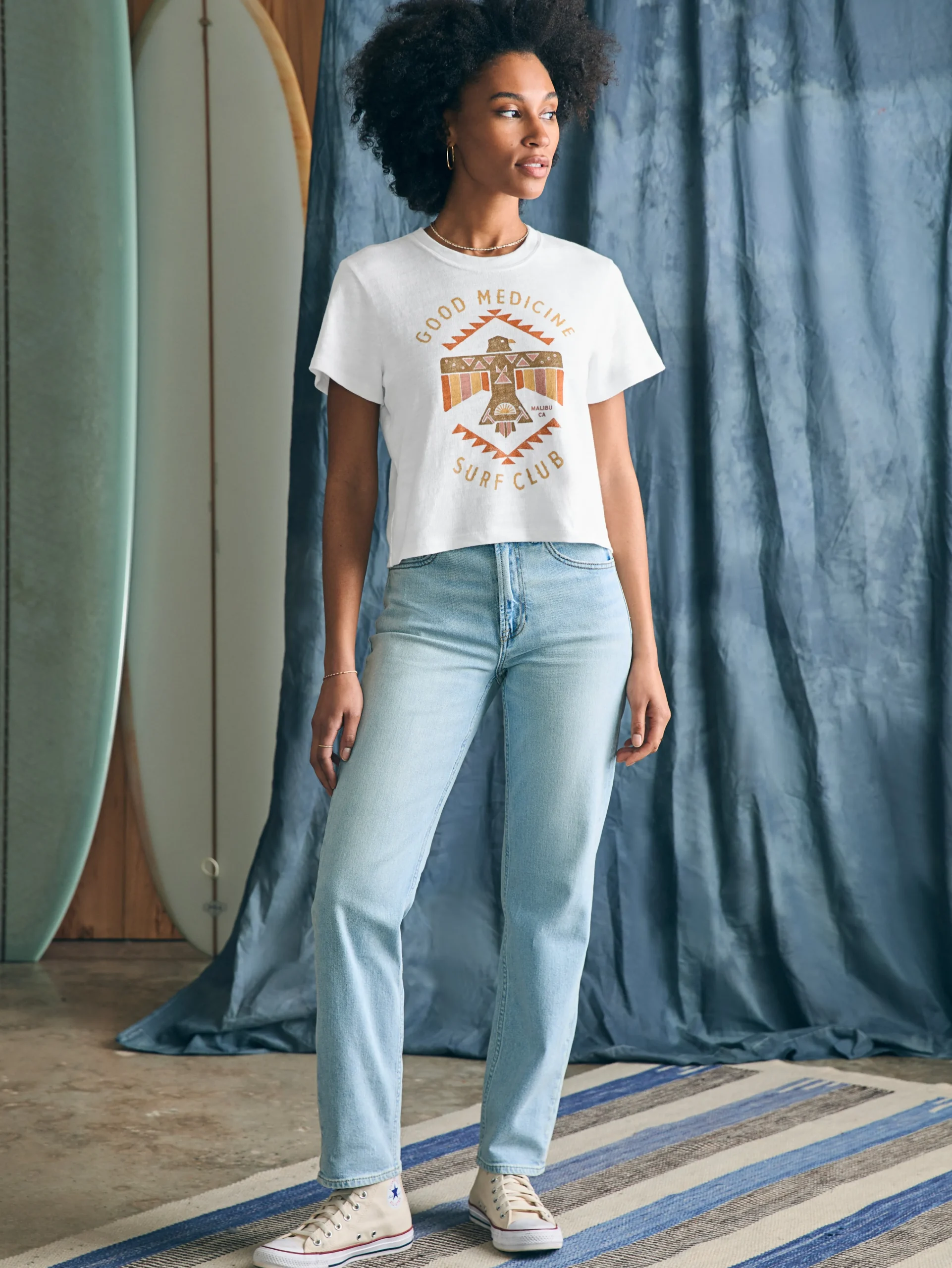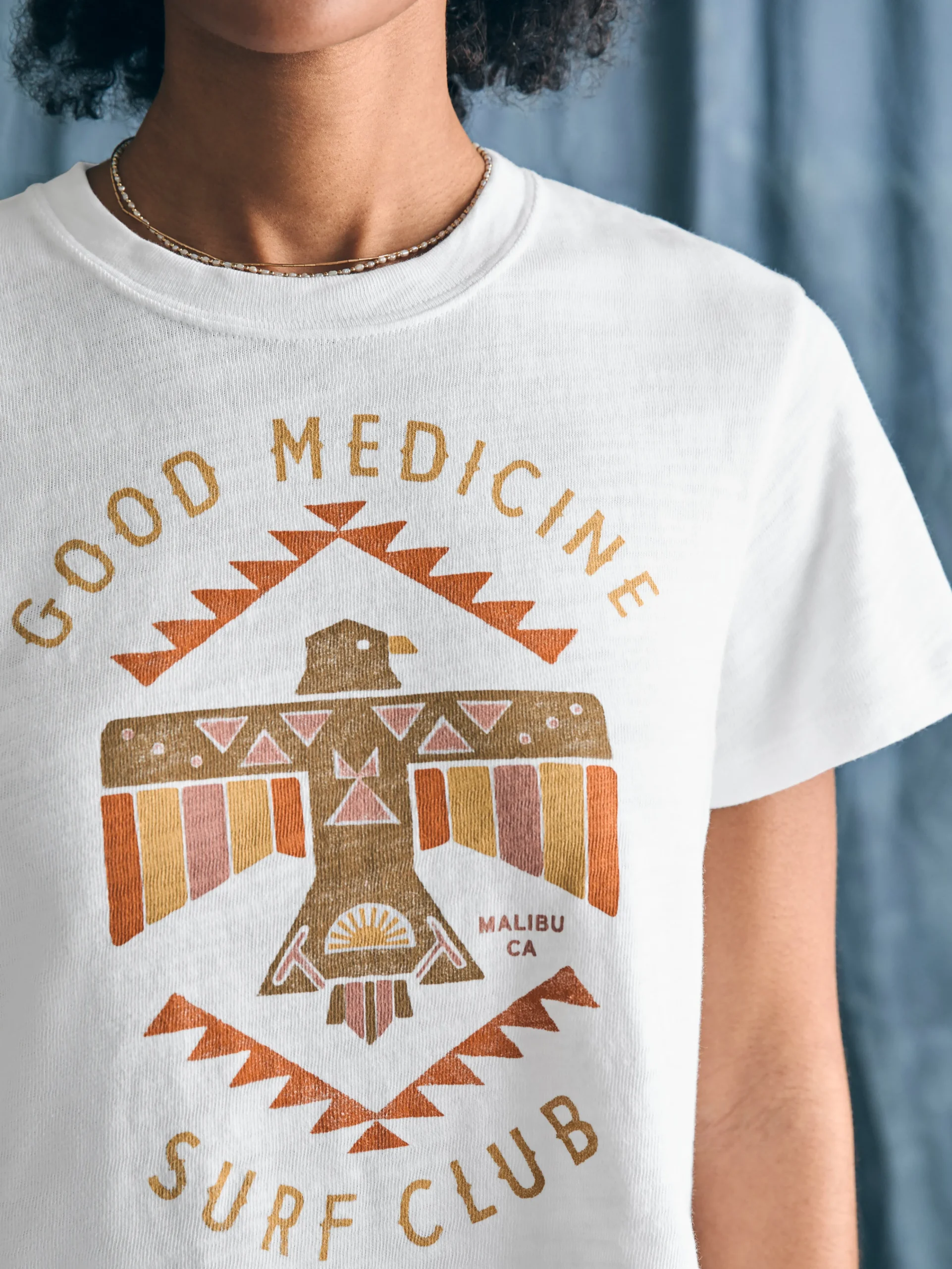 “When something is Good Medicine, it’s good and it’s beautiful.” Native artist, Steven Paul Judd’s (Kiowa-Choctaw) graphic printed tee on 100% organic cotton is all that and more. Soft, with a classic, relaxed fit, it will take a top spot in your t-shirt collection.