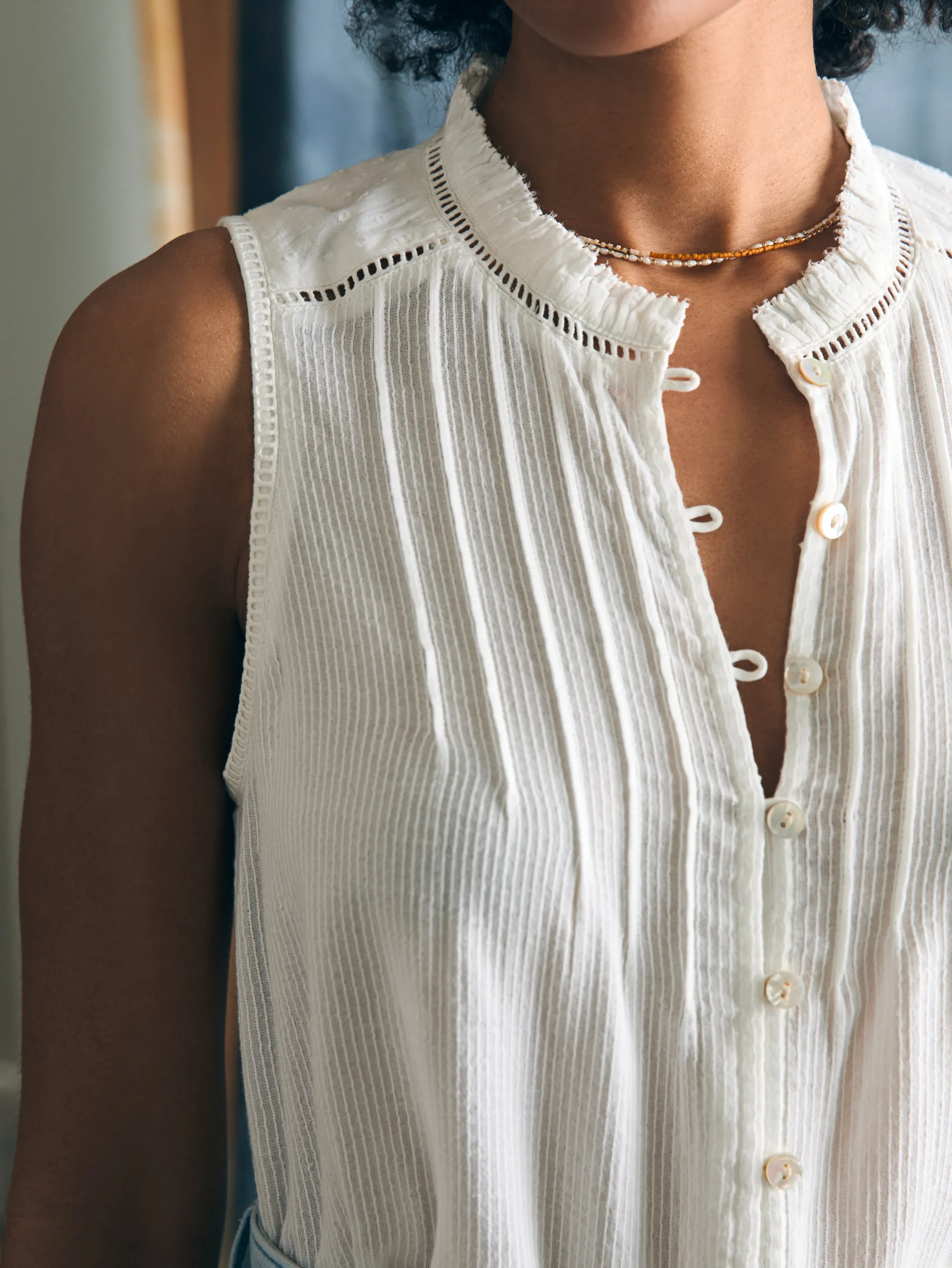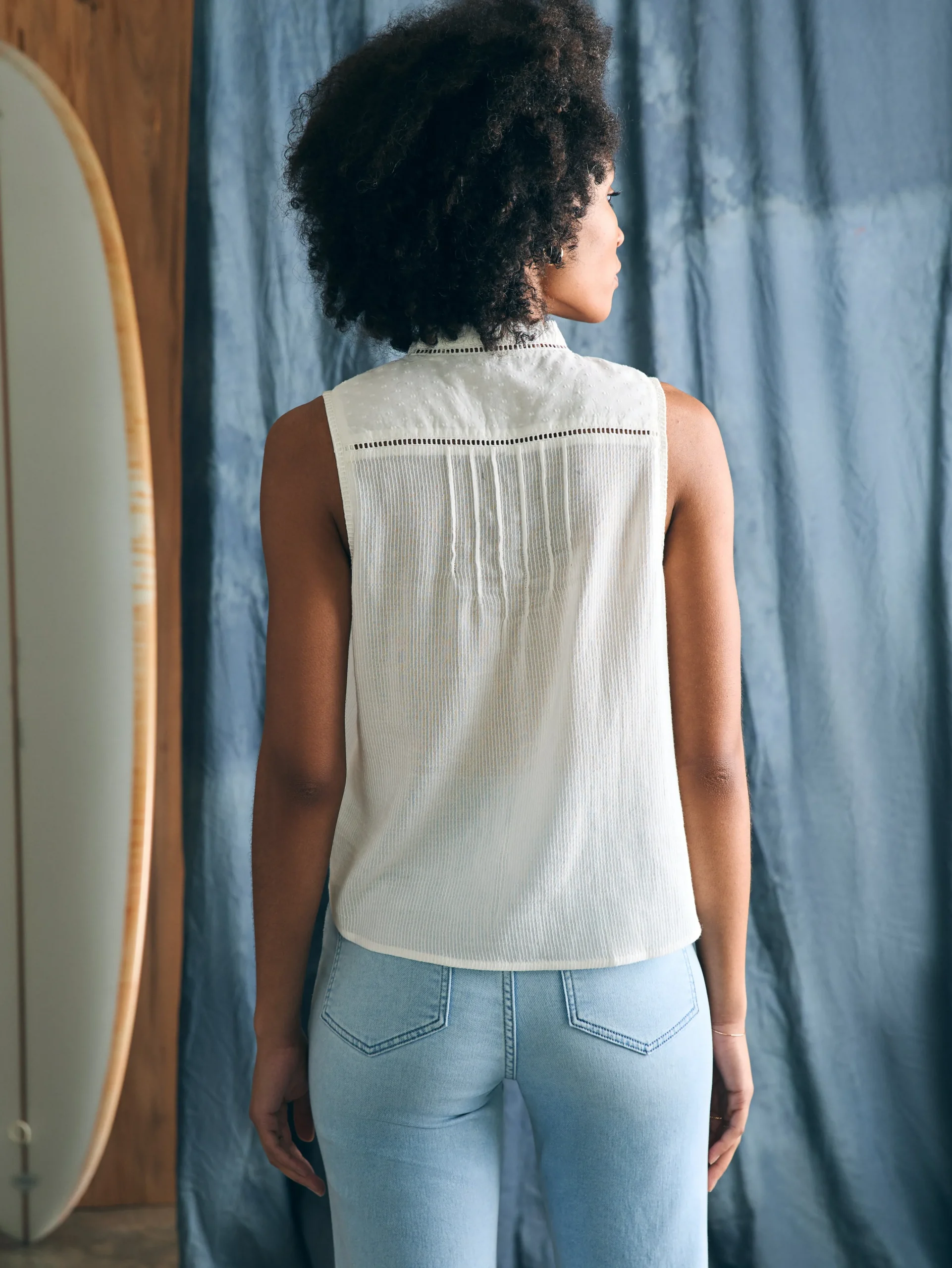We made our bestselling peasant-style blouse, the Willa, into the perfect summer blouse. This sleeveless style still has everything you love about its longer sleeve version. Crafted in soft, organic cotton that has a textural feel, it exudes bohemian vibes with embroidered detailing and blouson sleeves that heighten the romance.