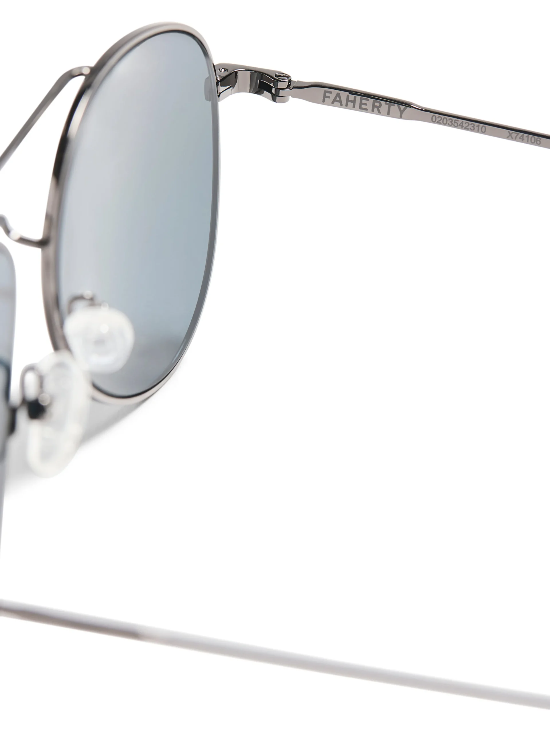 - Detail: Classic Aviator shape; Signature Faherty sun logo wearer’s left temple; Tag line “Sun & waves” printed internal temple tip; polarized lenses