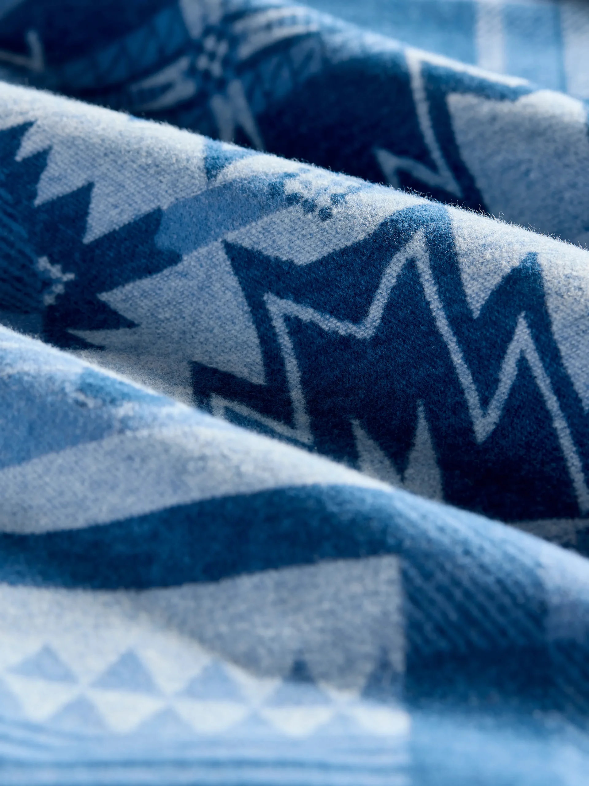 Custom-woven on looms using long-staple cotton yarns, our jacquard Adirondack Blanket is brushed for an especially soft, time-worn feel. Rugged and comfortable, it’s ideal for everything from chilly bonfire evenings to cozy nights on the couch. This exceptional design was created by Doug Good Feather. An artist, veteran, author, and teacher, Doug is from the Standing Rock Lakota and Dakota Nation and is the founder of the Lakota Way Healing Center. Our ongoing partnership has enabled the Center to purchase 100+ acres of land and expand its ability to offer Indigenous spiritual practices to anyone in need of healing.