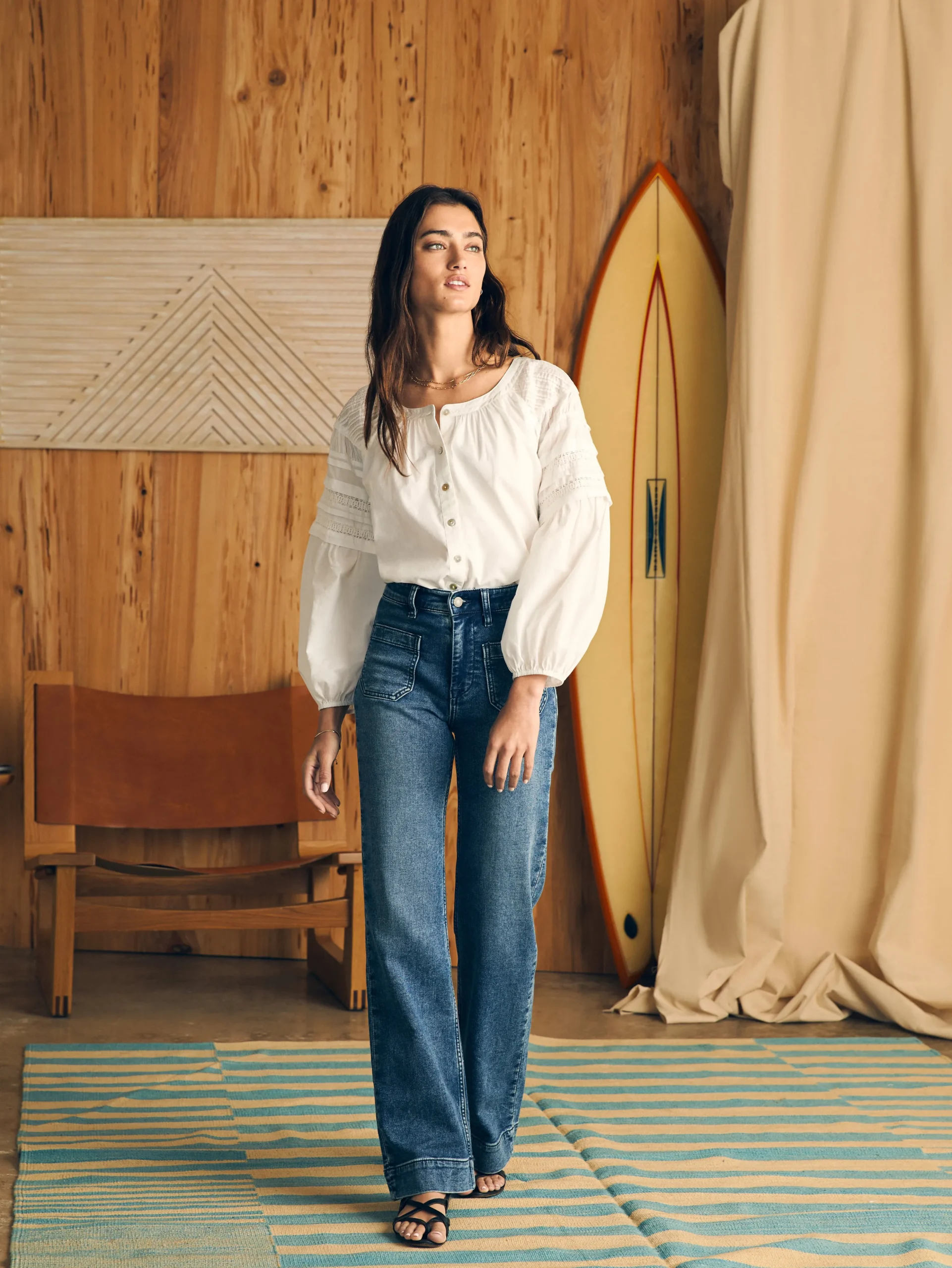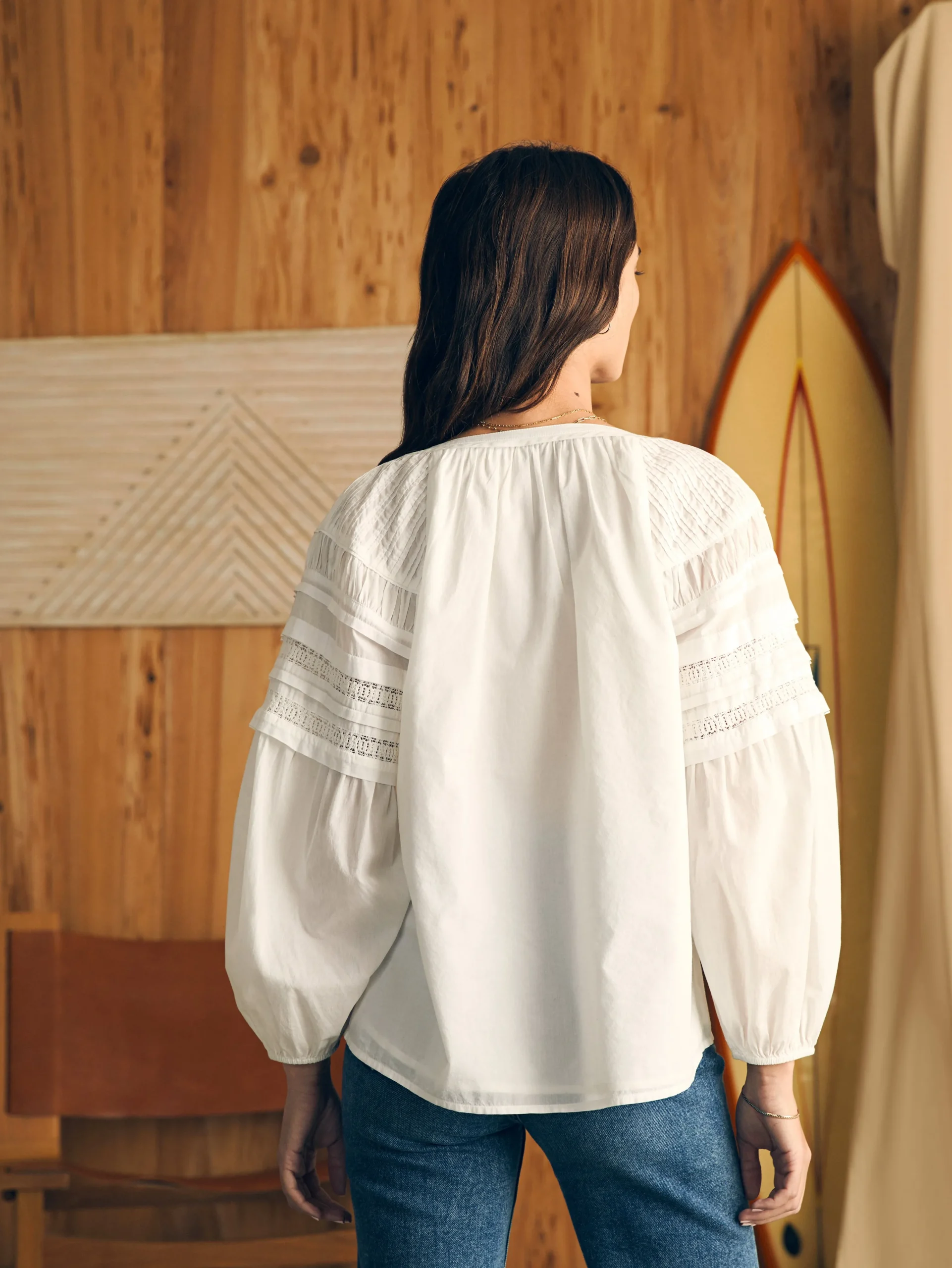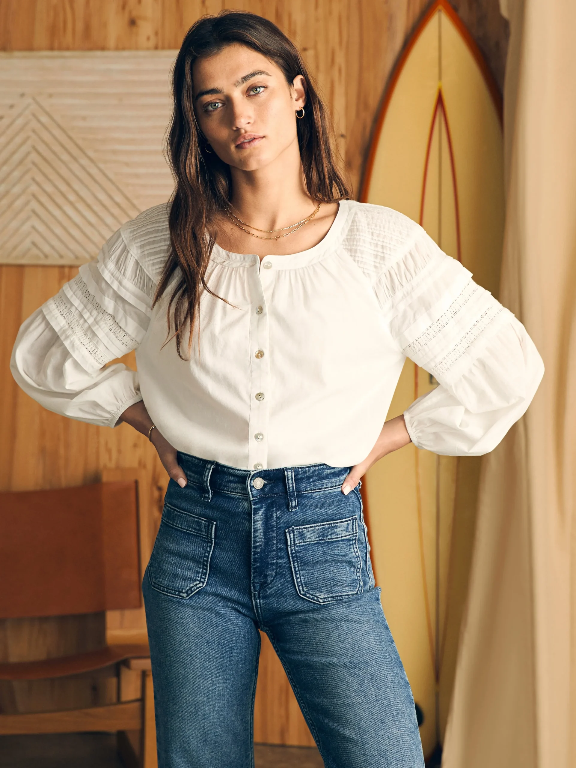 The Enna is made for dreamy mornings, for strolls down the street, for sunny afternoons in the park — for the best days, really. The soft organic cotton sets the stage for intricate details: pintuck shirring, lace details, billowy sleeves, and delicate shell buttons. The beautifully draped fit hits at the top of the hip, for a look that’s all effortless charm.