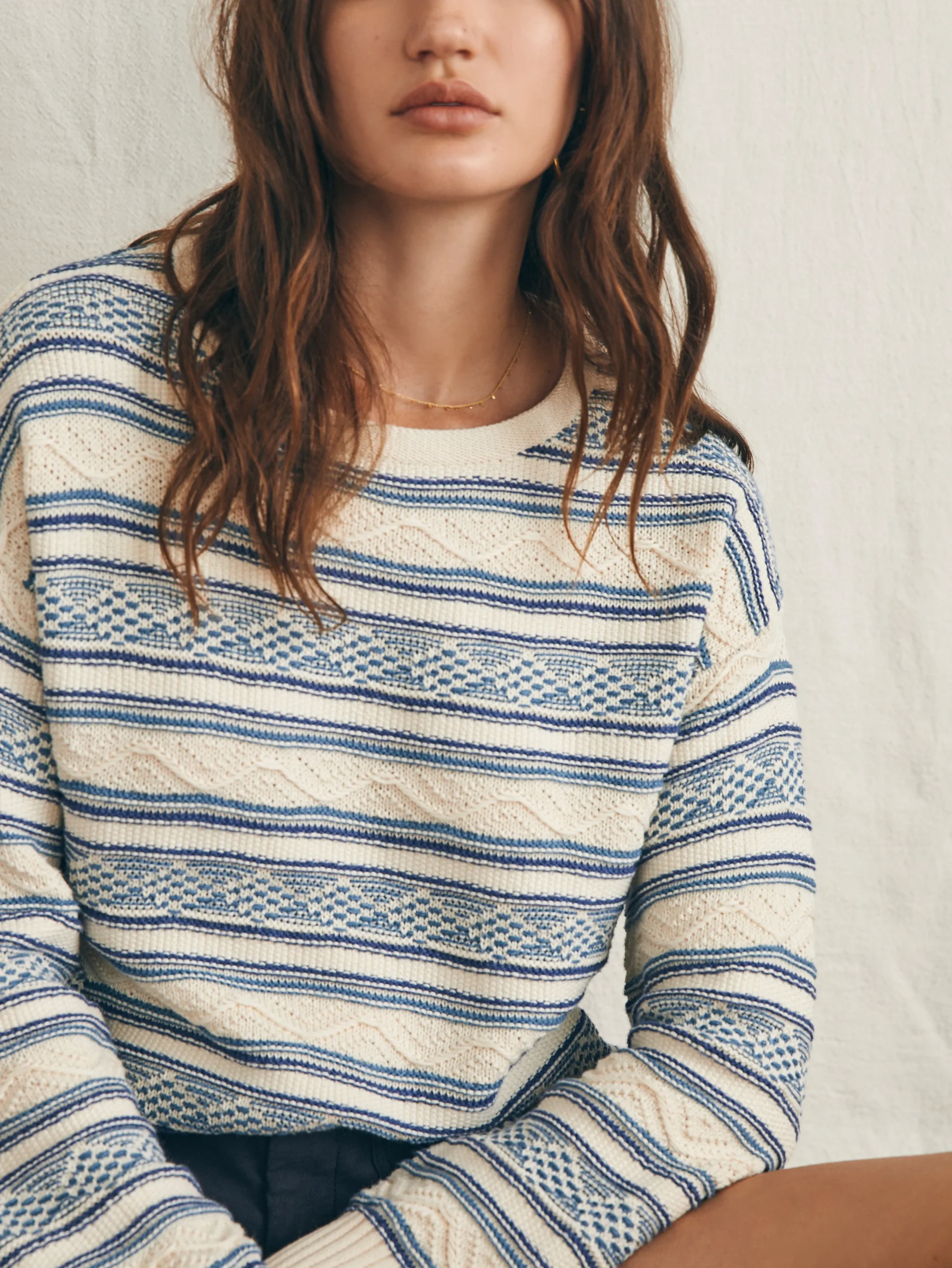 Just because the temps are higher doesn’t mean you stop craving something cozy. Knit in a soft and airy textured yarn that’s lightweight and breathable, this is the perfect layer to bring out at dusk. Enhanced with pieced stripes inspired by vintage surf gear, this is a year round staple that keeps getting better with every wear.