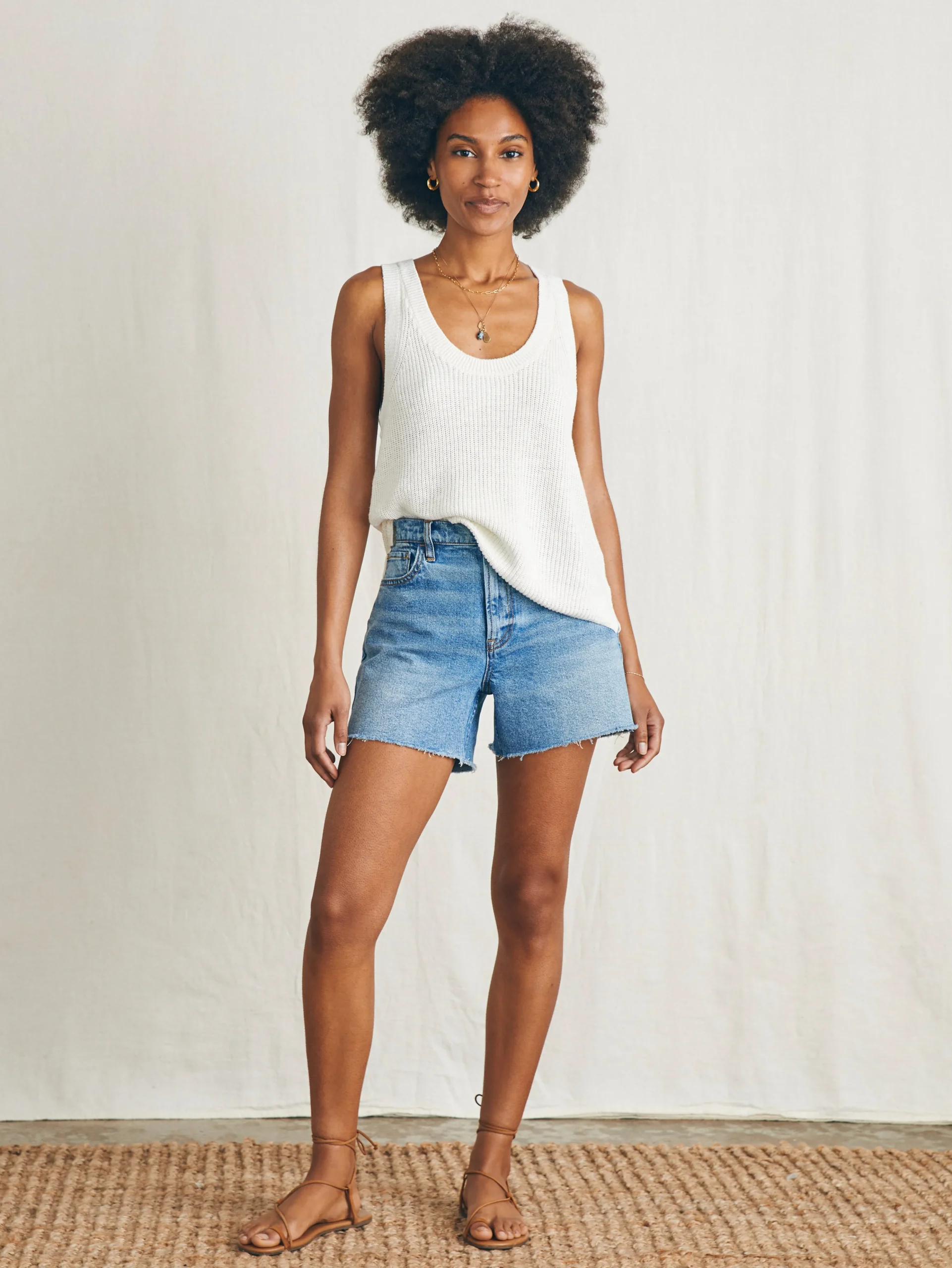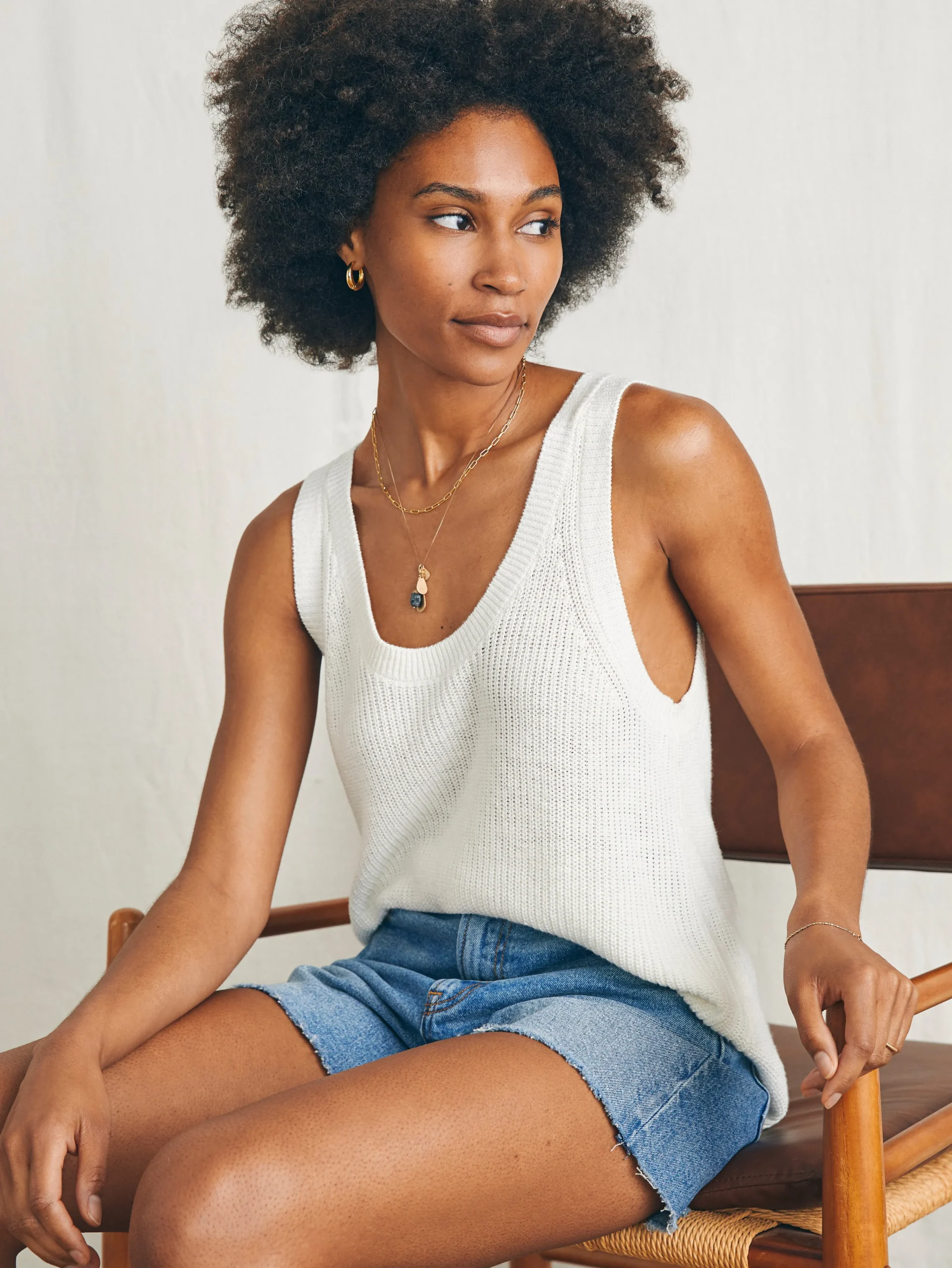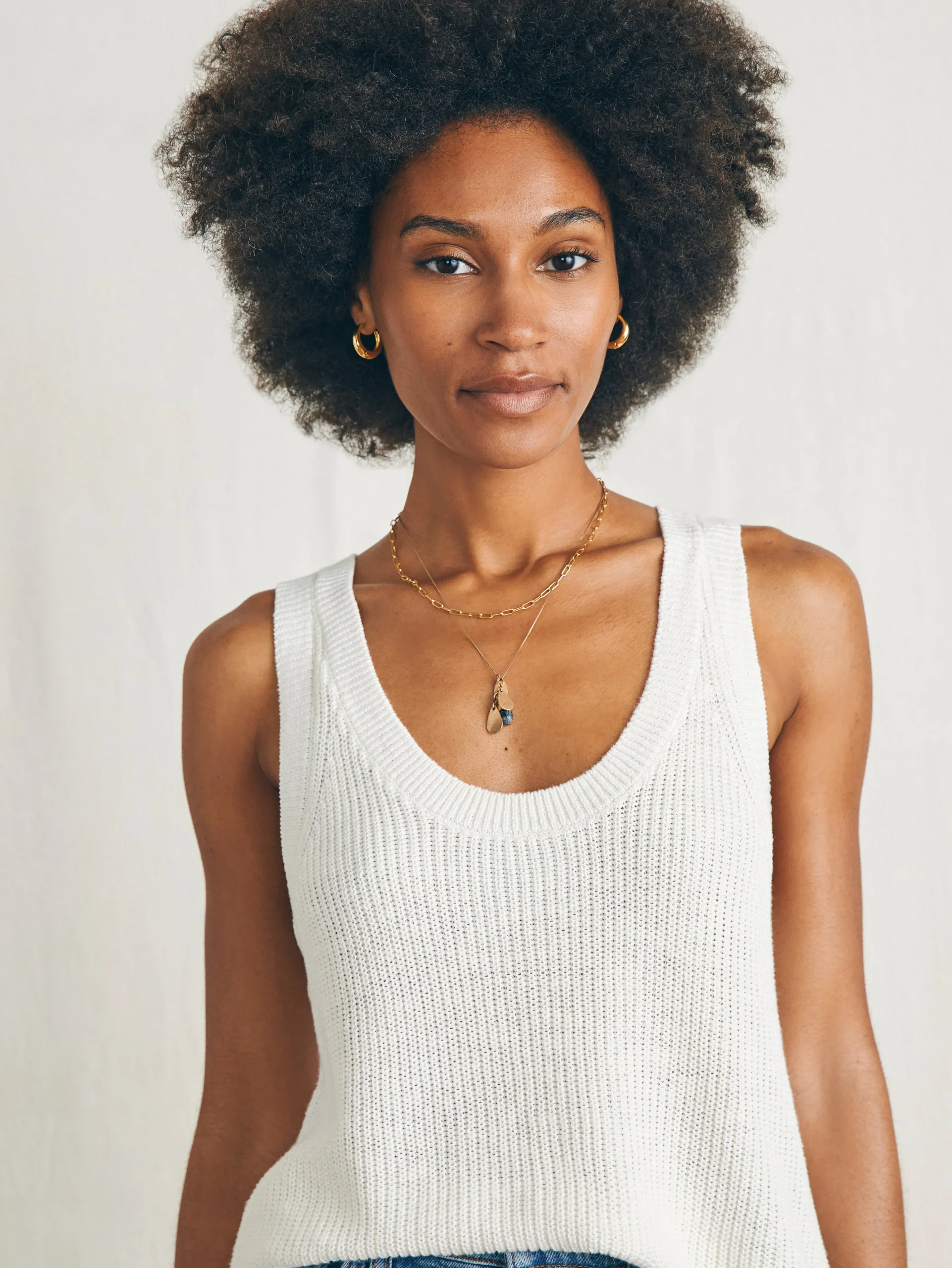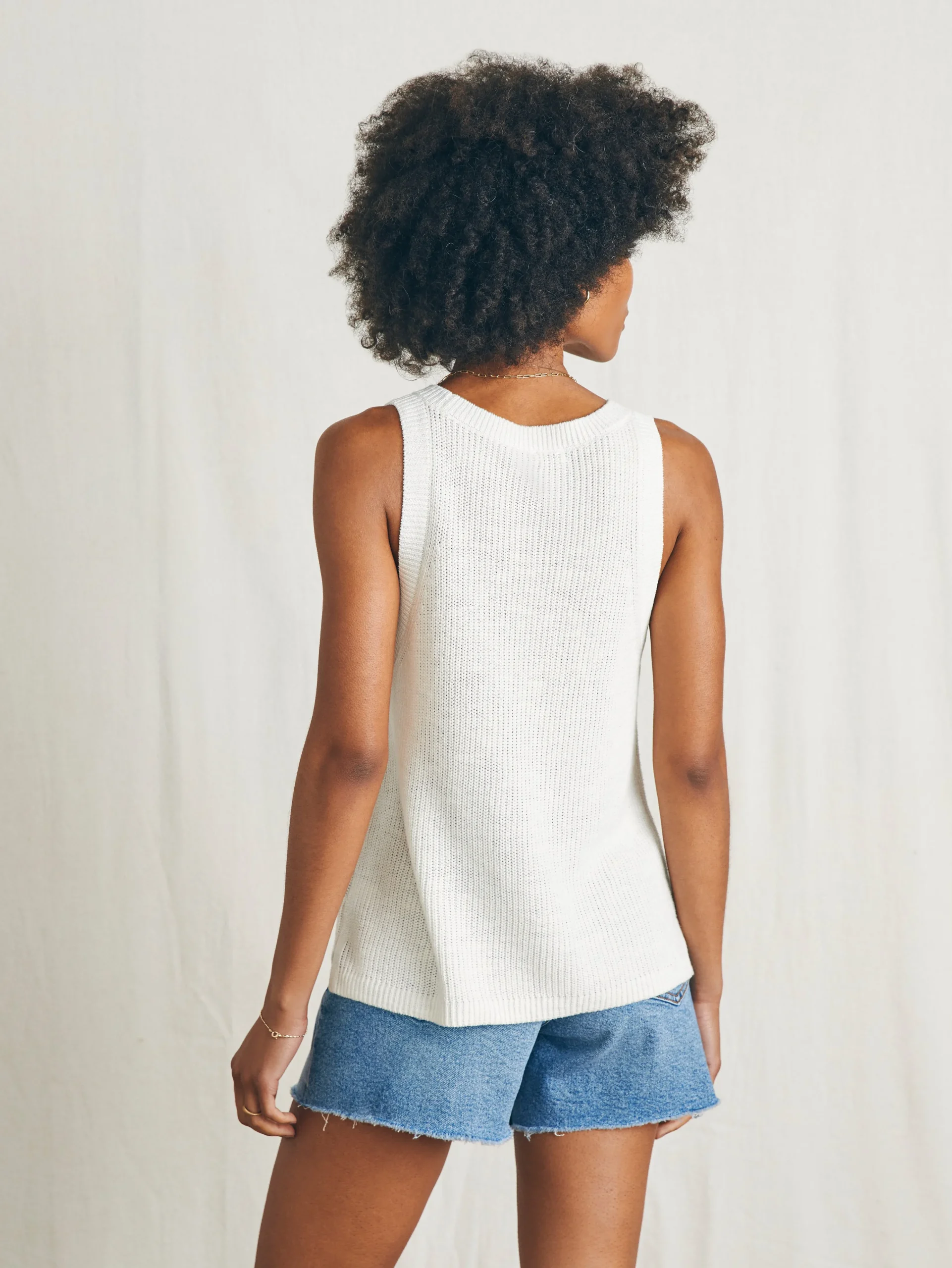 Knit in a lightweight linen blend yarn, this must-have tank top elevates summer dressing. Airy and light enough for daily wear, the luxe yarn is also suited to dressier evening looks; slim straps and stitch detailing further refine the feminine silhouette.