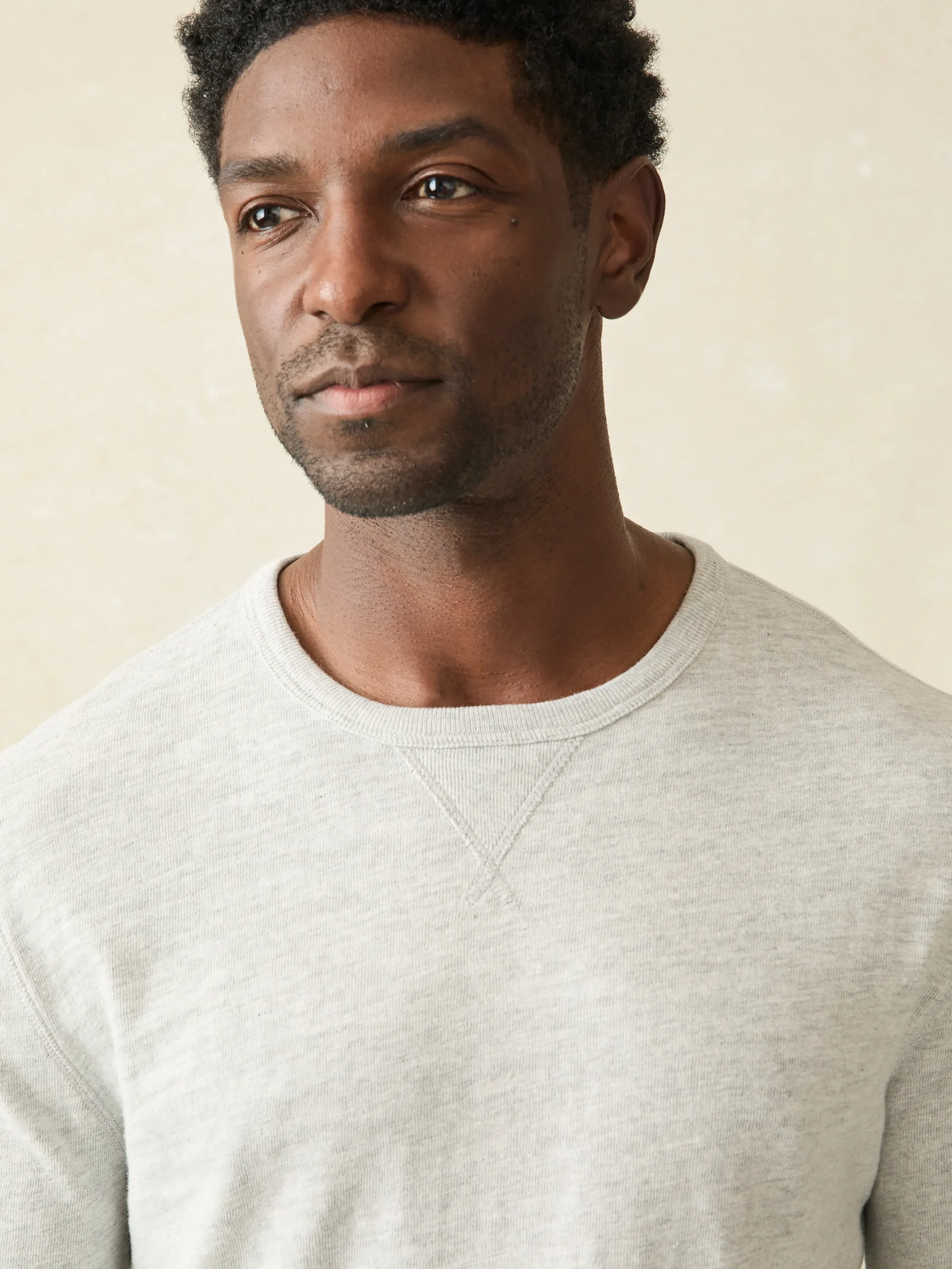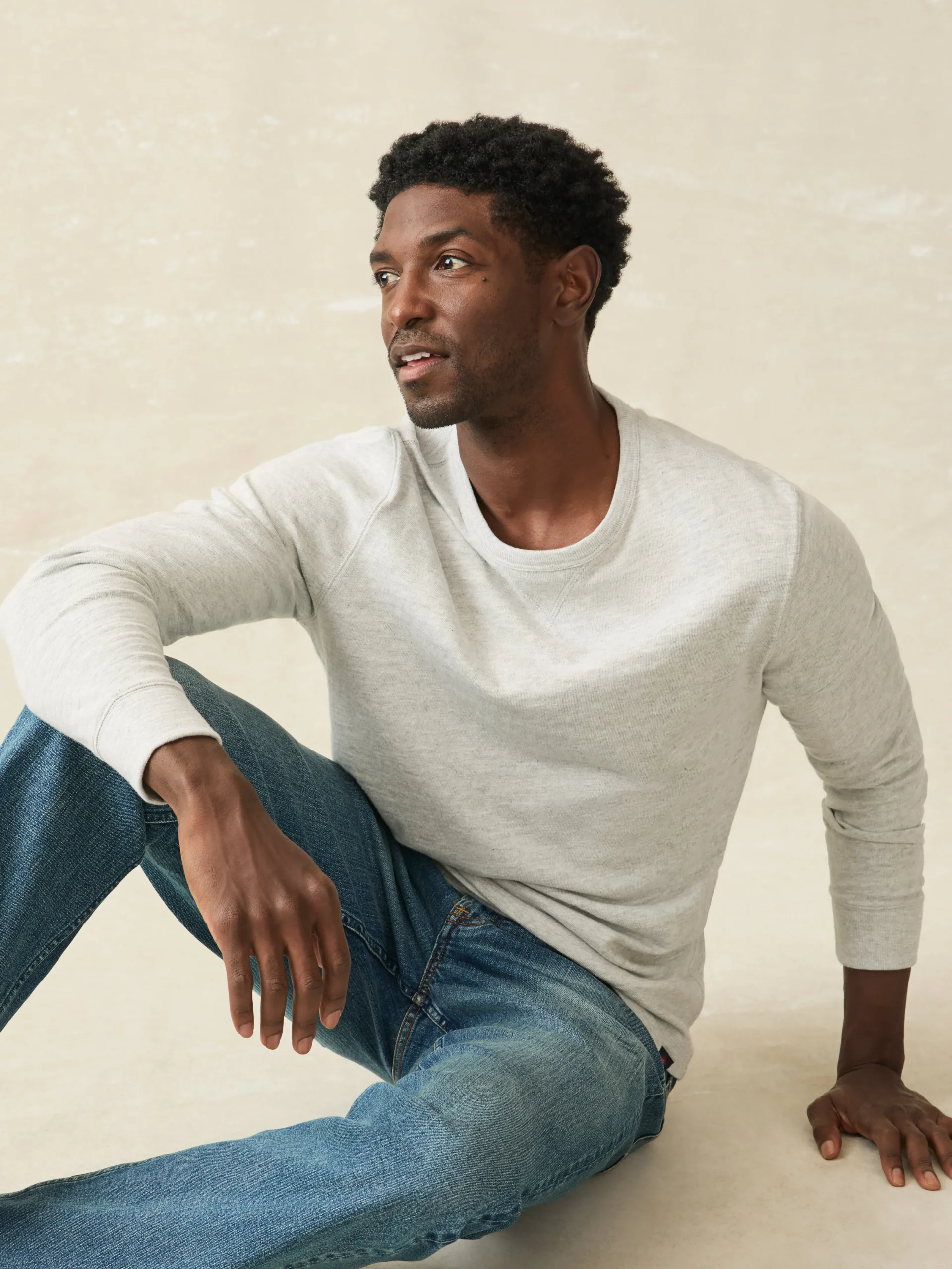 Our slub knit fabric is crafted from high-quality American-grown cotton, combed for exceptional texture and softness. The perfect layer does all the work of a sweatshirt — featuring a classic relaxed fit, knit ribbing at the collar, cuffs, and hem — without the added weight. Get one, and feel what we’re talking about.